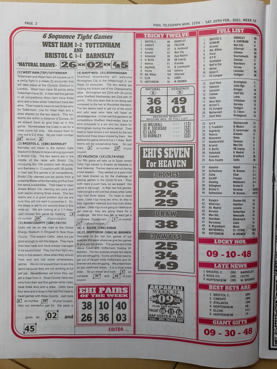 Week 33 pools telegraph 2021, Week 33 bigwin soccer 2021, Week 33 Pools telegraph late news 2021, Week 33 bigwin soccer pool late news 2021, Week 33 pool late news papers 2021