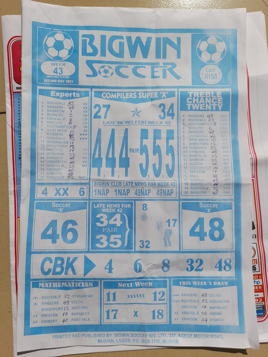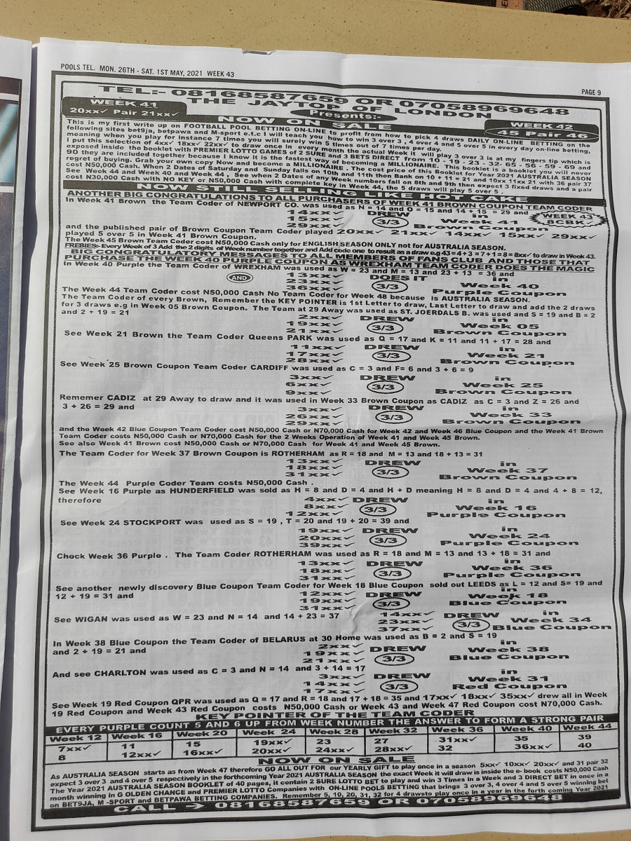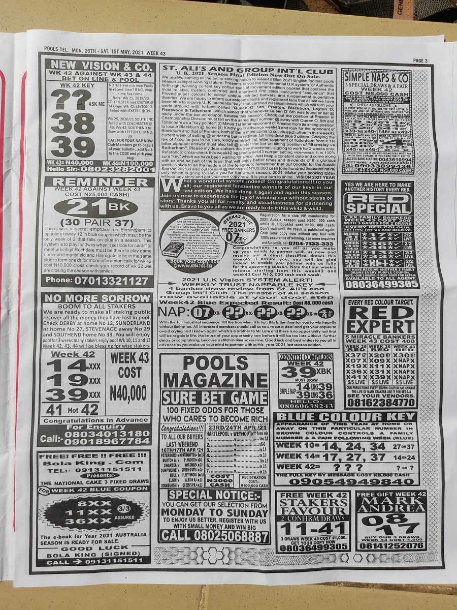Please support our first of its kind pools publication to enable us grow better; contact the Admin on +234 (0)815 119 6619 (TEXT PREFERABLY) for your donations!