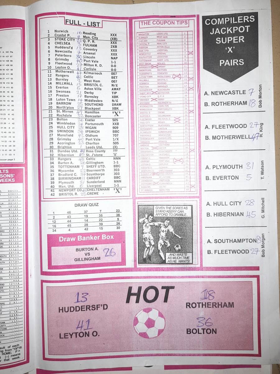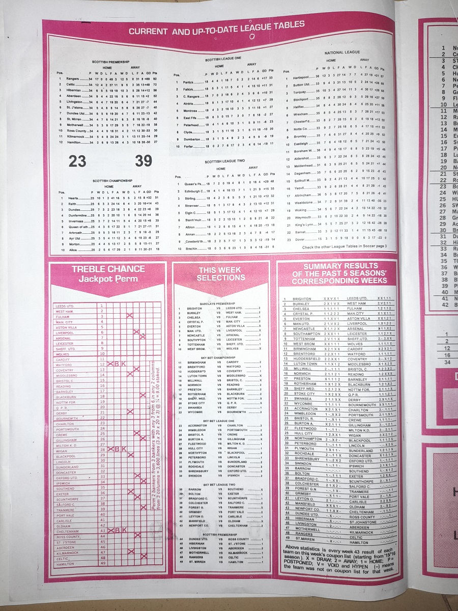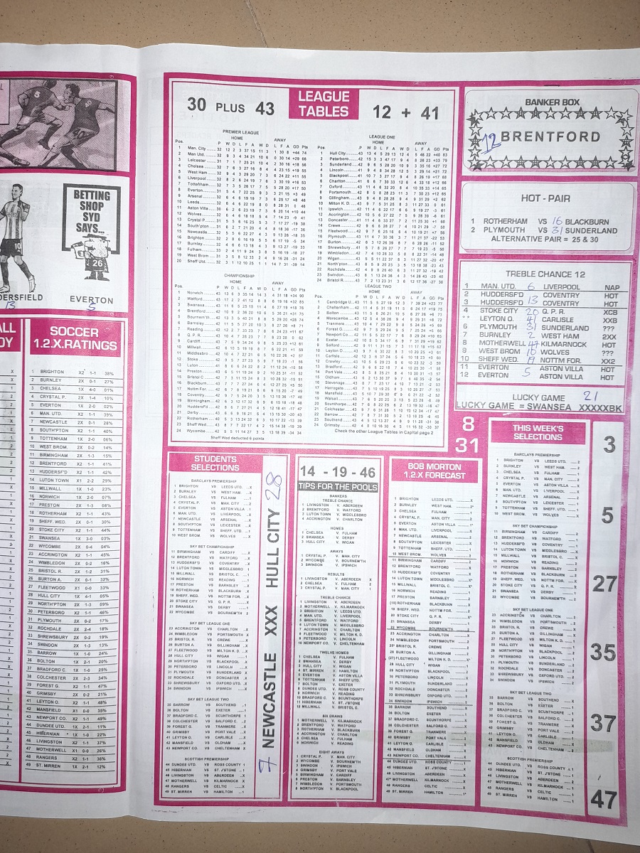 Aussie/British Football Pool RSK Papers For This Week
