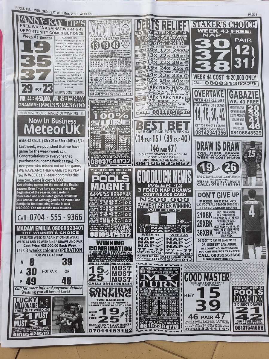 Please support our first of its kind pools publication to enable us grow better; contact the Admin on +234 (0)815 119 6619 (TEXT PREFERABLY) for your donations!