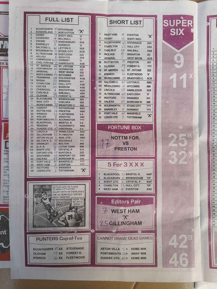 Week 45 Bigwin Soccer Pool Late News 2021 UK 2020/21