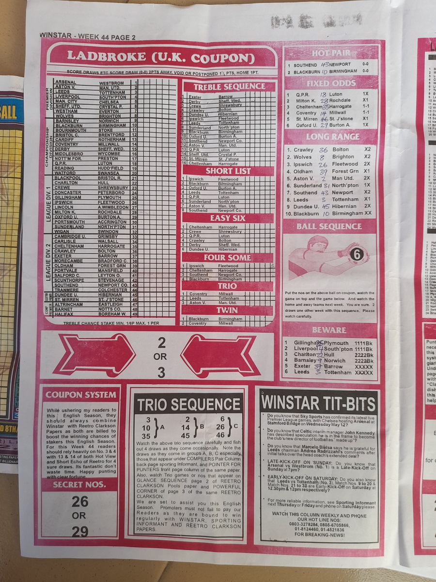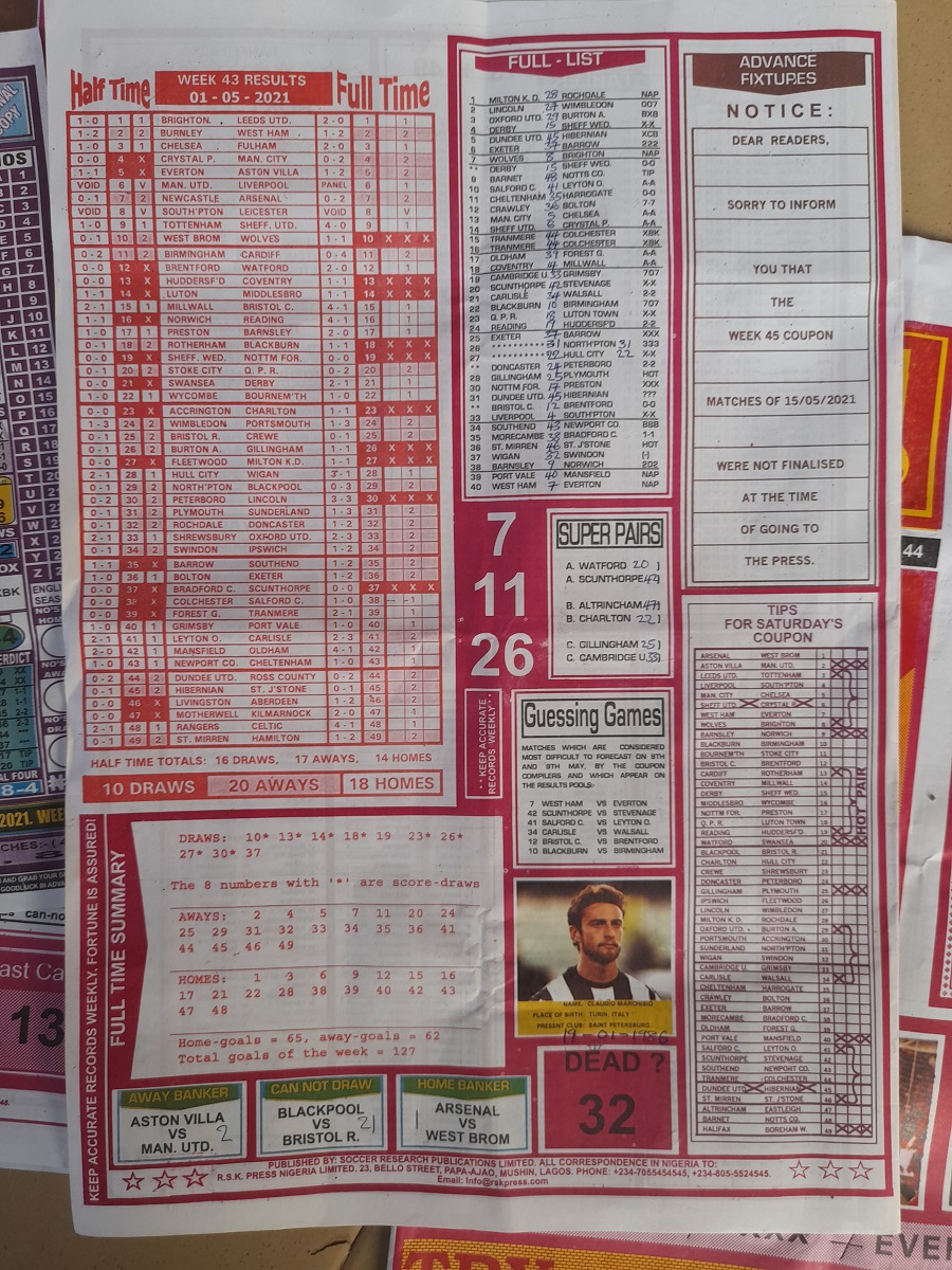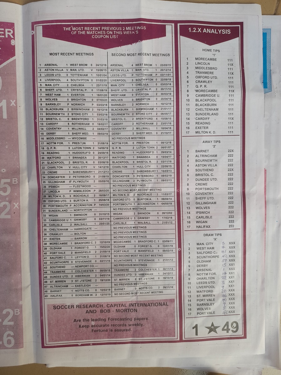Here we provide you with the best football pools papers such as Bob Morton, Capital International, and Soccer ‘X’ Research, we publish the world’s leading football pools forecasting papers apart from RSK in the likes of WinStar, BigWin, Dream International Research, Weekly 1.X.2 Matrix, and pools fixtures like Special Advance Fixtures, Fight On Football Fixtures, Banky Fixtures and Fortune Advance Fixtures.