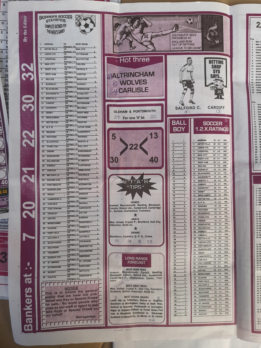 Aussie/British Football Pool RSK Papers For This Week