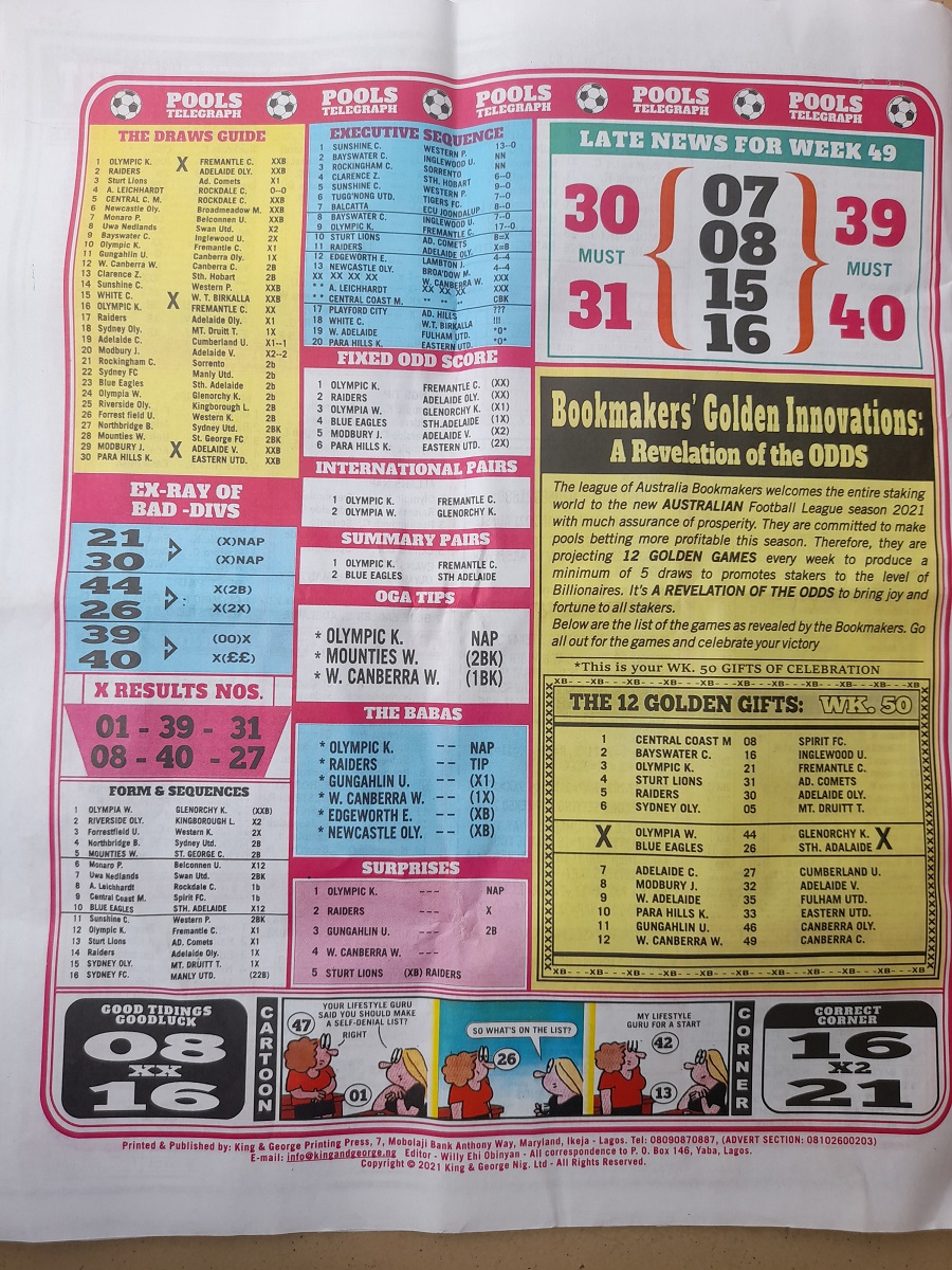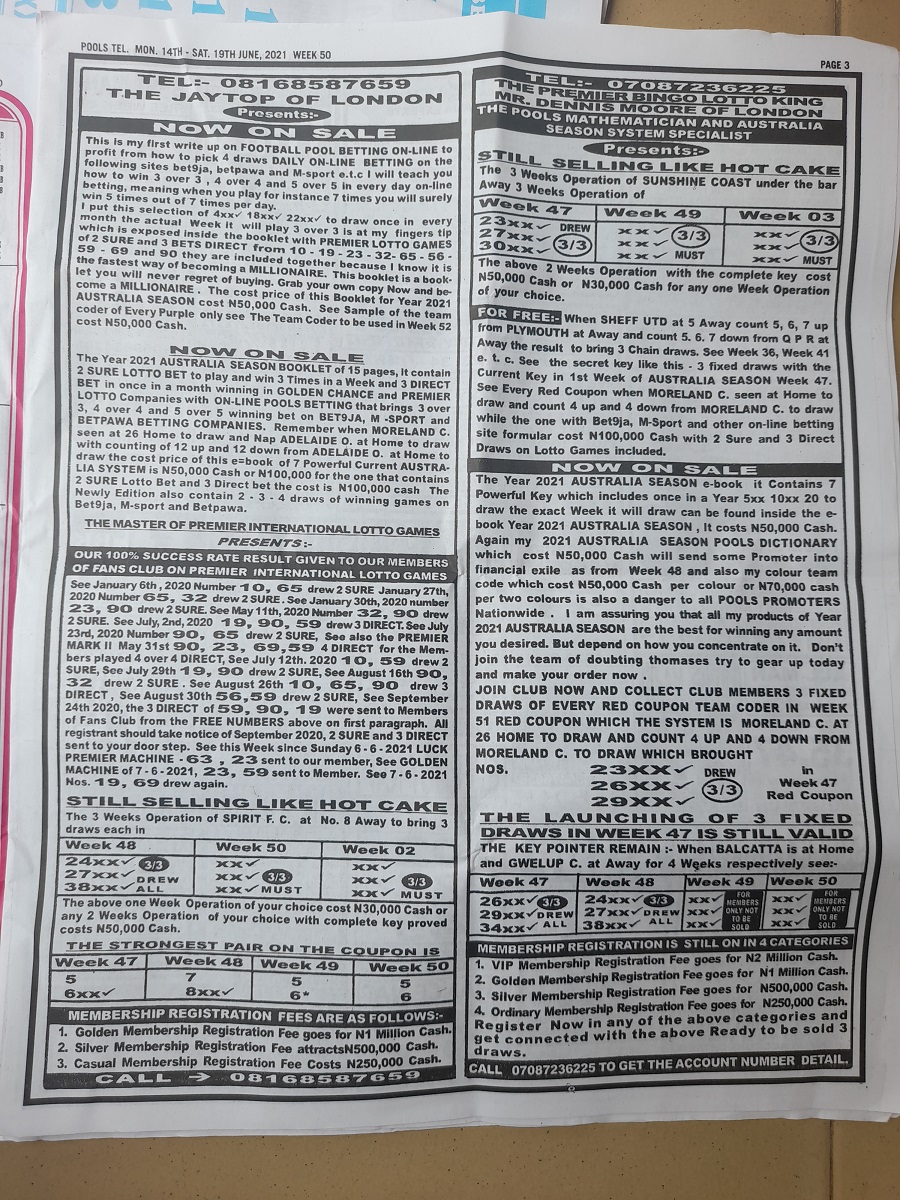 Please support our first of its kind pools publication to enable us grow better; contact the Admin on +234 (0)815 119 6619 (TEXT PREFERABLY) for your donations!