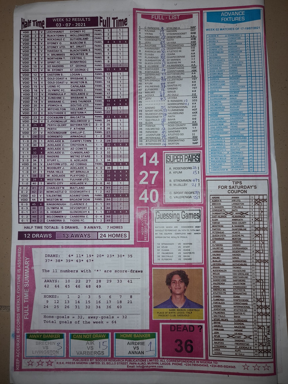 Here we provide you with the best football papers such as Bob Morton, Capital International, and Soccer ‘X’ Research, we publish the world’s leading weekend football forecasting papers apart from RSK in the likes of WinStar, BigWin, Dream International Research, Weekly 1.X.2 Matrix, and pools fixtures like Special Advance Fixtures, Fight On Football Fixtures, Banky Fixtures and Fortune Advance Fixtures.