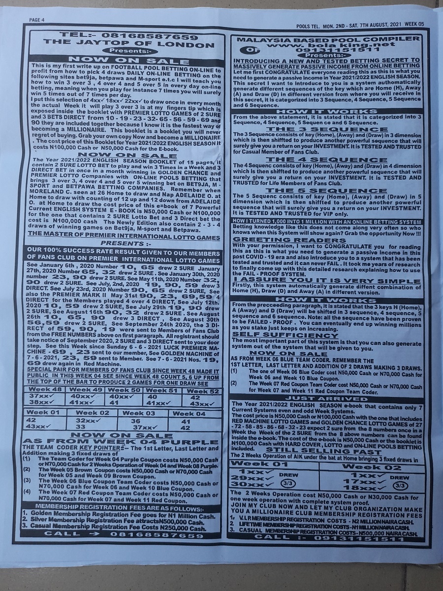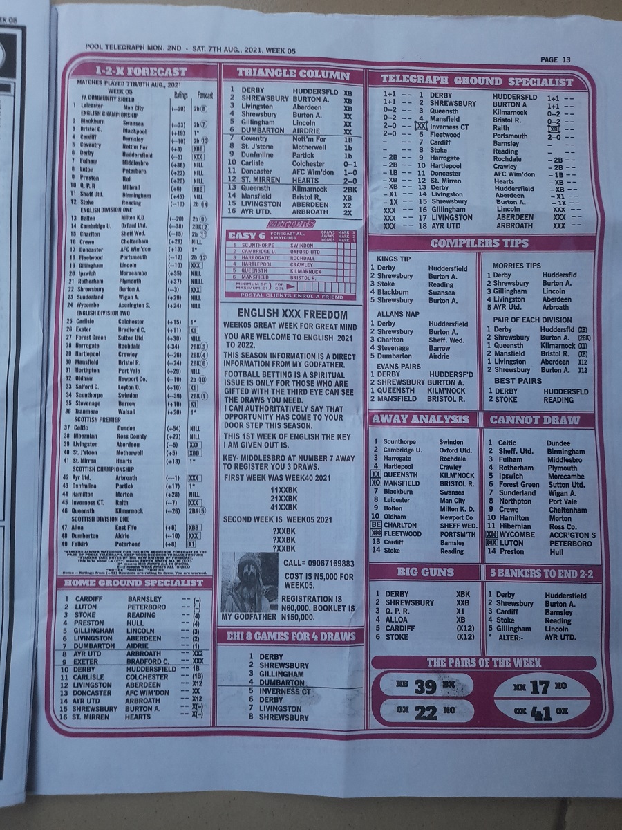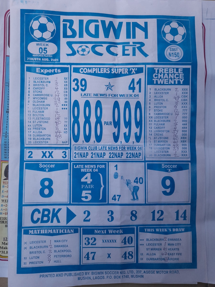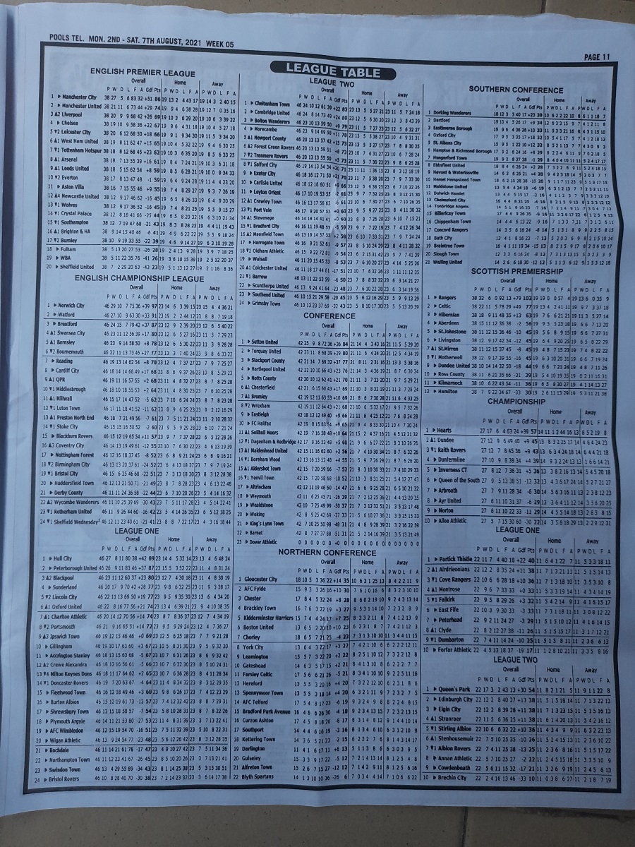Week 5 pool telegraph 2021, Week 5 bigwin soccer 2021, Week 5 soccer standard 2021, Week 5 pool telegraph late news 2021, Week 5 bigwin soccer pool late news 2021