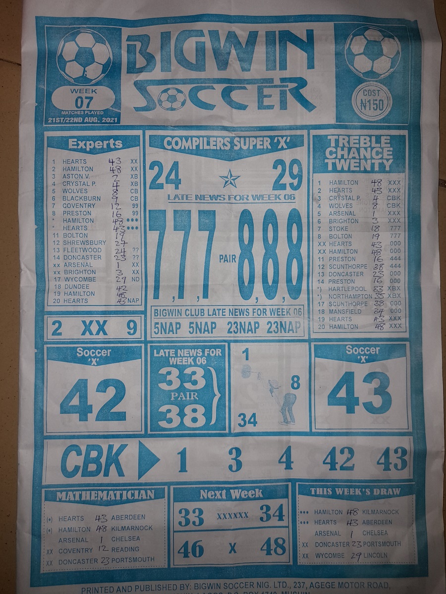 Week 7 pool telegraph 2021, Week 7 bigwin soccer 2021, Week 7 soccer standard 2021, Week 7 pool telegraph late news 2021, Week 7 bigwin soccer pool late news 2021