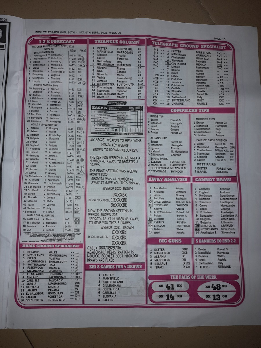 Week 9 pool telegraph 2021, Week 9 bigwin soccer 2021, Week 9 soccer standard 2021, Week 9 pool telegraph late news 2021, Week 9 bigwin soccer pool late news 2021