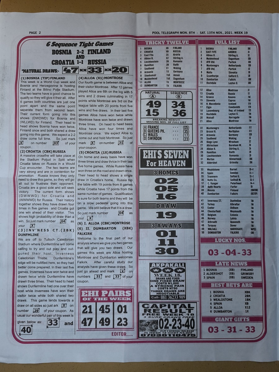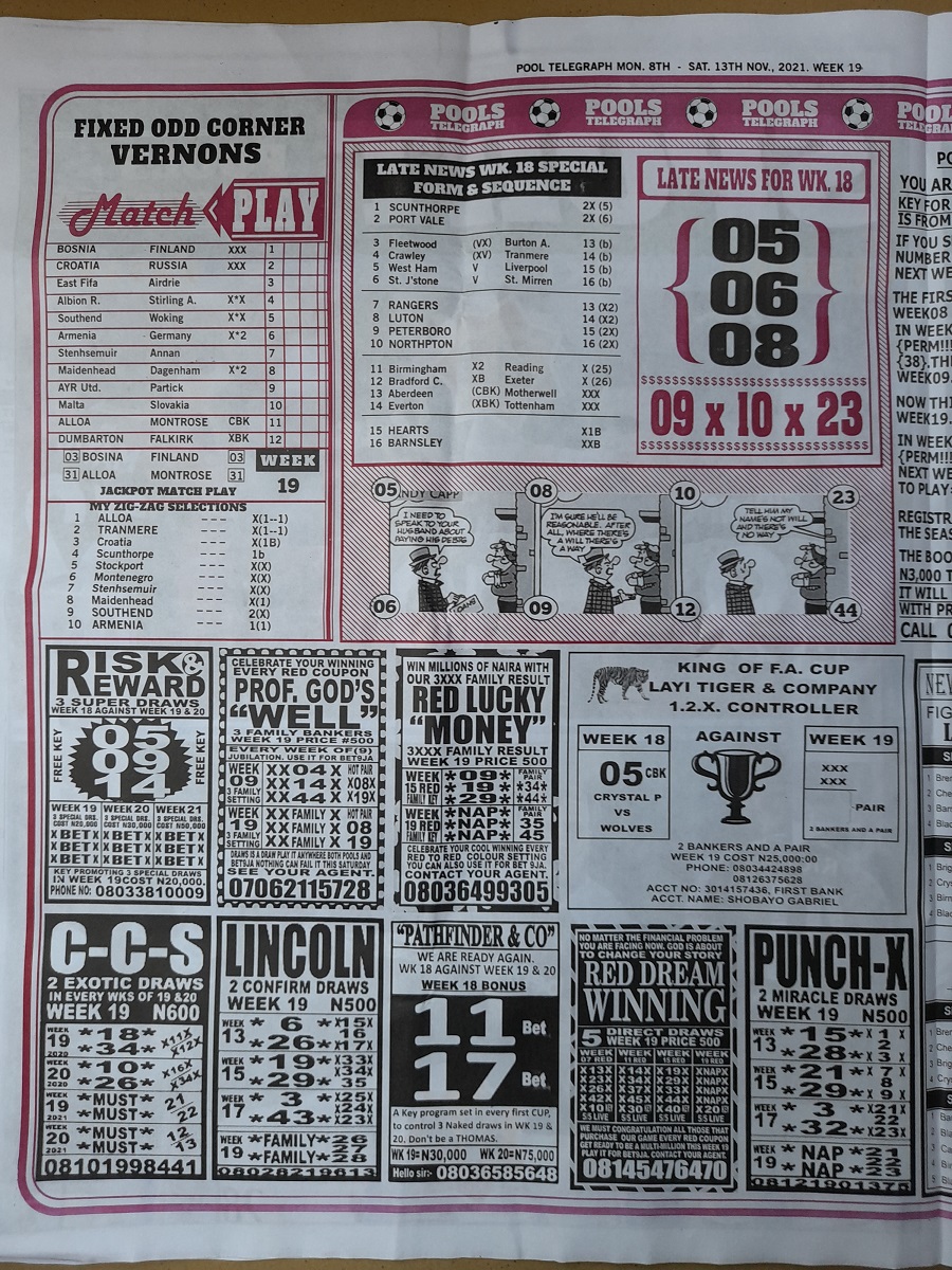 Week 19 pool telegraph 2021, Week 19 bigwin soccer 2021, Week 19 soccer standard 2021, Week 19 pool telegraph late news 2021, Week 19 bigwin soccer pool late news 2021