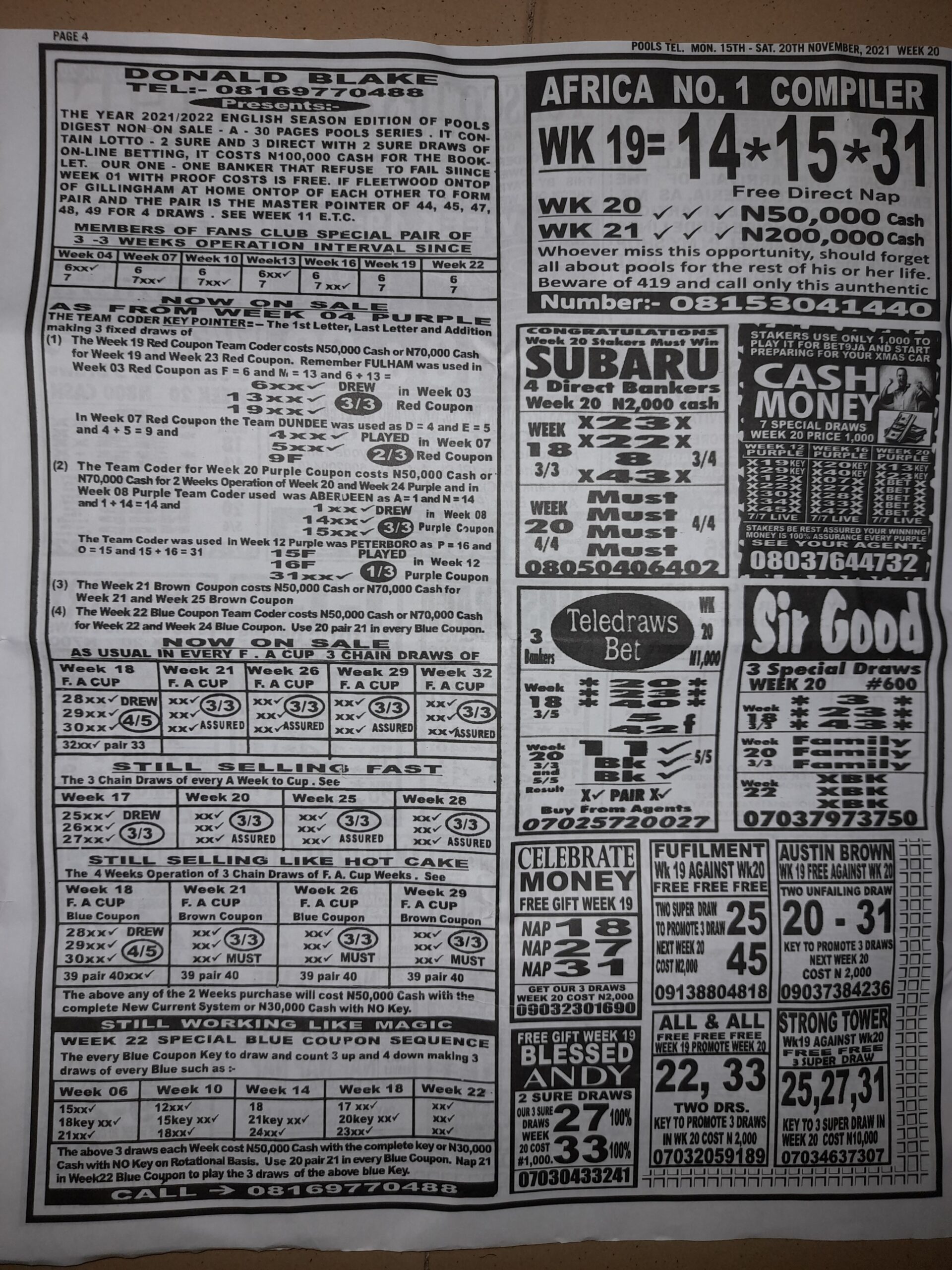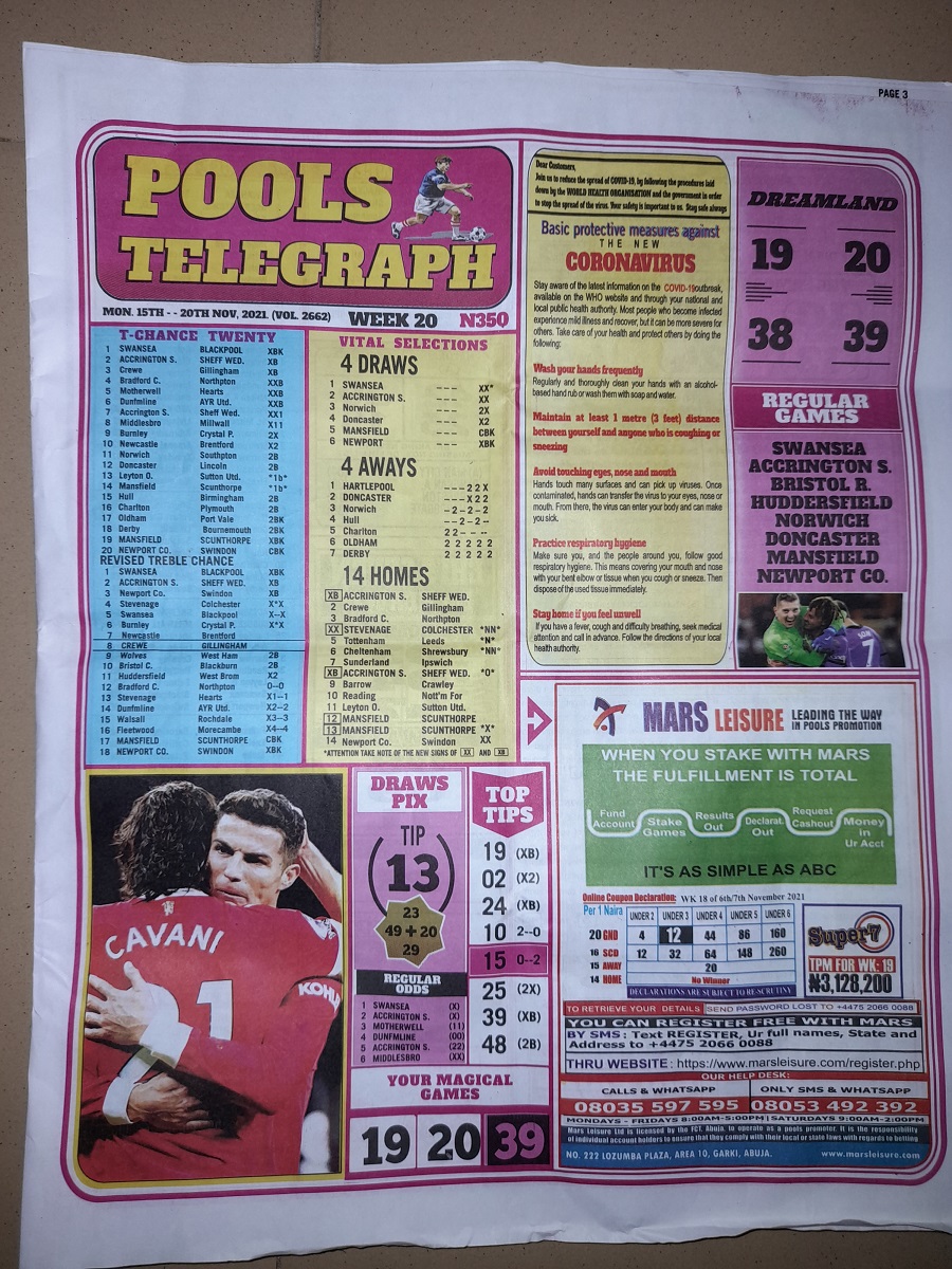 Week 20 pool telegraph 2021, Week 20 bigwin soccer 2021, Week 20 soccer standard 2021, Week 20 pool telegraph late news 2021, Week 20 bigwin soccer pool late news 2021