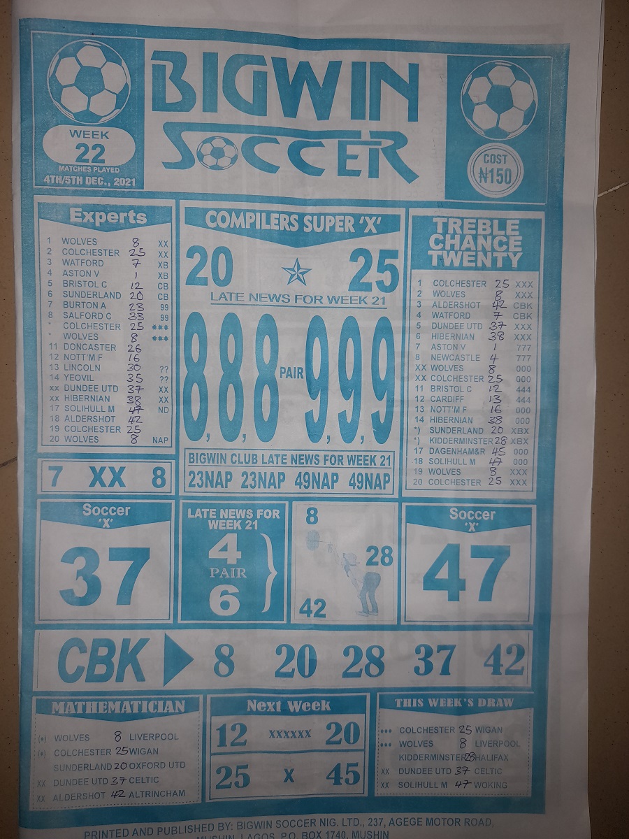 Week 22 pool telegraph 2021, Week 22 bigwin soccer 2021, Week 22 soccer standard 2021, Week 22 pool telegraph late news 2021, Week 22 bigwin soccer pool late news 2021