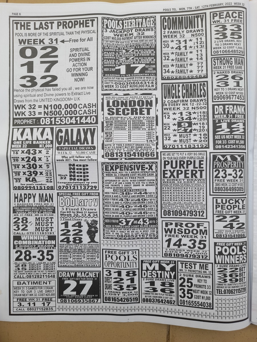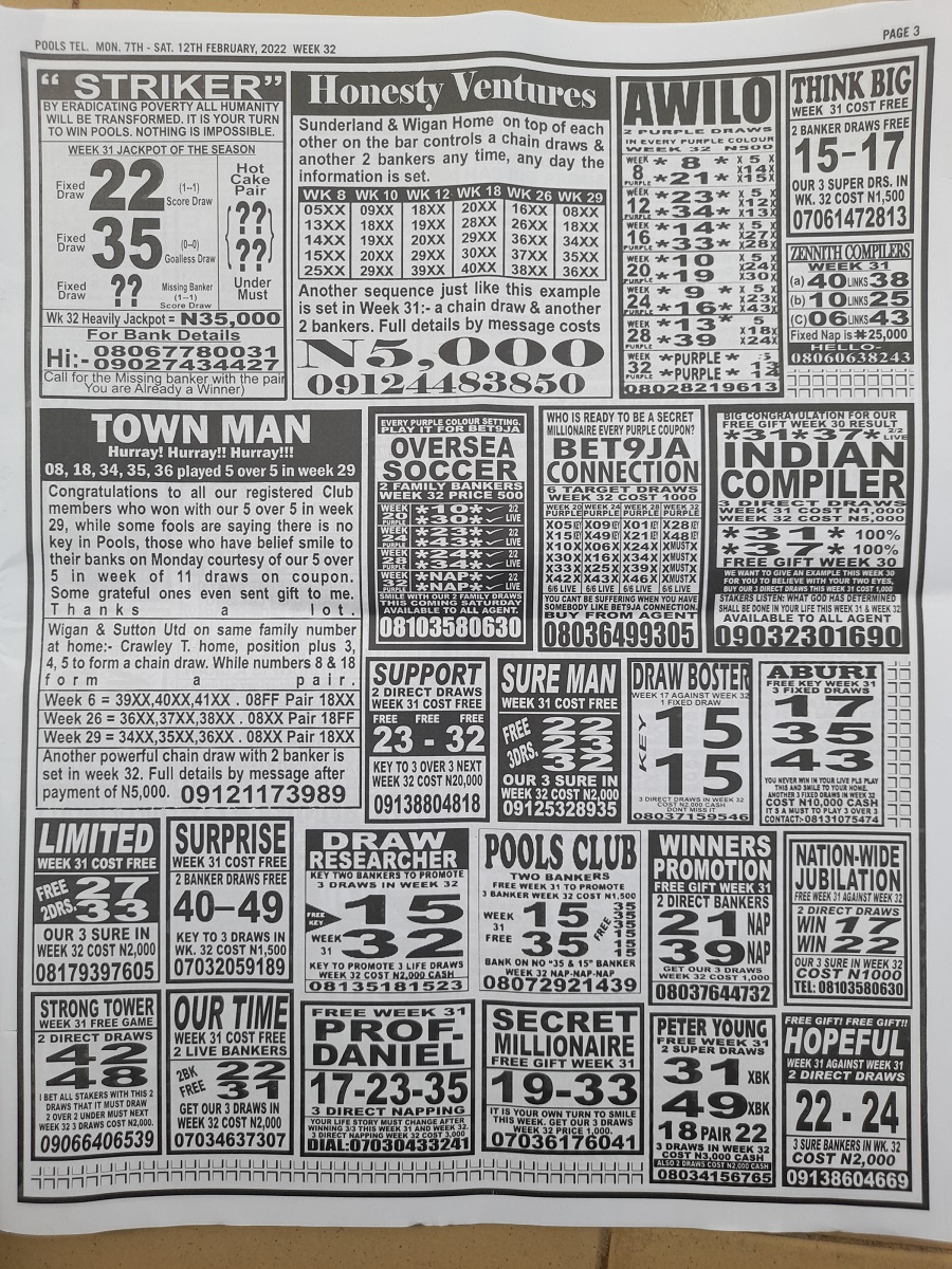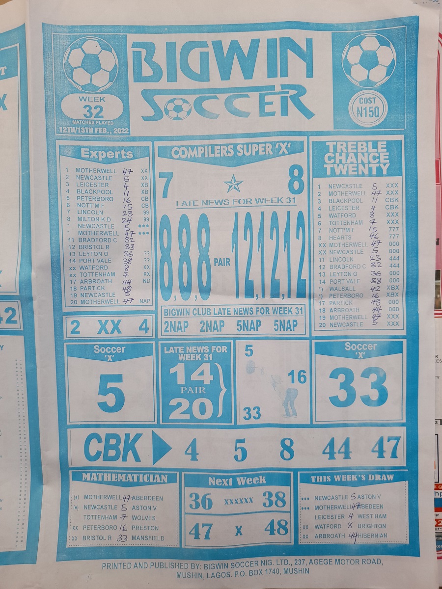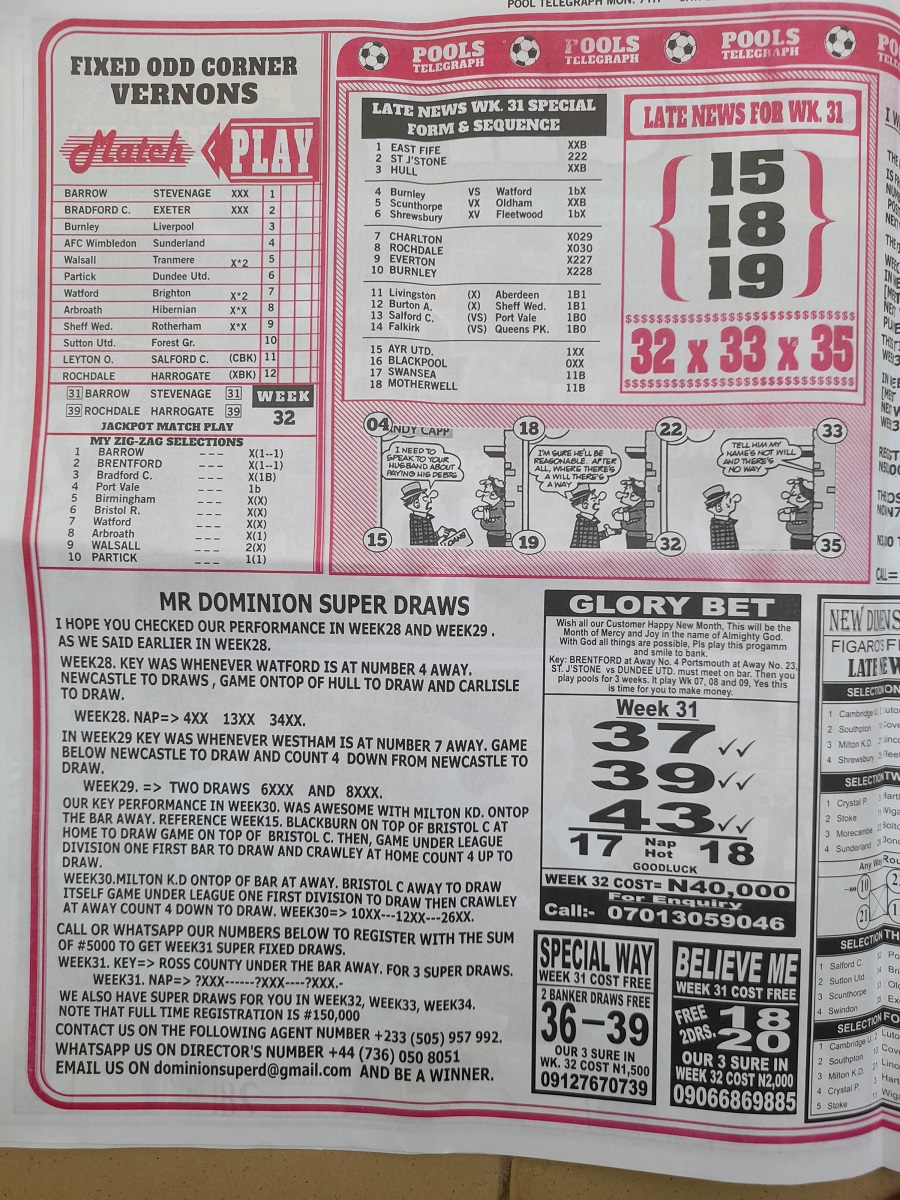 Week 32 pool telegraph 2022, Week 32 bigwin soccer 2022, Week 32 soccer standard 2022, Week 32 pool telegraph late news 2022, Week 32 bigwin soccer pool late news 2022