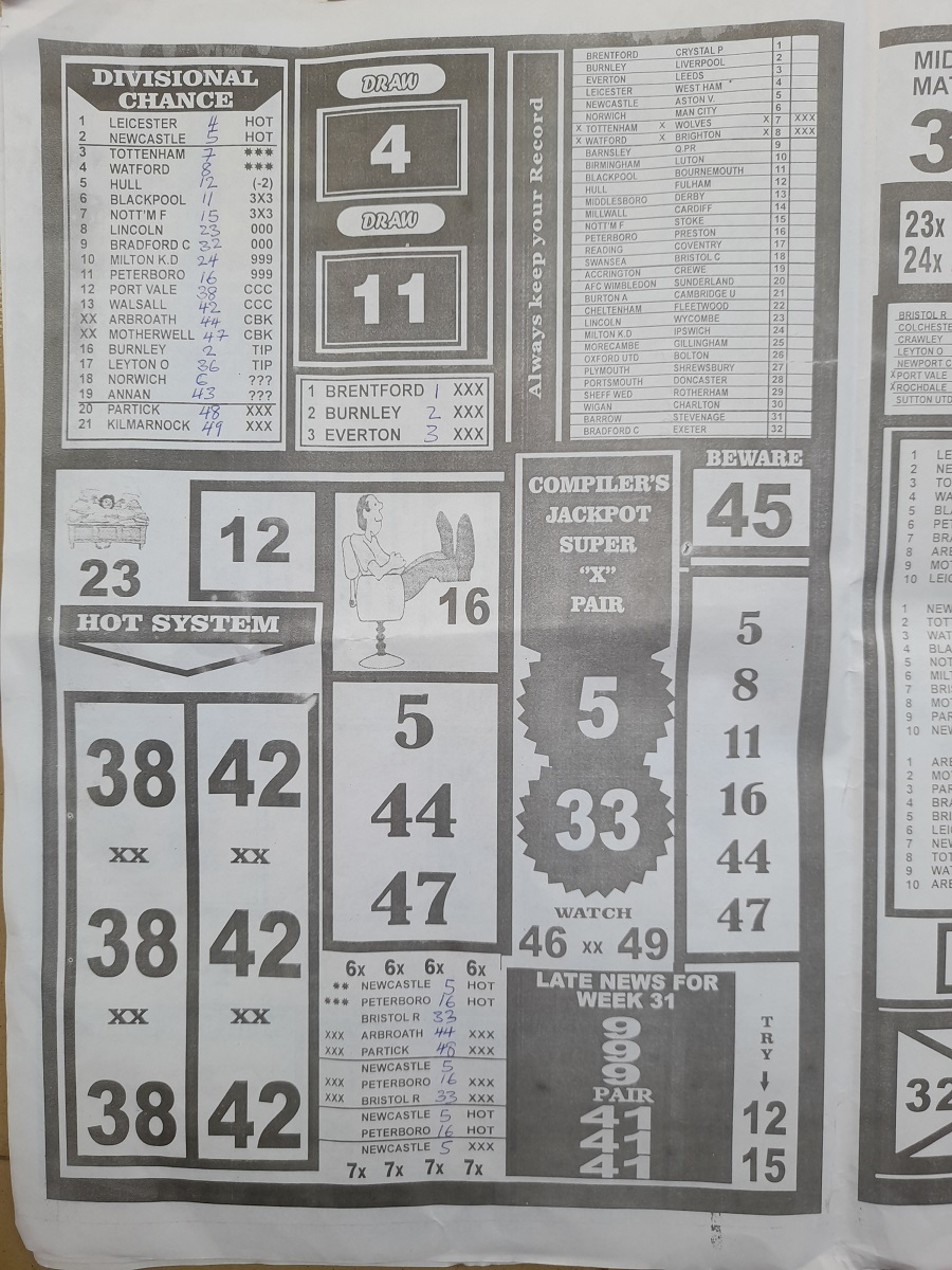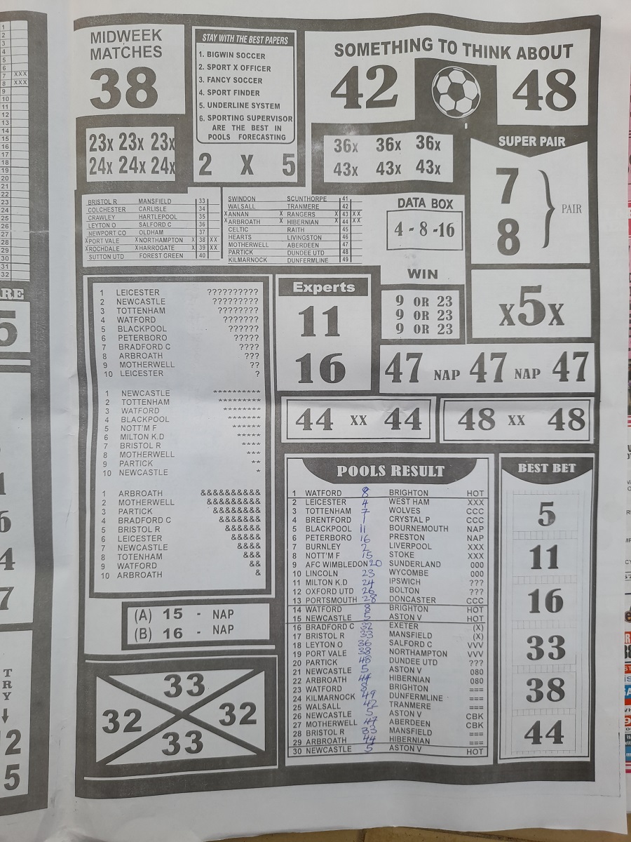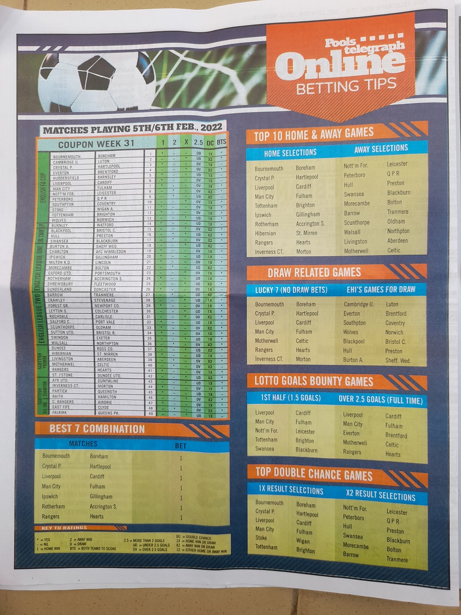 Welcome to this week late news pool papers. Here we provide you with papers such as: Bigwin Soccer, Pool Telegraph, Dream International Research, Dream Pool News, Sporting Informant and many others pools journal, also do remember that we furnish you with up-to-date football pools papers, rsk papers, late news papers, weekly telegraph, and now the pool telegraph pool late news which is to easy your forecasting needs.