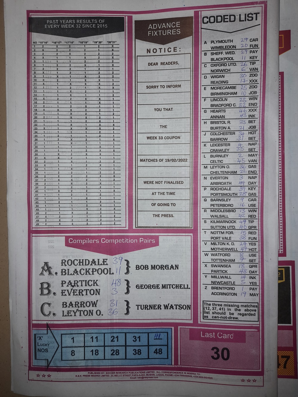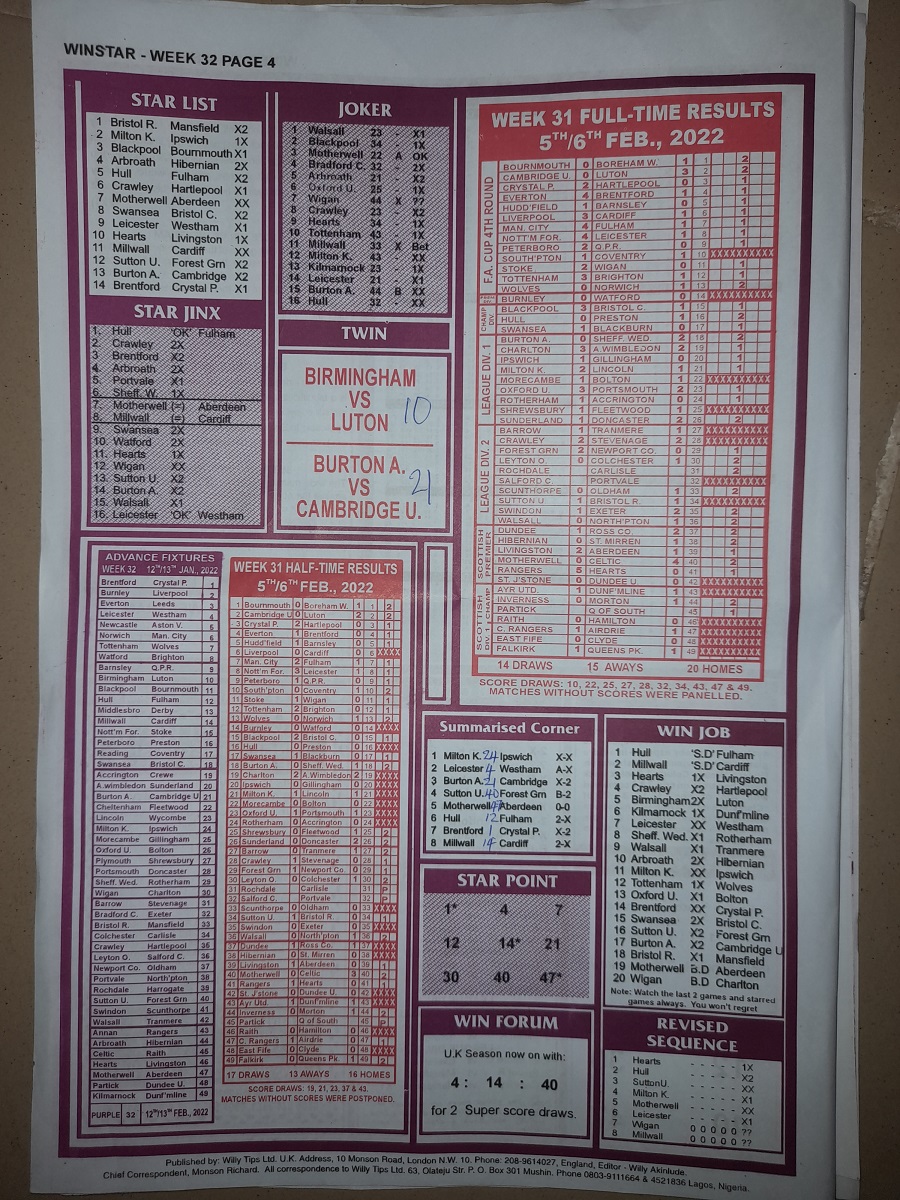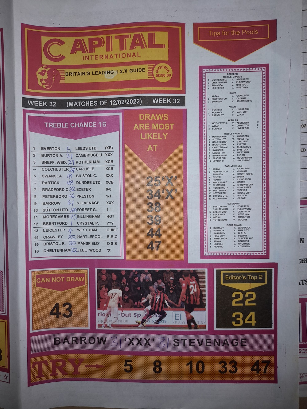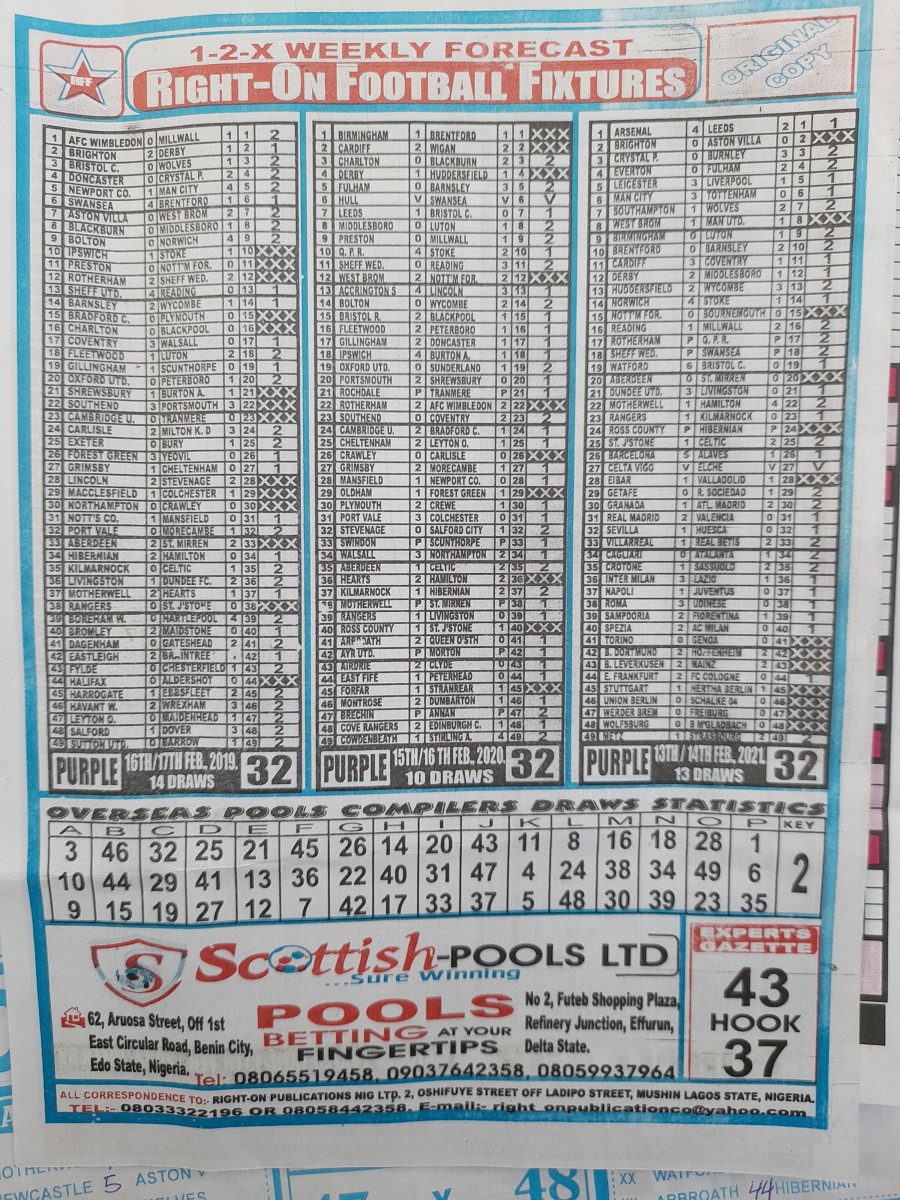 Here we provide you with the best football papers such as Bob Morton, Capital International, and Soccer ‘X’ Research, we publish the world’s leading weekend football forecasting papers apart from RSK in the likes of WinStar, BigWin, Dream International Research, Weekly 1.X.2 Matrix, and pools fixtures like Special Advance Fixtures, Fight On Football Fixtures, Banky Fixtures and Fortune Advance Fixtures.