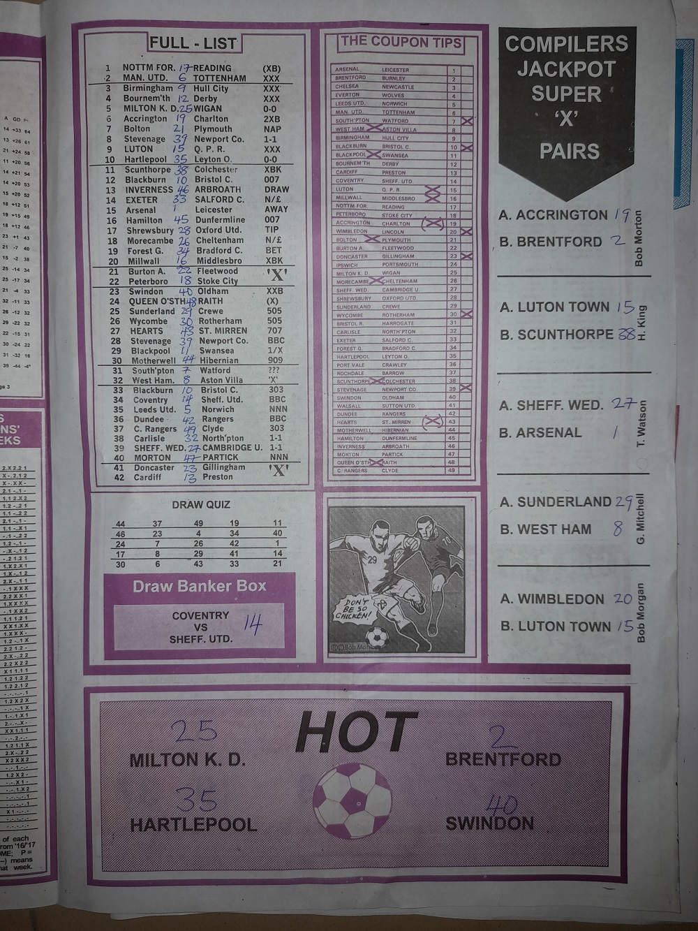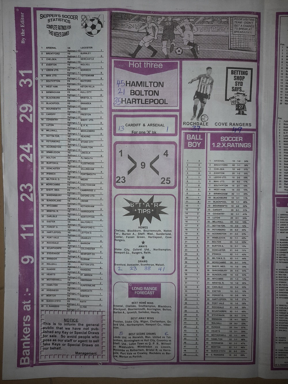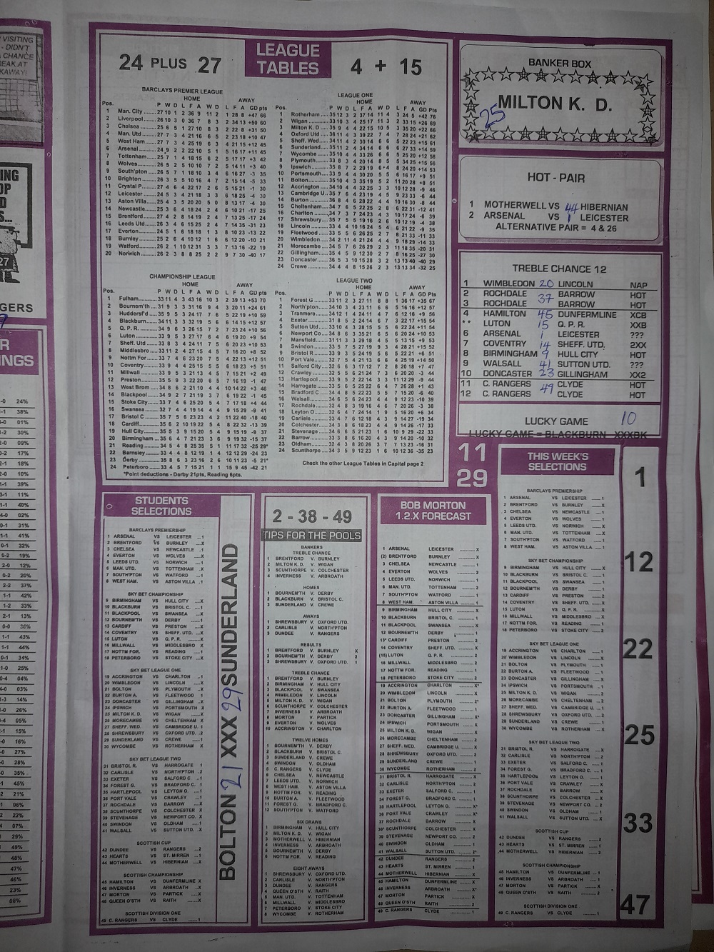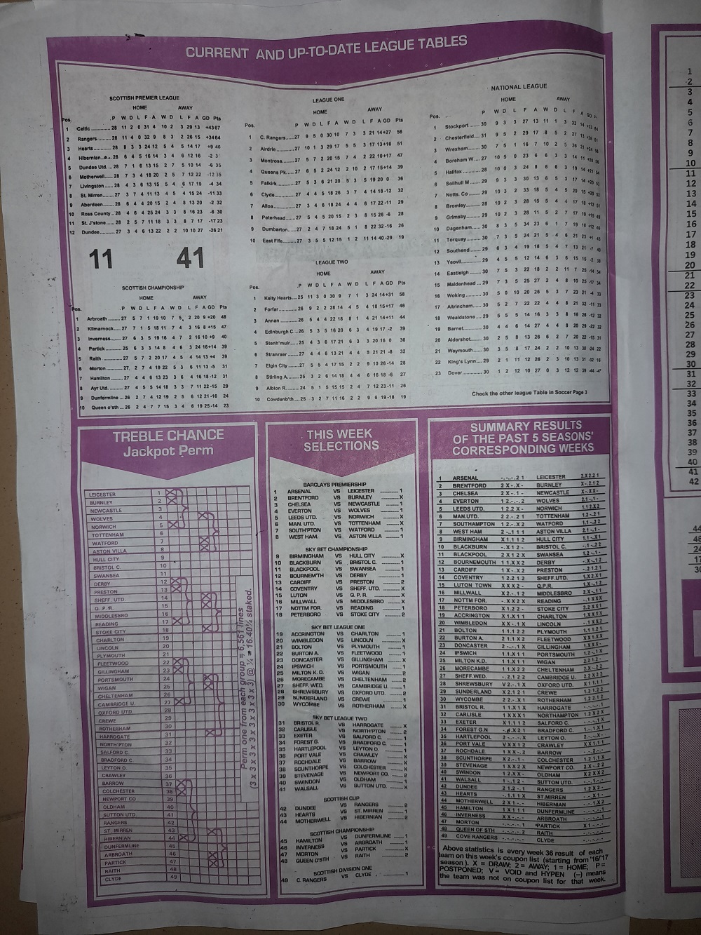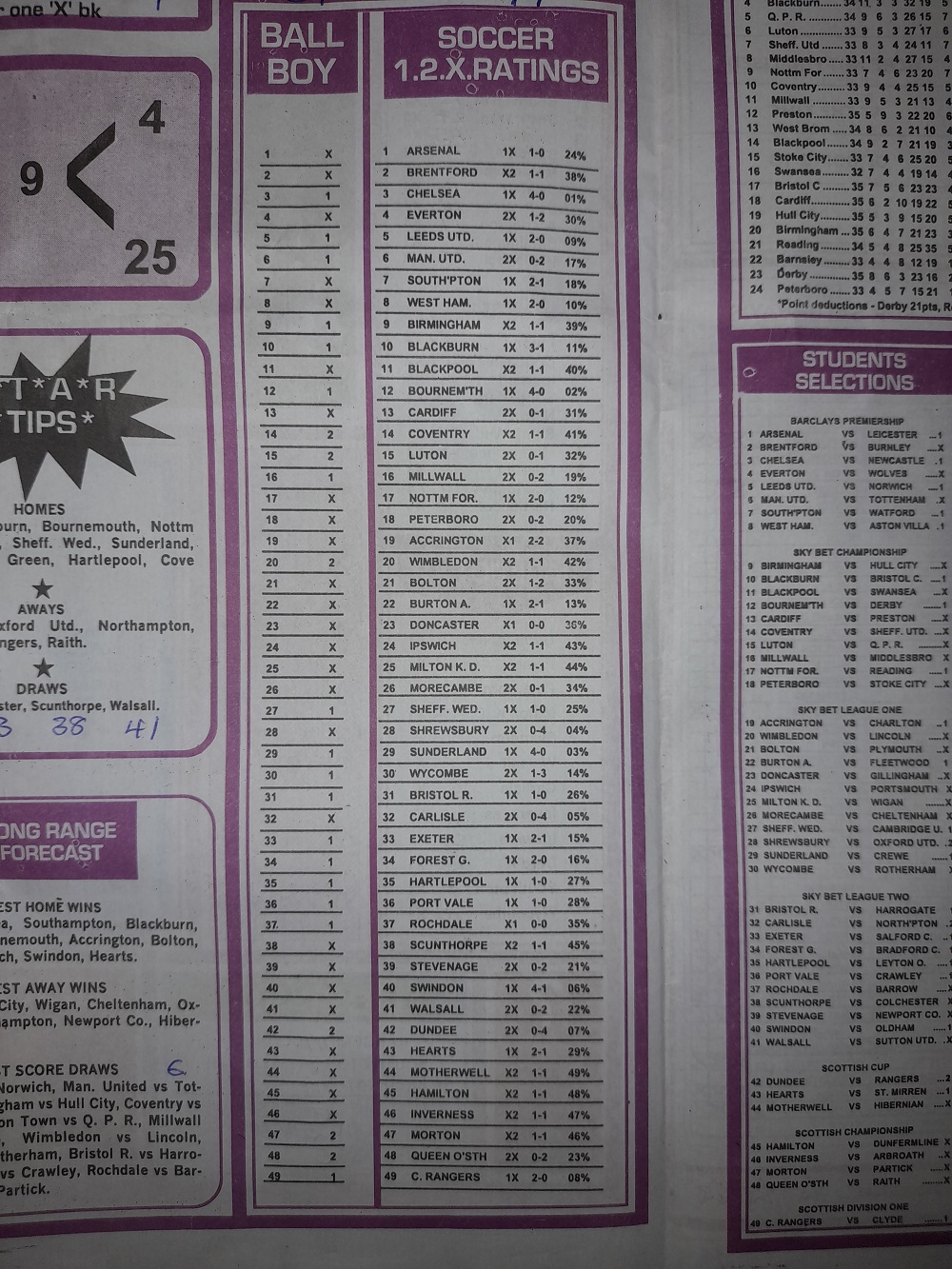 Aussie/British Football Pool RSK Papers For This Week