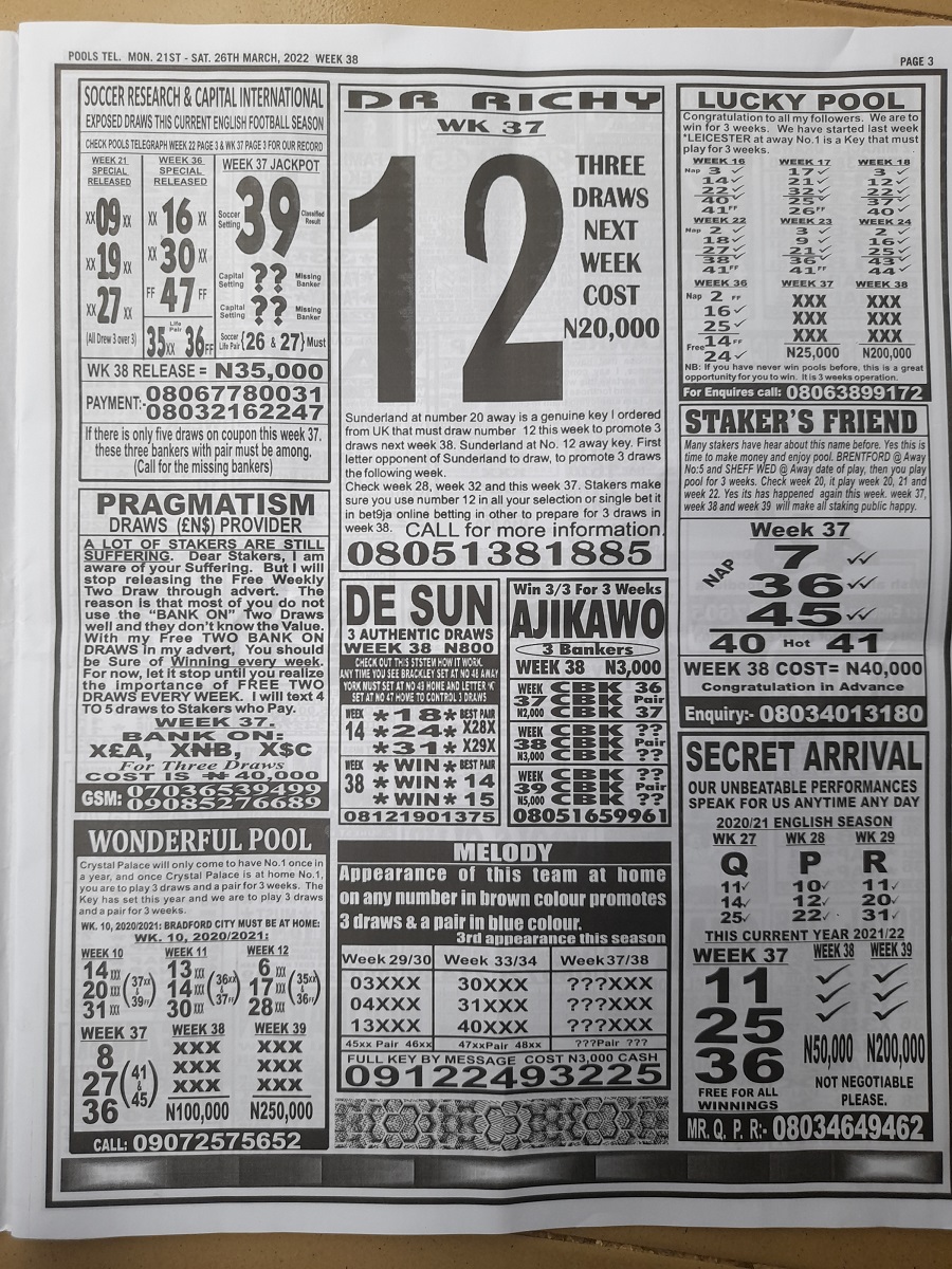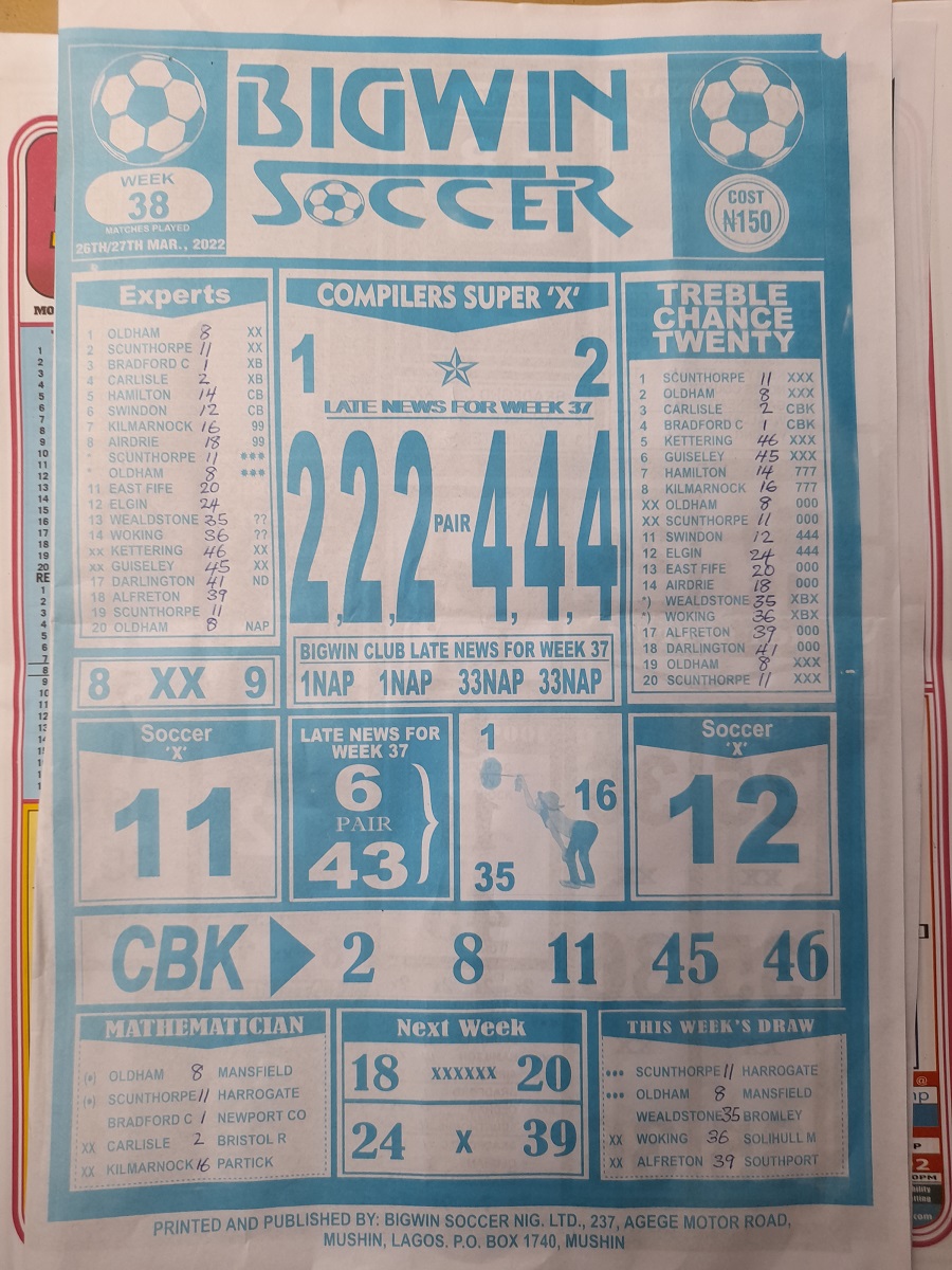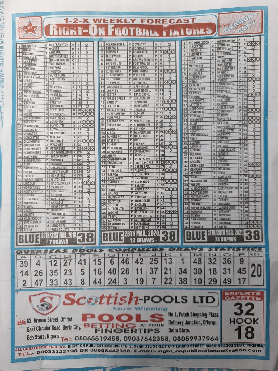 Here we provide you with the best football papers such as Bob Morton, Capital International, and Soccer ‘X’ Research, we publish the world’s leading weekend football forecasting papers apart from RSK in the likes of WinStar, BigWin, Dream International Research, Weekly 1.X.2 Matrix, and pools fixtures like Special Advance Fixtures, Fight On Football Fixtures, Banky Fixtures and Fortune Advance Fixtures.