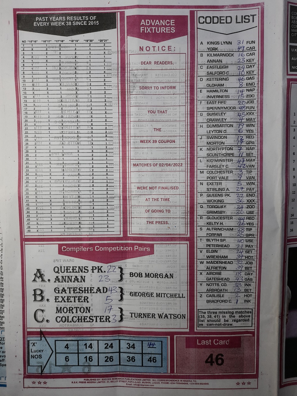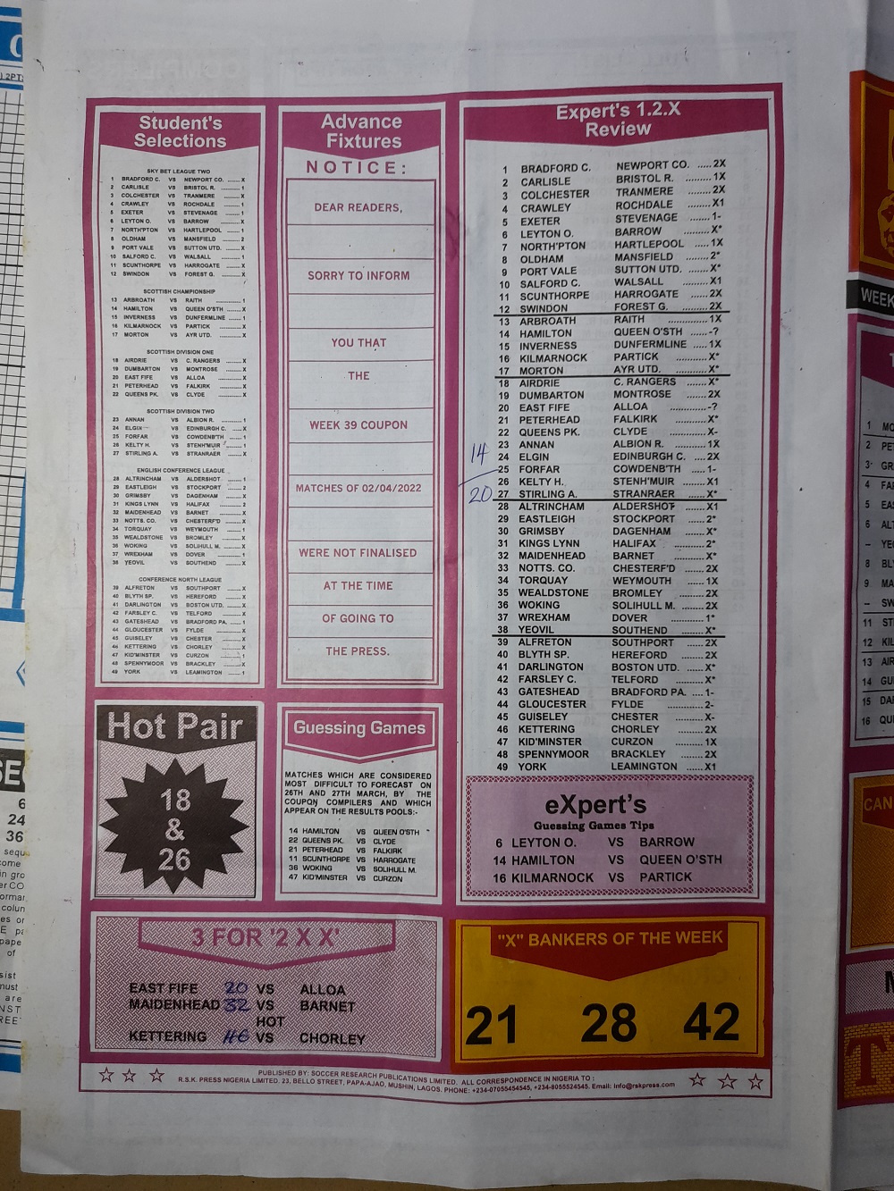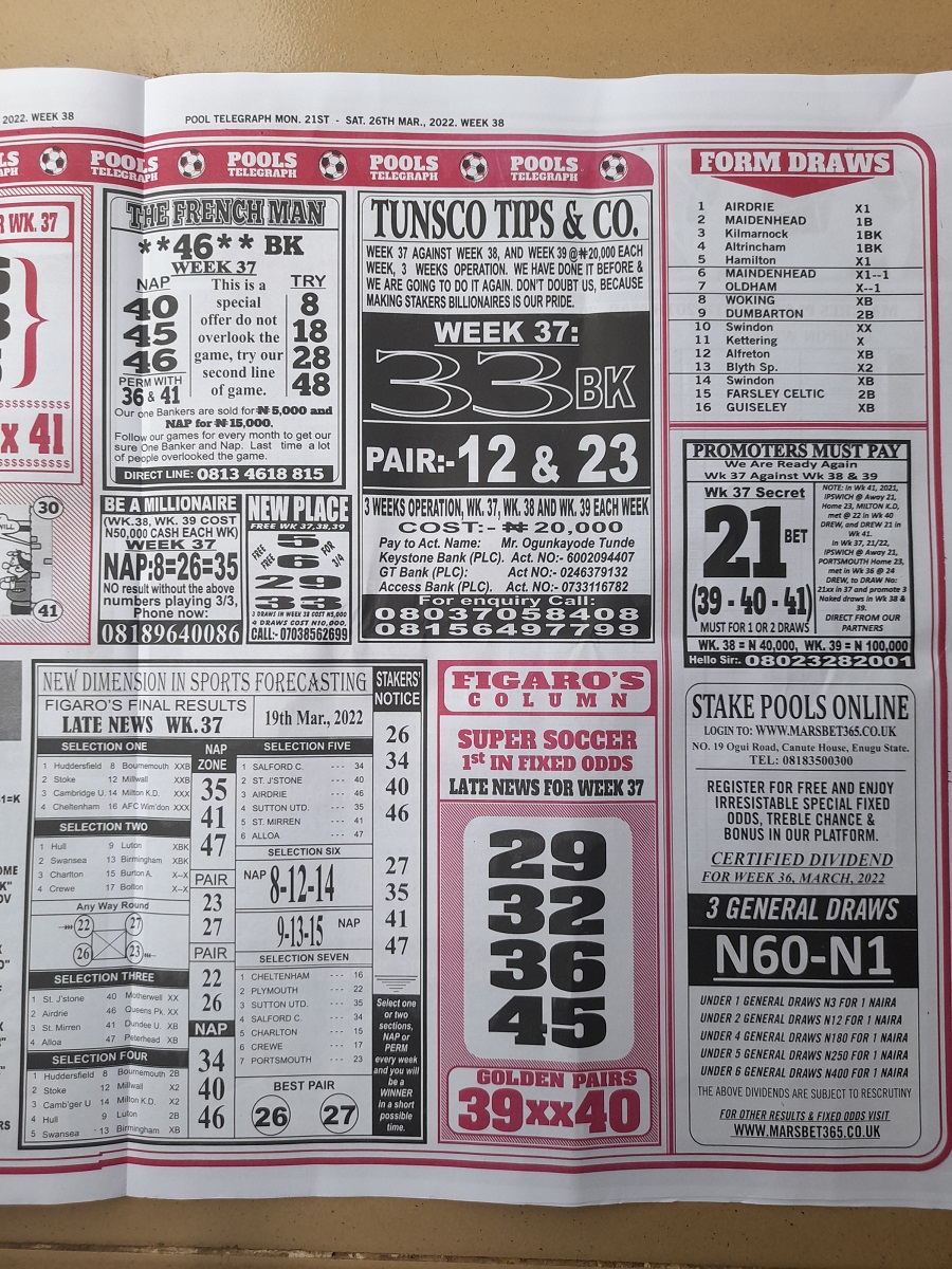 Here we provide you with the best football papers such as Bob Morton, Capital International, and Soccer ‘X’ Research, we publish the world’s leading weekend football forecasting papers apart from RSK in the likes of WinStar, BigWin, Dream International Research, Weekly 1.X.2 Matrix, and pools fixtures like Special Advance Fixtures, Fight On Football Fixtures, Banky Fixtures and Fortune Advance Fixtures.