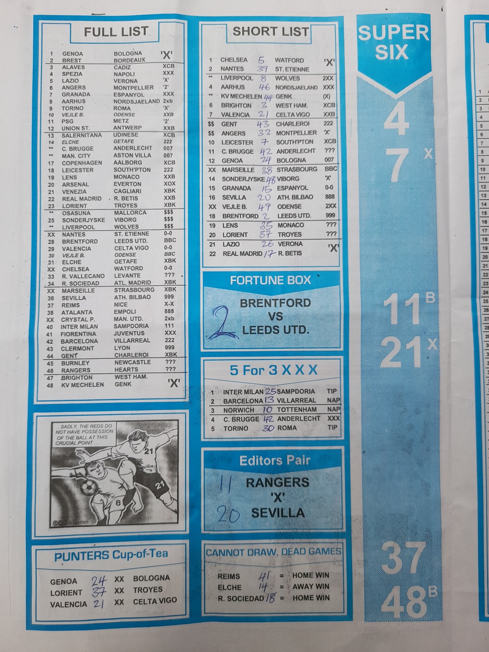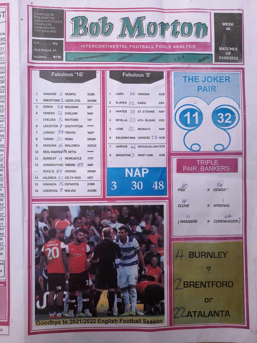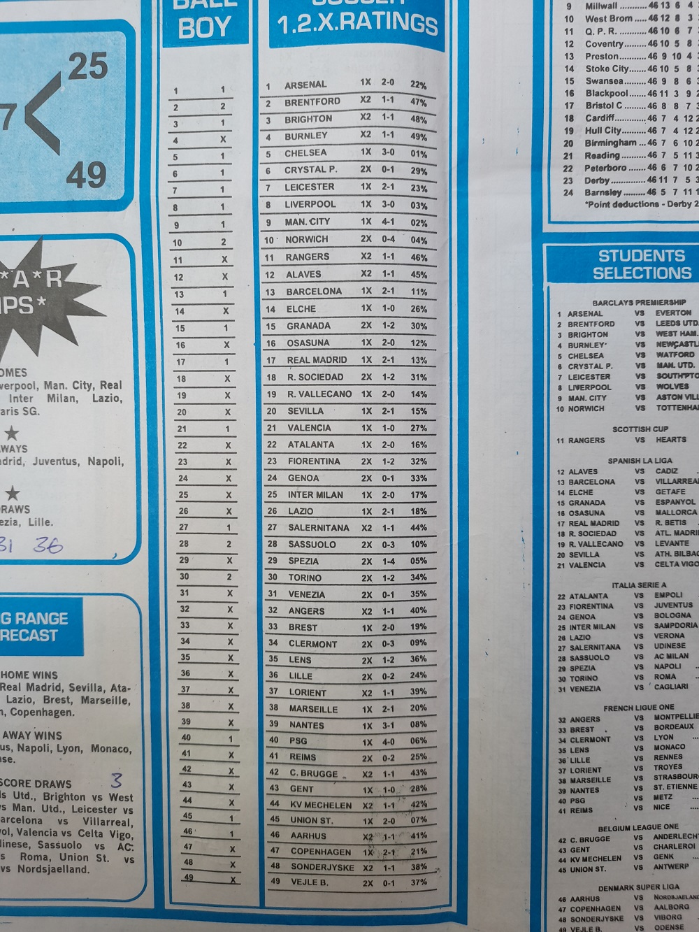Aussie/British Football Pool RSK Papers For This Week