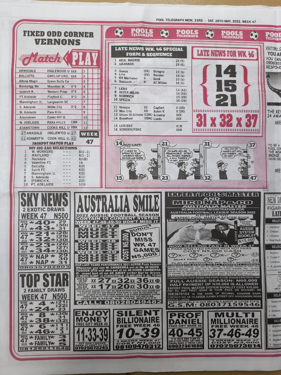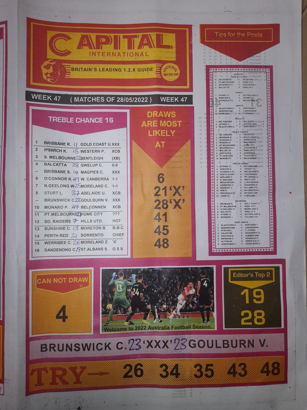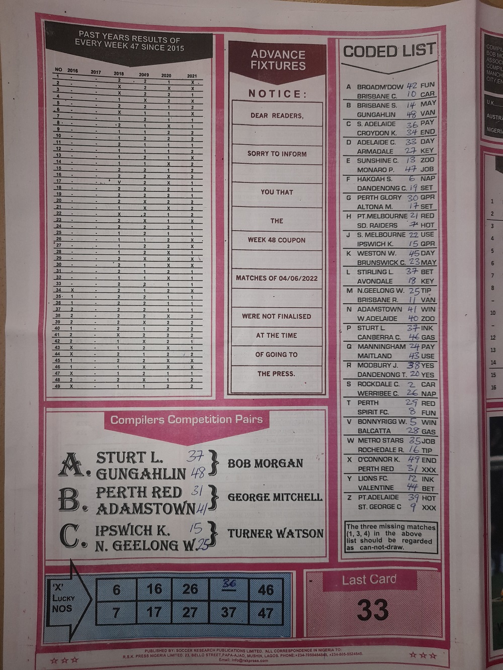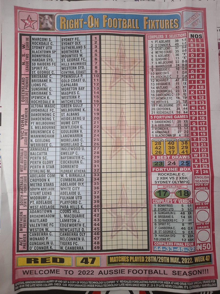 Week 47 rsk papers 2022: Here we provide you with the best football papers such as Bob Morton, Capital International, and Soccer ‘X’ Research, we publish the world’s leading weekend football forecasting papers apart from RSK in the likes of WinStar, BigWin, Dream International Research, Weekly 1.X.2 Matrix, and pools fixtures like Special Advance Fixtures, Fight On Football Fixtures, Banky Fixtures and Fortune Advance Fixtures.