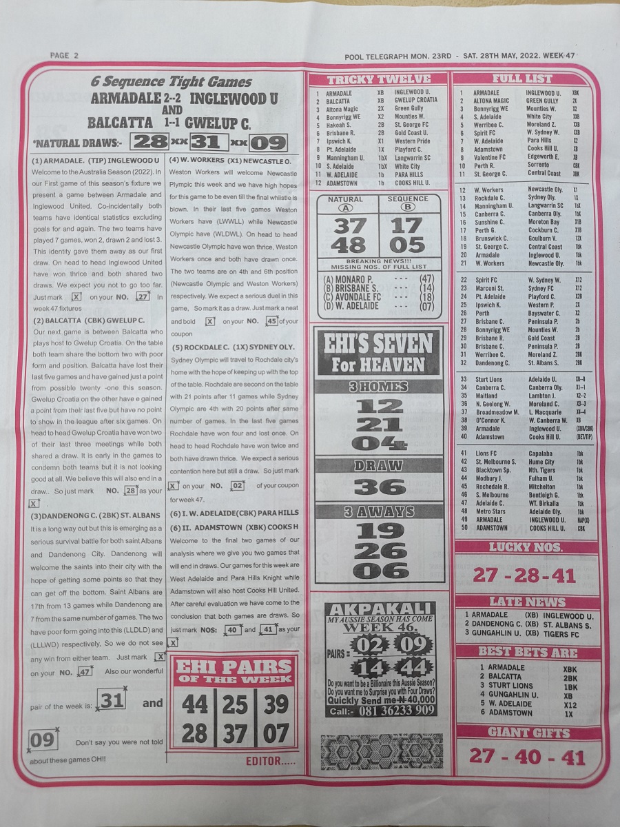 Also See: Week 46 Pool RSK Papers 2022: Bob Morton, Capital Intl, Soccer X Research, Winstar, BigWin