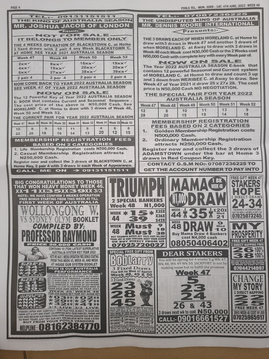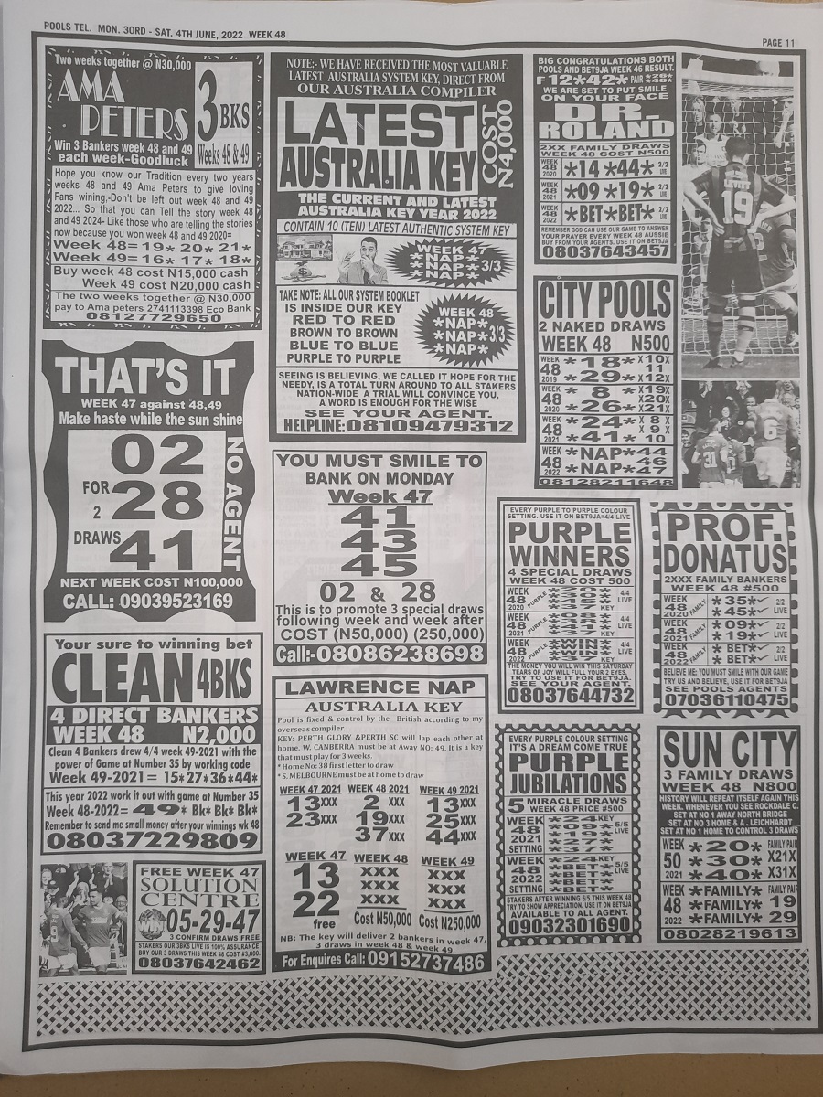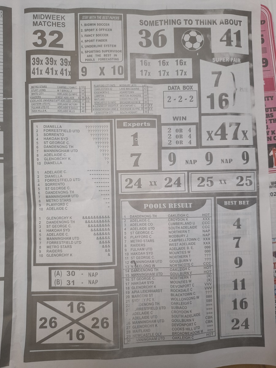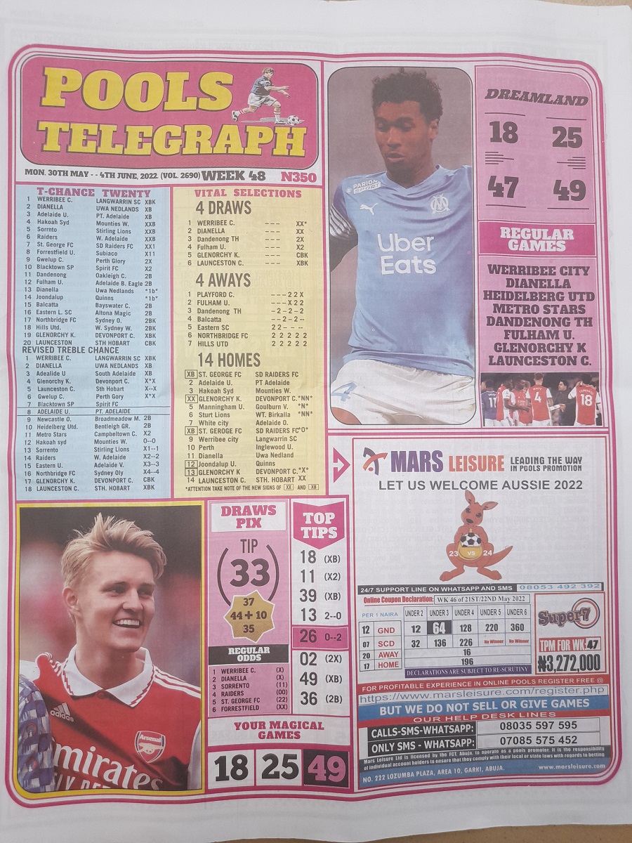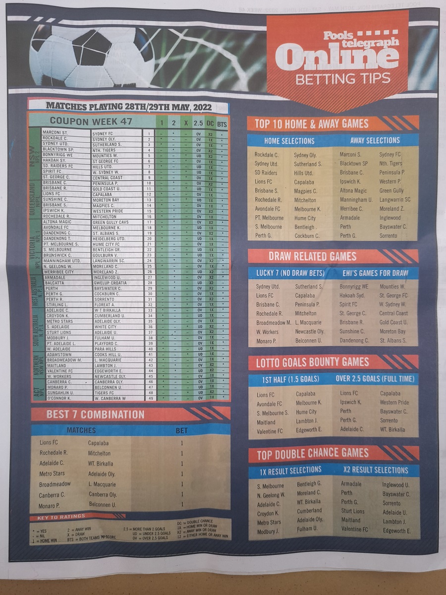 Welcome to this week late news pool papers. Here we provide you with papers such as: Bigwin Soccer, Pool Telegraph, Dream International Research, Dream Pool News, Sporting Informant and many others pools journal, also do remember that we furnish you with up-to-date football pools papers, rsk papers, late news papers, weekly telegraph, and now the pool telegraph pool late news which is to easy your forecasting needs.