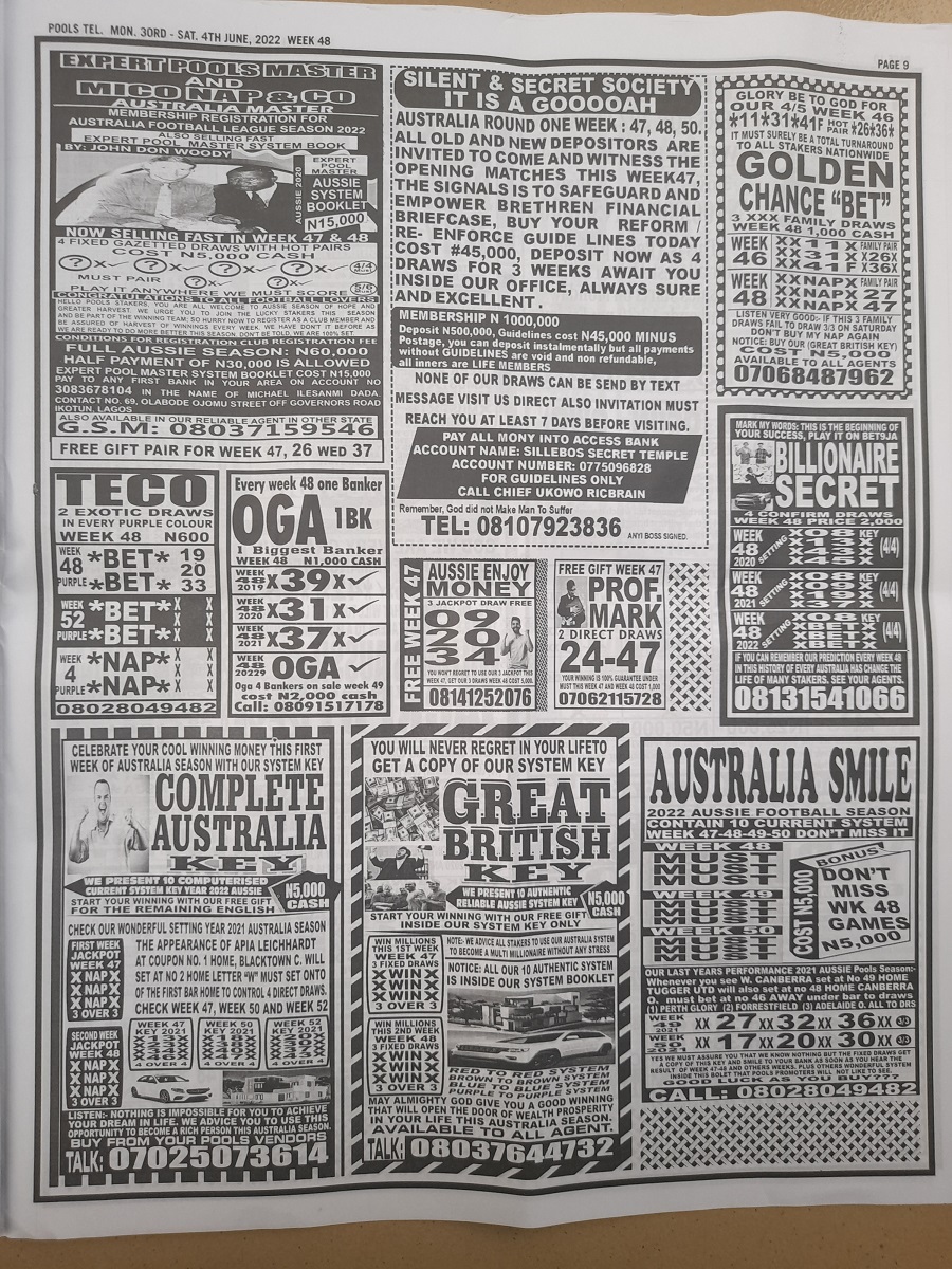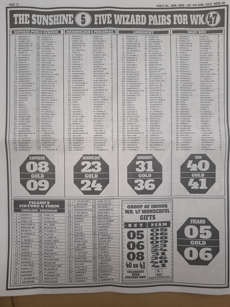 Week 48 Pools Late News Papers 2022