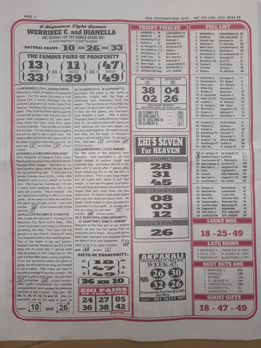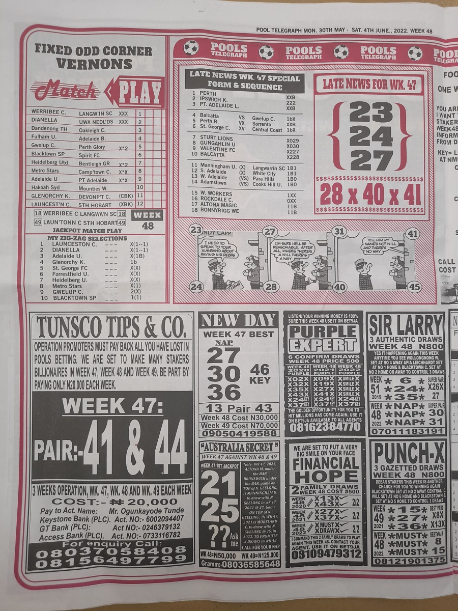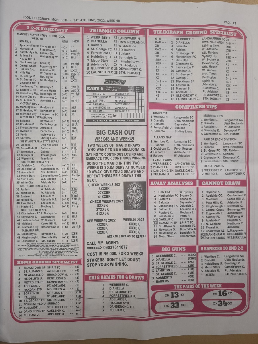 Week 48 pool telegraph 2022, Week 48 bigwin soccer 2022, Week 48 soccer standard 2022, Week 48 pool telegraph late news 2022, Week 48 bigwin soccer pool late news 2022