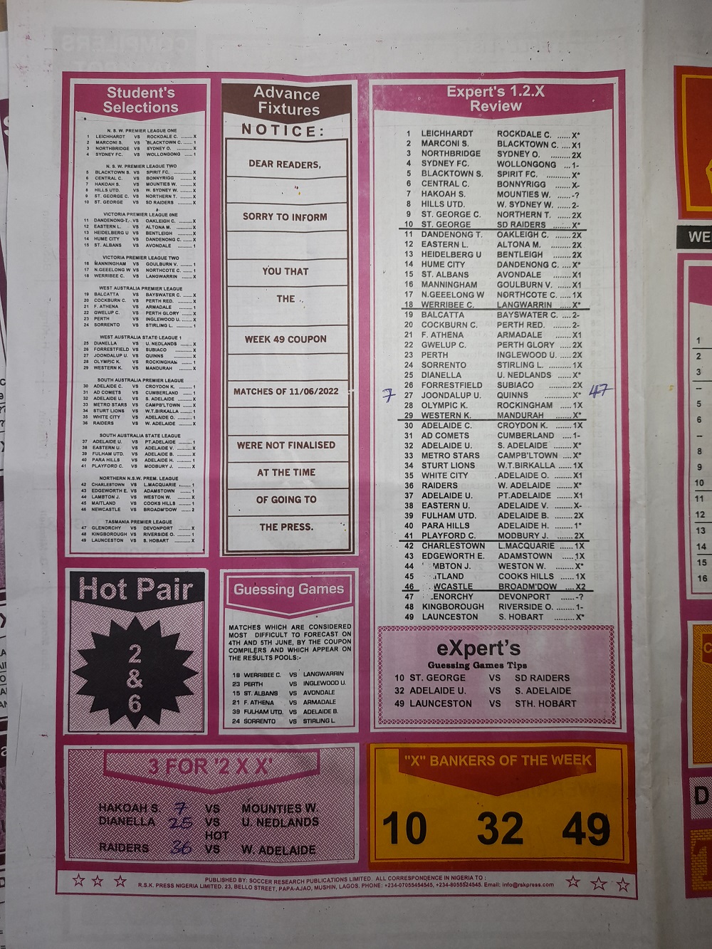Week 48 rsk papers 2022: Here we provide you with the best football papers such as Bob Morton, Capital International, and Soccer ‘X’ Research, we publish the world’s leading weekend football forecasting papers apart from RSK in the likes of WinStar, BigWin, Dream International Research, Weekly 1.X.2 Matrix, and pools fixtures like Special Advance Fixtures, Fight On Football Fixtures, Banky Fixtures and Fortune Advance Fixtures.