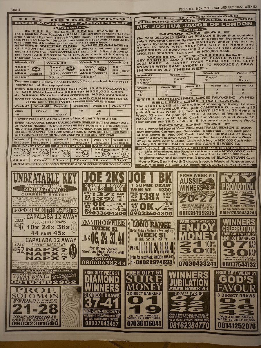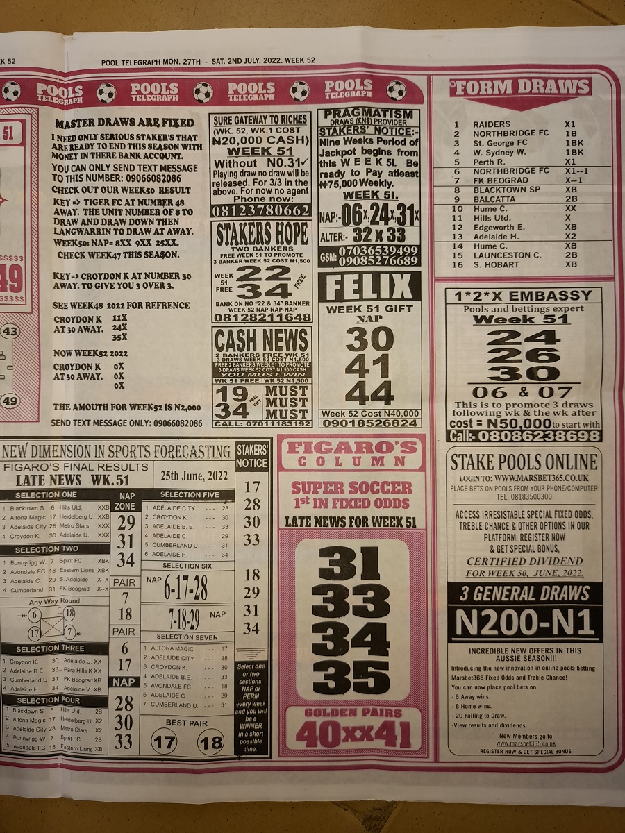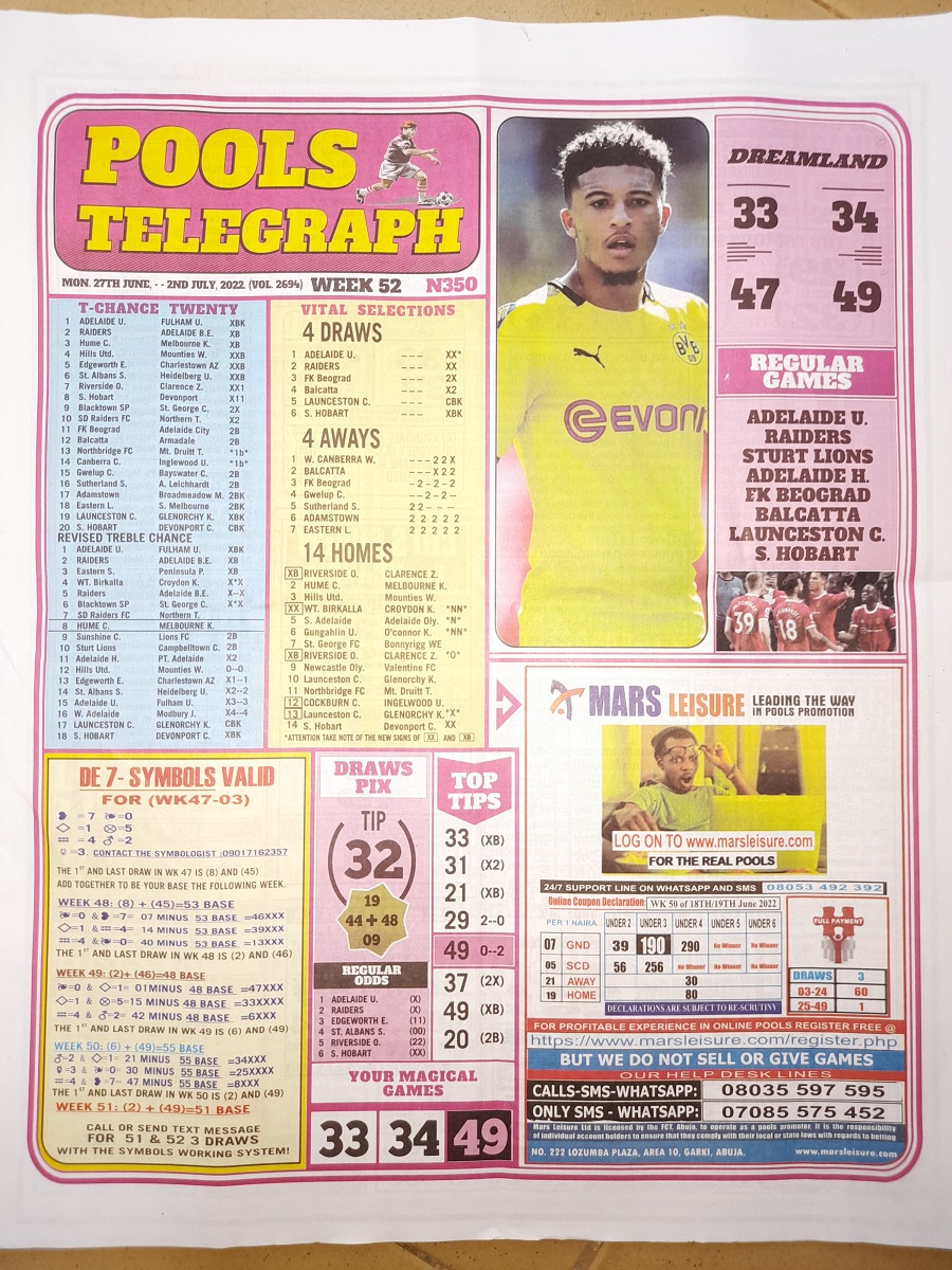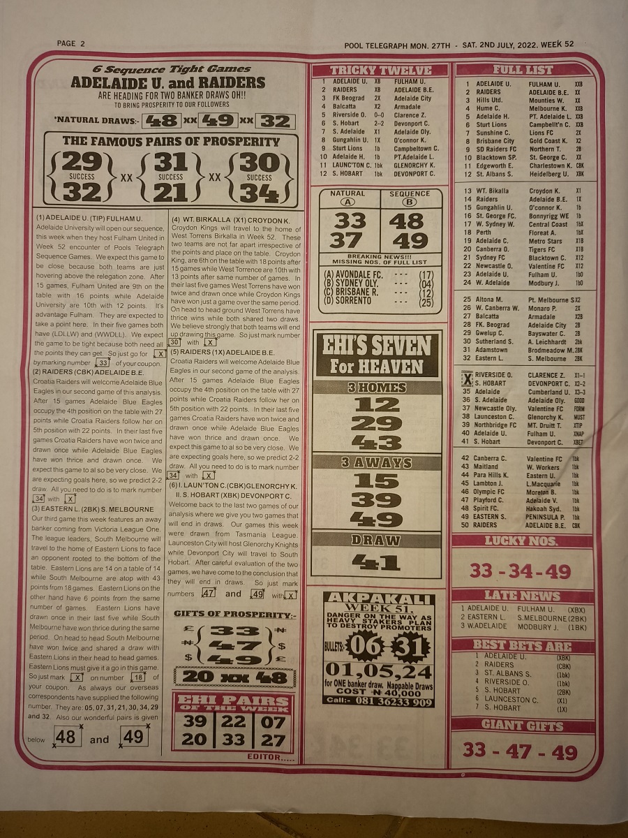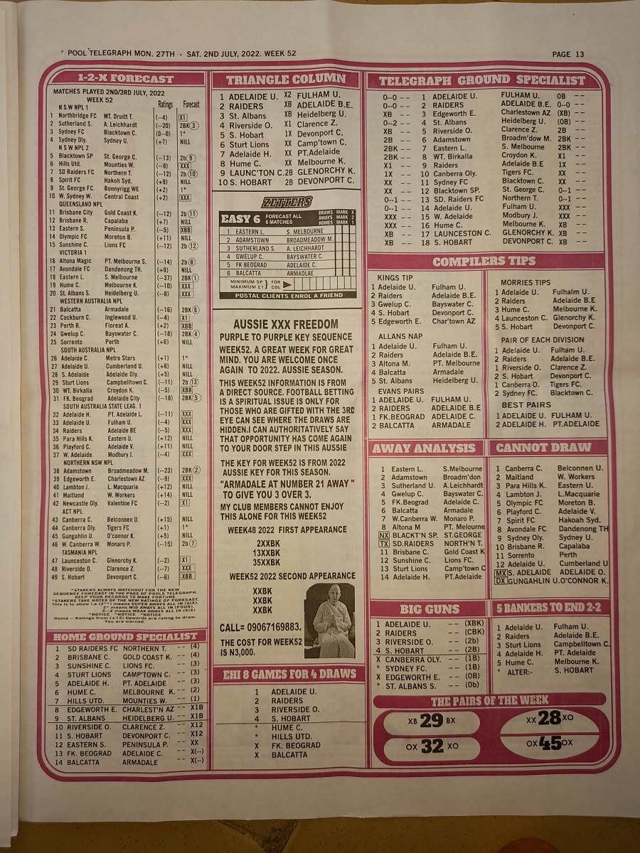Week 52 pool telegraph 2022, Week 52 bigwin soccer 2022, Week 52 soccer standard 2022, Week 52 pool telegraph late news 2022, Week 52 bigwin soccer pool late news 2022