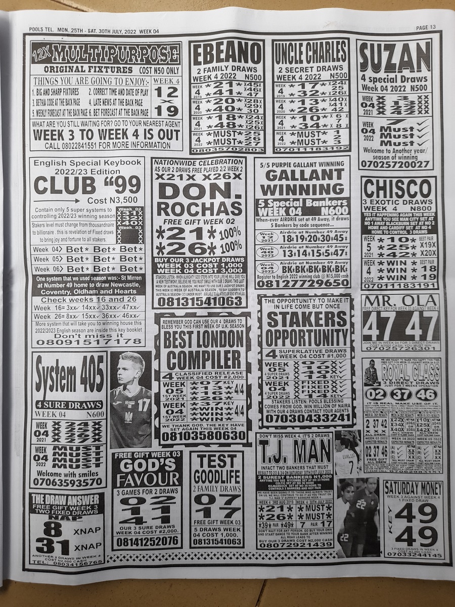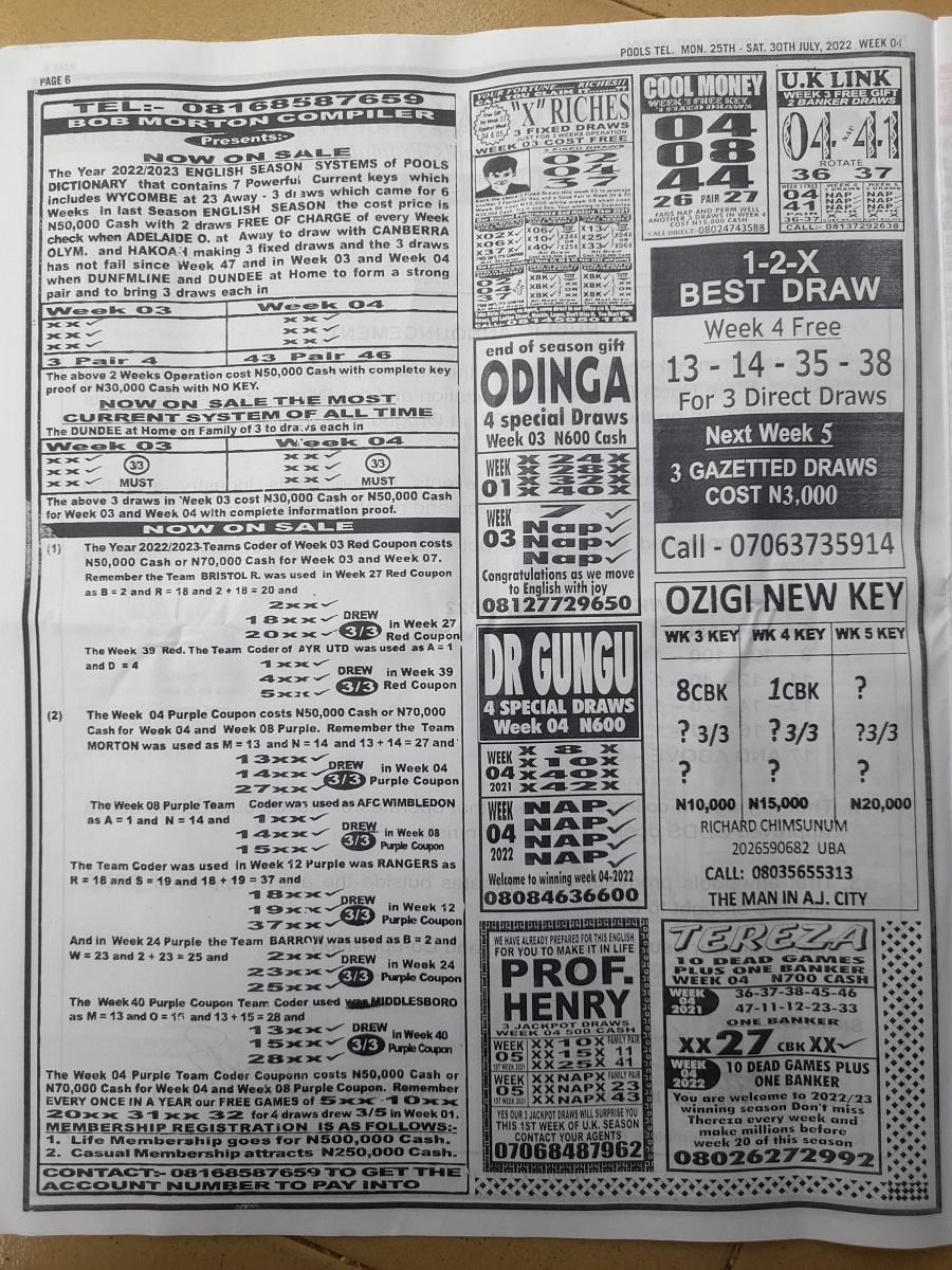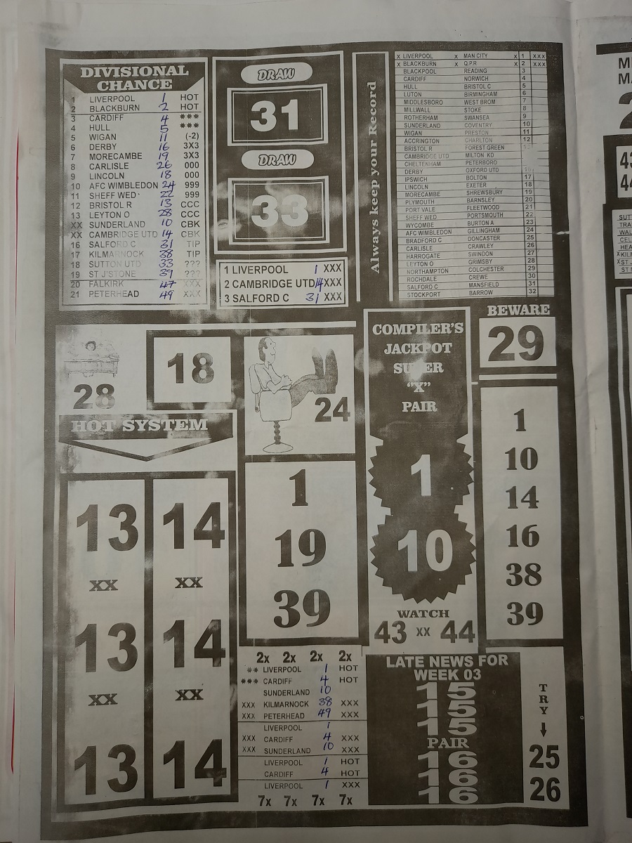 Welcome to this week late news pool papers. Here we provide you with papers such as: Bigwin Soccer, Pool Telegraph, Dream International Research, Dream Pool News, Sporting Informant and many others pools journal, also do remember that we furnish you with up-to-date football pools papers, rsk papers, late news papers, weekly telegraph, and now the pool telegraph pool late news which is to easy your forecasting needs.