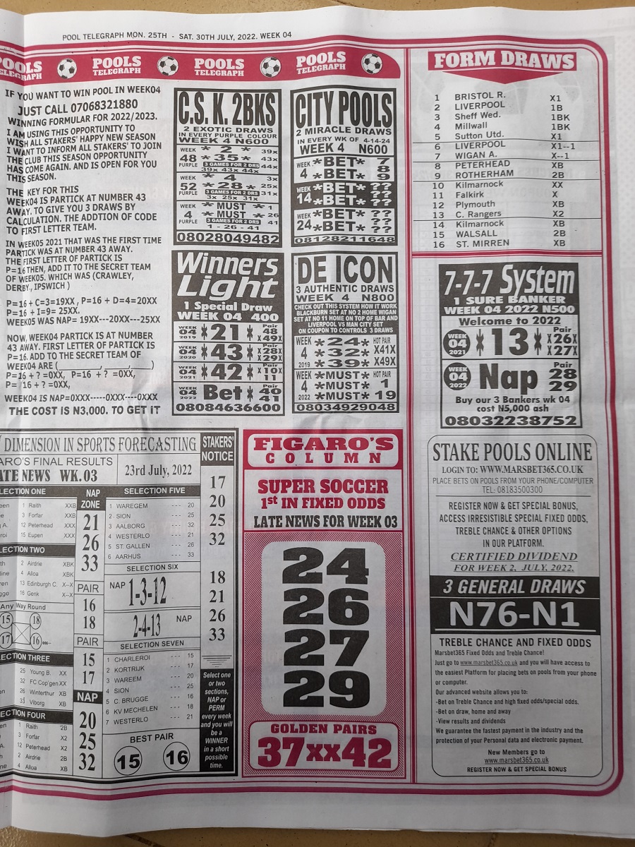 Week 4 pool telegraph 2022, Week 4 bigwin soccer 2022, Week 4 soccer standard 2022, Week 4 pool telegraph late news 2022, Week 4 bigwin soccer pool late news 2022