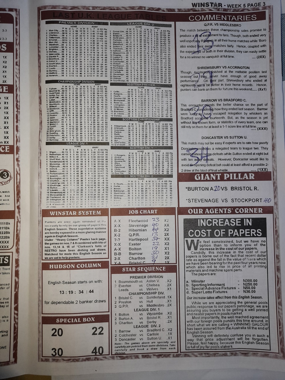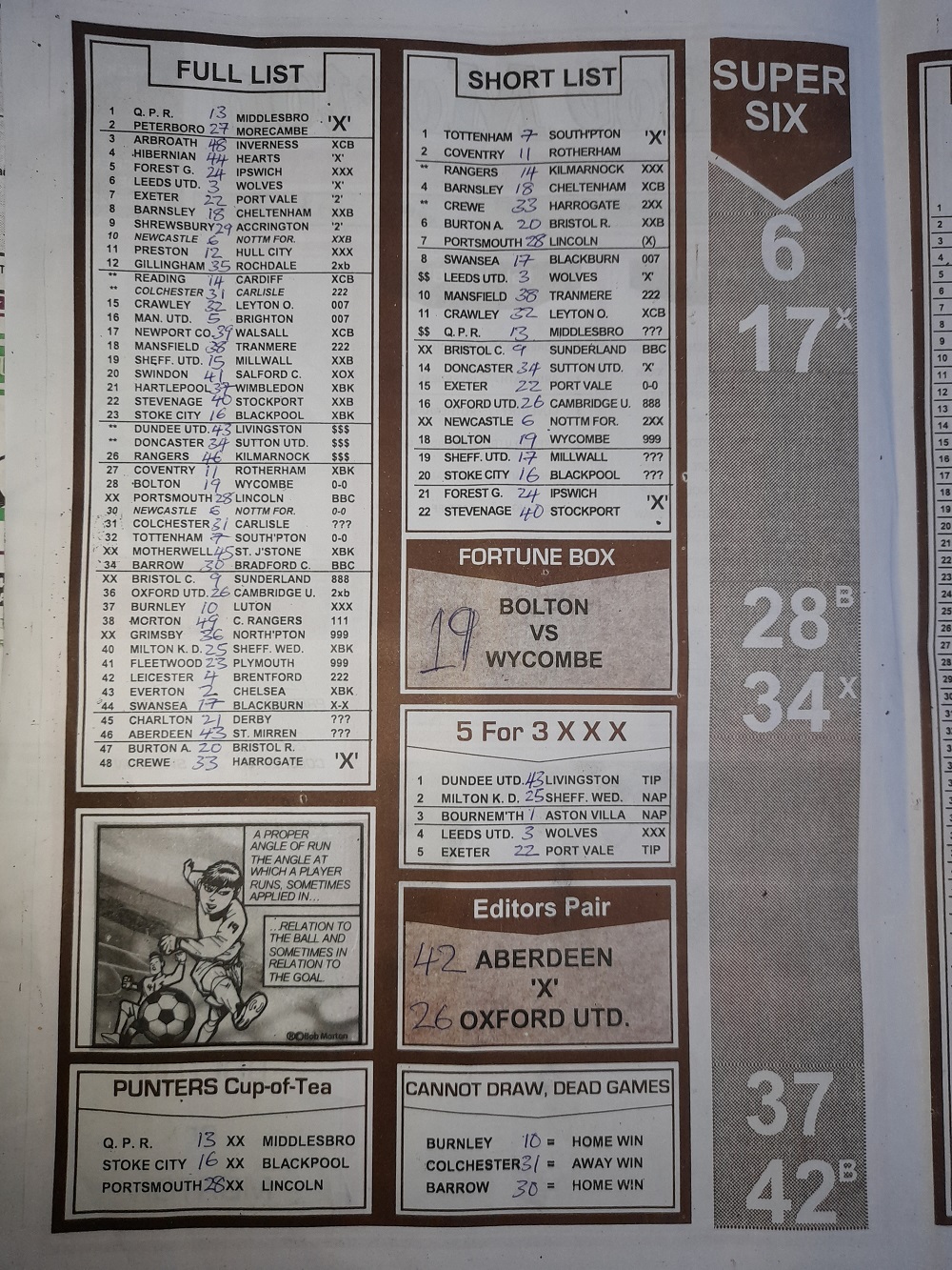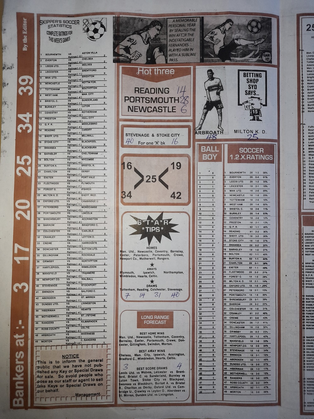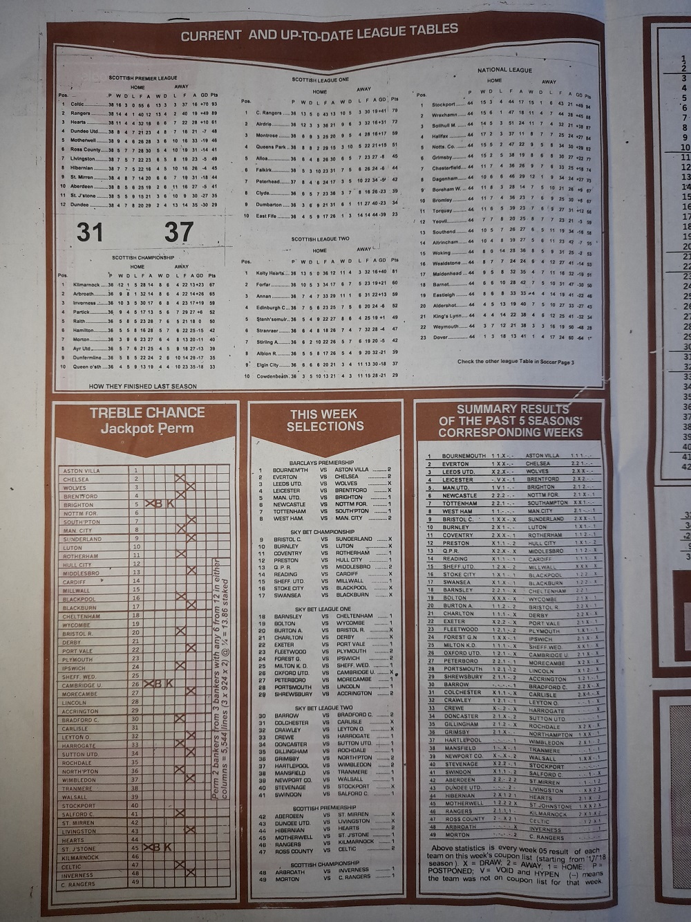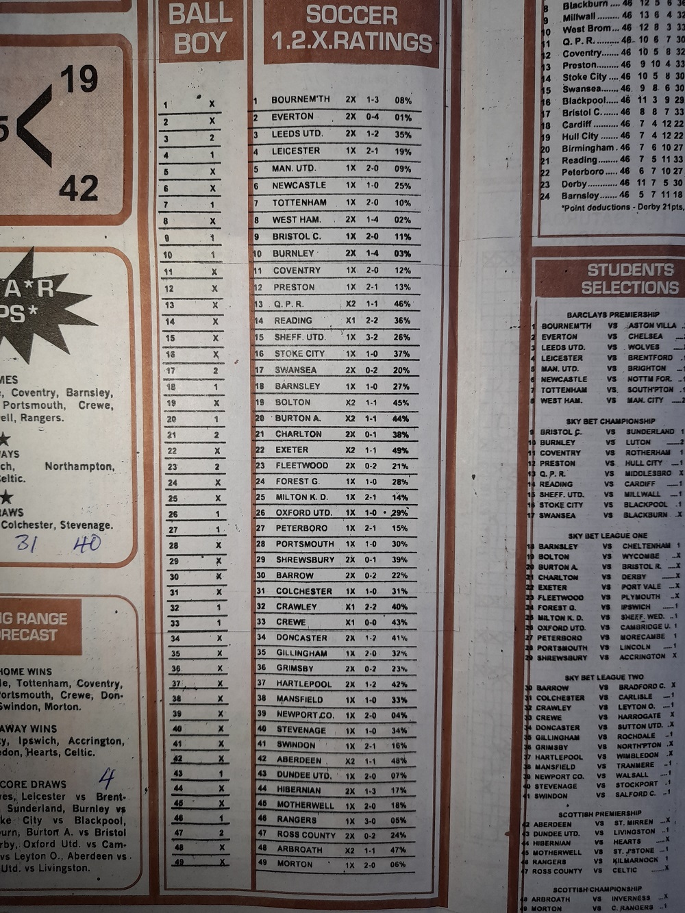 Aussie/British Football Pool RSK Papers For This Week