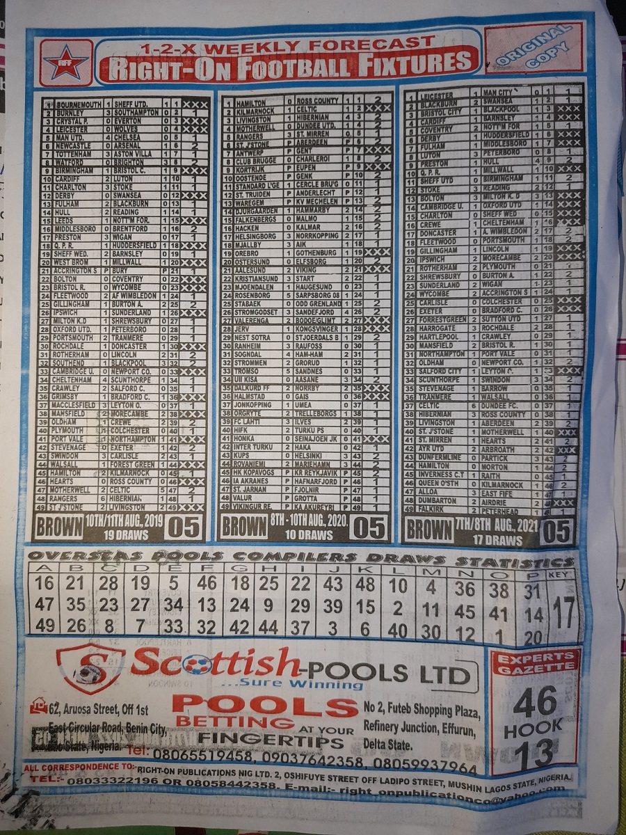 Week 5 rsk papers 2022: Here we provide you with the best football papers such as Bob Morton, Capital International, and Soccer ‘X’ Research, we publish the world’s leading weekend football forecasting papers apart from RSK in the likes of WinStar, BigWin, Dream International Research, Weekly 1.X.2 Matrix, and pools fixtures like Special Advance Fixtures, Fight On Football Fixtures, Banky Fixtures and Fortune Advance Fixtures.
