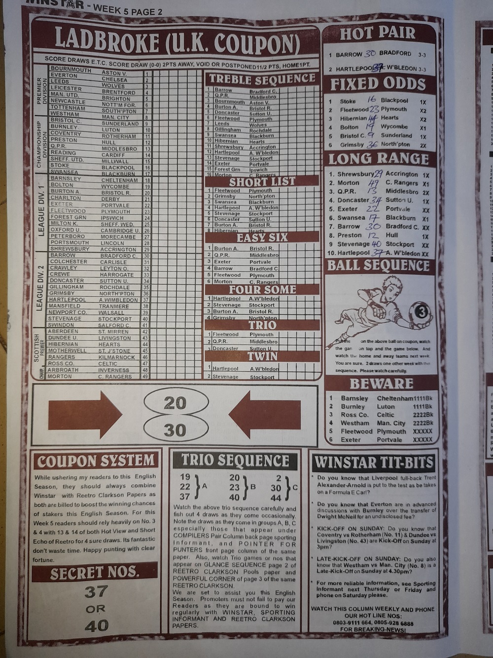 Week 5 Bigwin Soccer Pool Late News 2022
