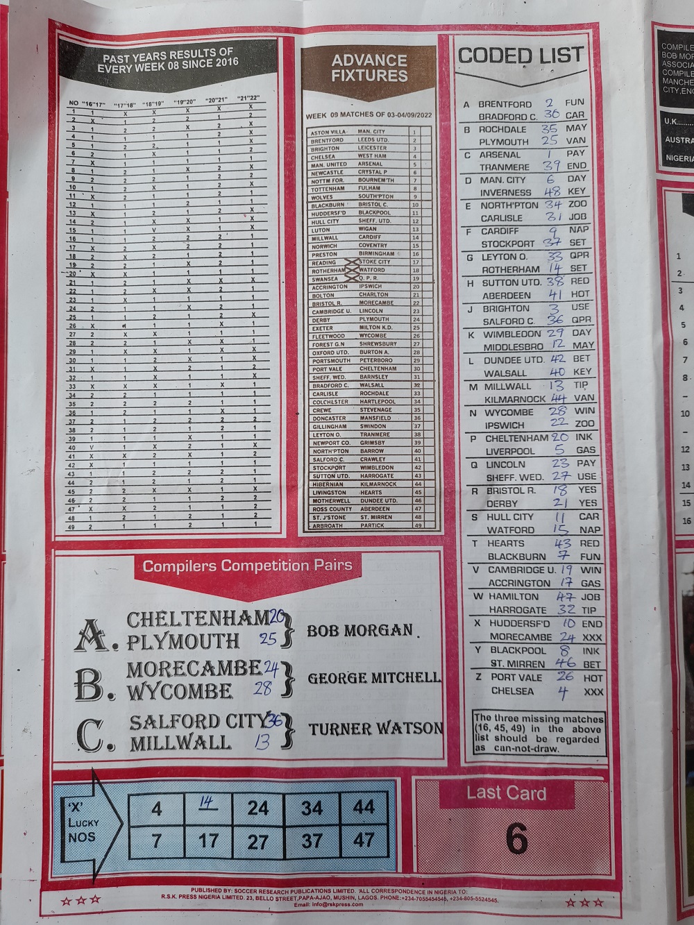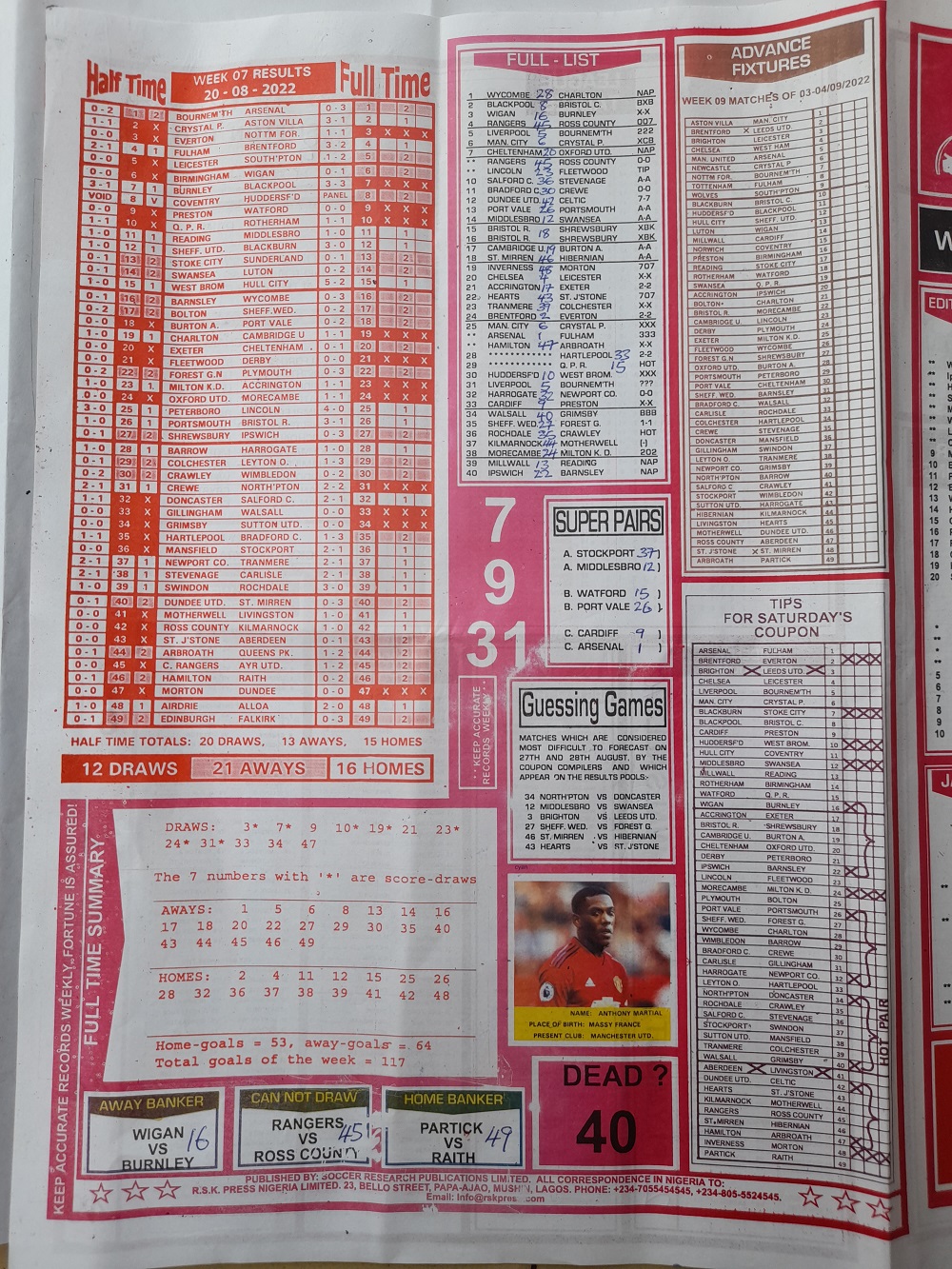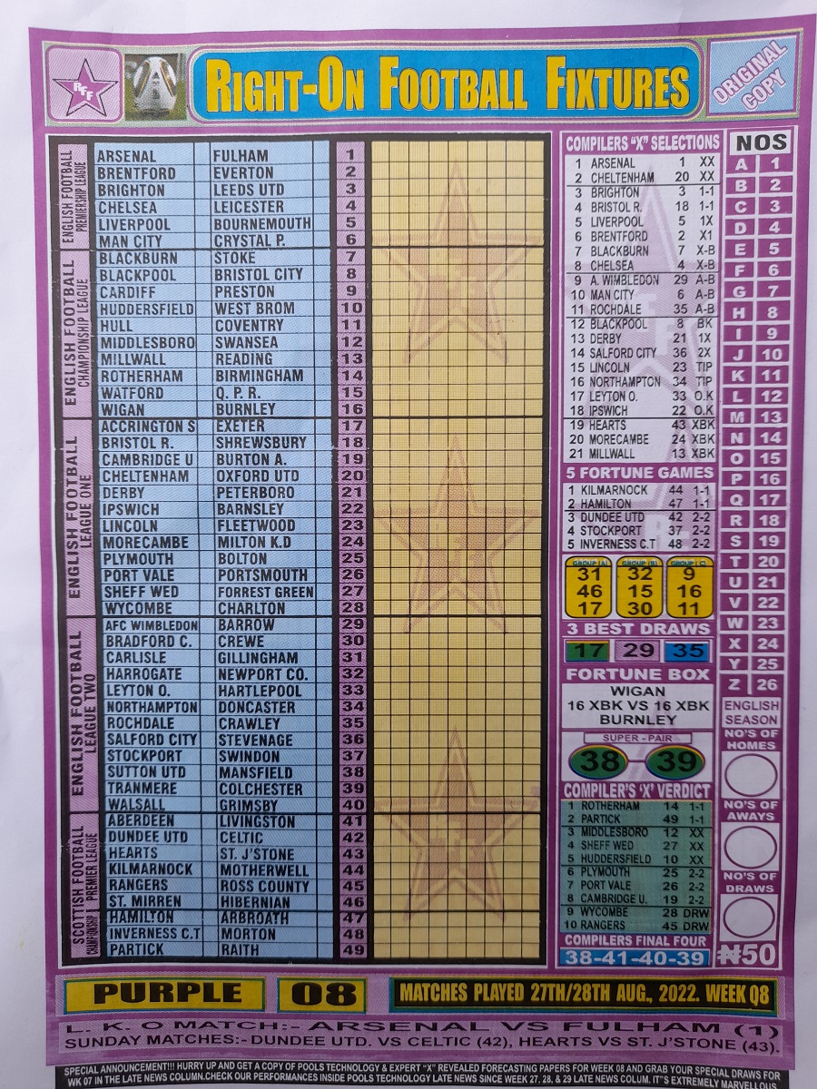 Week 8 rsk papers 2022: Here we provide you with the best football papers such as Bob Morton, Capital International, and Soccer ‘X’ Research, we publish the world’s leading weekend football forecasting papers apart from RSK in the likes of WinStar, BigWin, Dream International Research, Weekly 1.X.2 Matrix, and pools fixtures like Special Advance Fixtures, Fight On Football Fixtures, Banky Fixtures and Fortune Advance Fixtures.