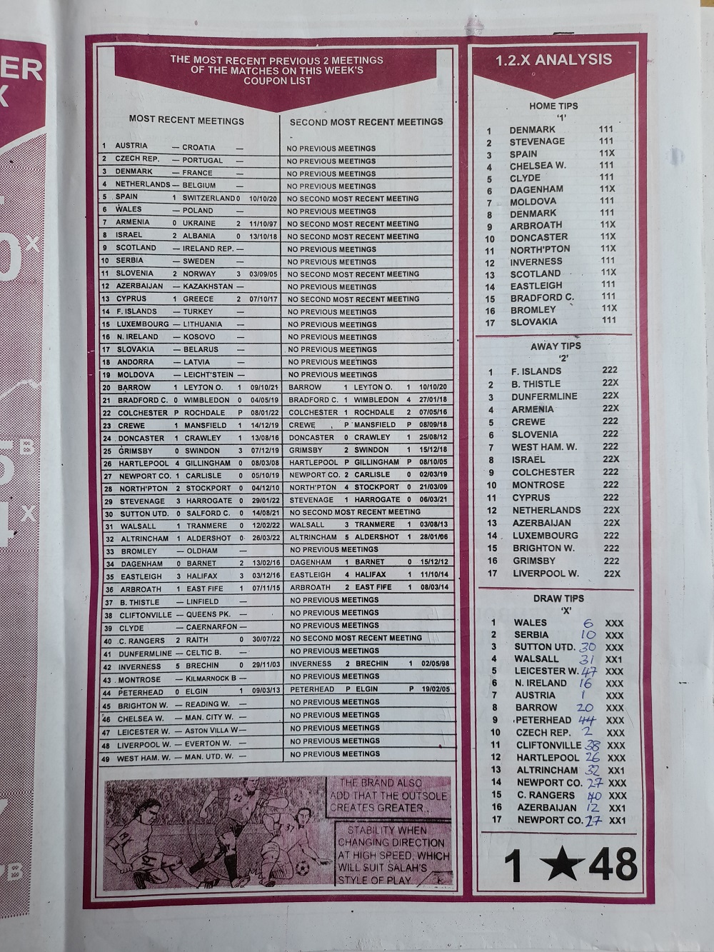 Week 12 rsk papers 2022: Here we provide you with the best football papers such as Bob Morton, Capital International, and Soccer ‘X’ Research, we publish the world’s leading weekend football forecasting papers apart from RSK in the likes of WinStar, BigWin, Dream International Research, Weekly 1.X.2 Matrix, and pools fixtures like Special Advance Fixtures, Fight On Football Fixtures, Banky Fixtures and Fortune Advance Fixtures.