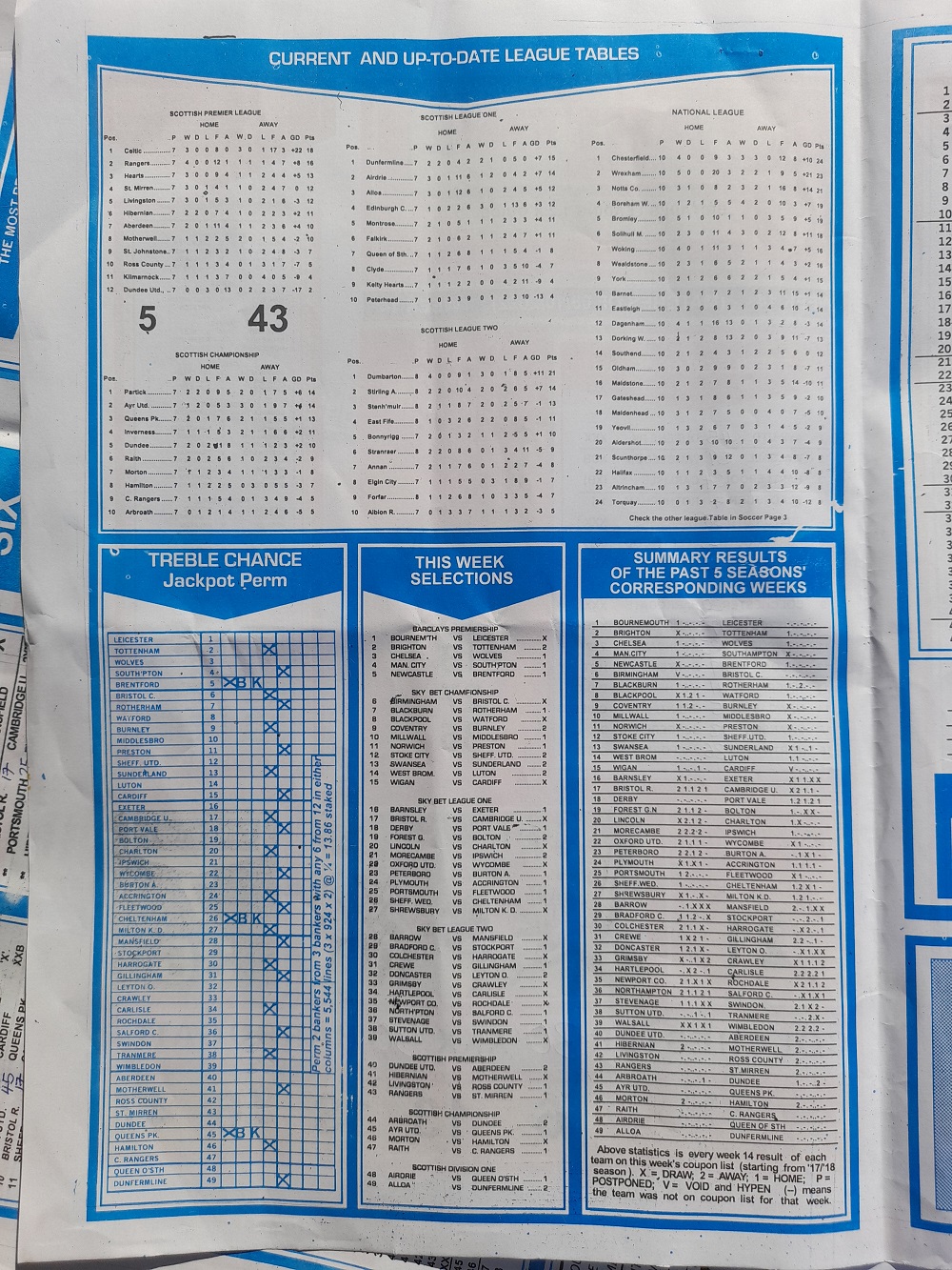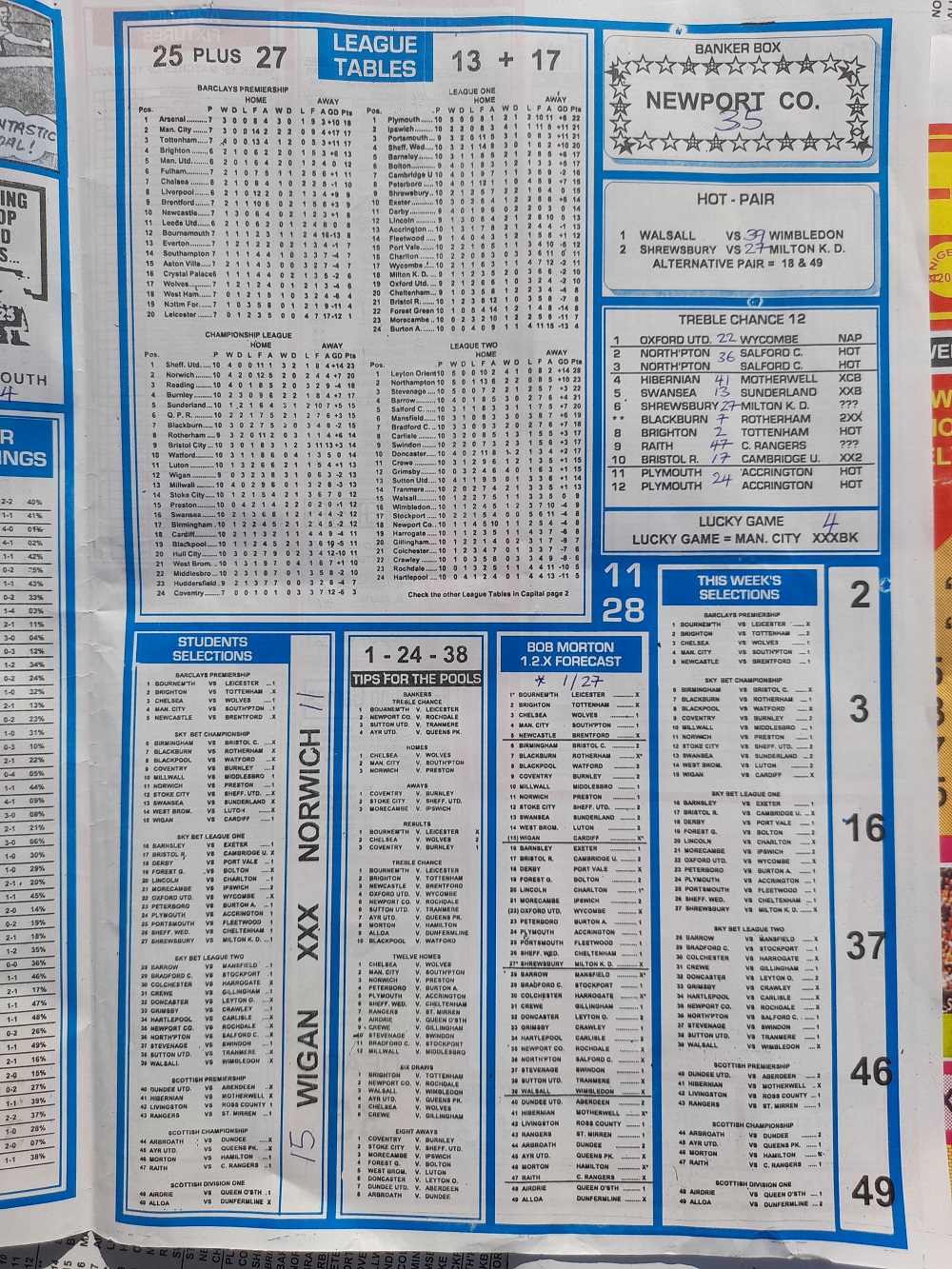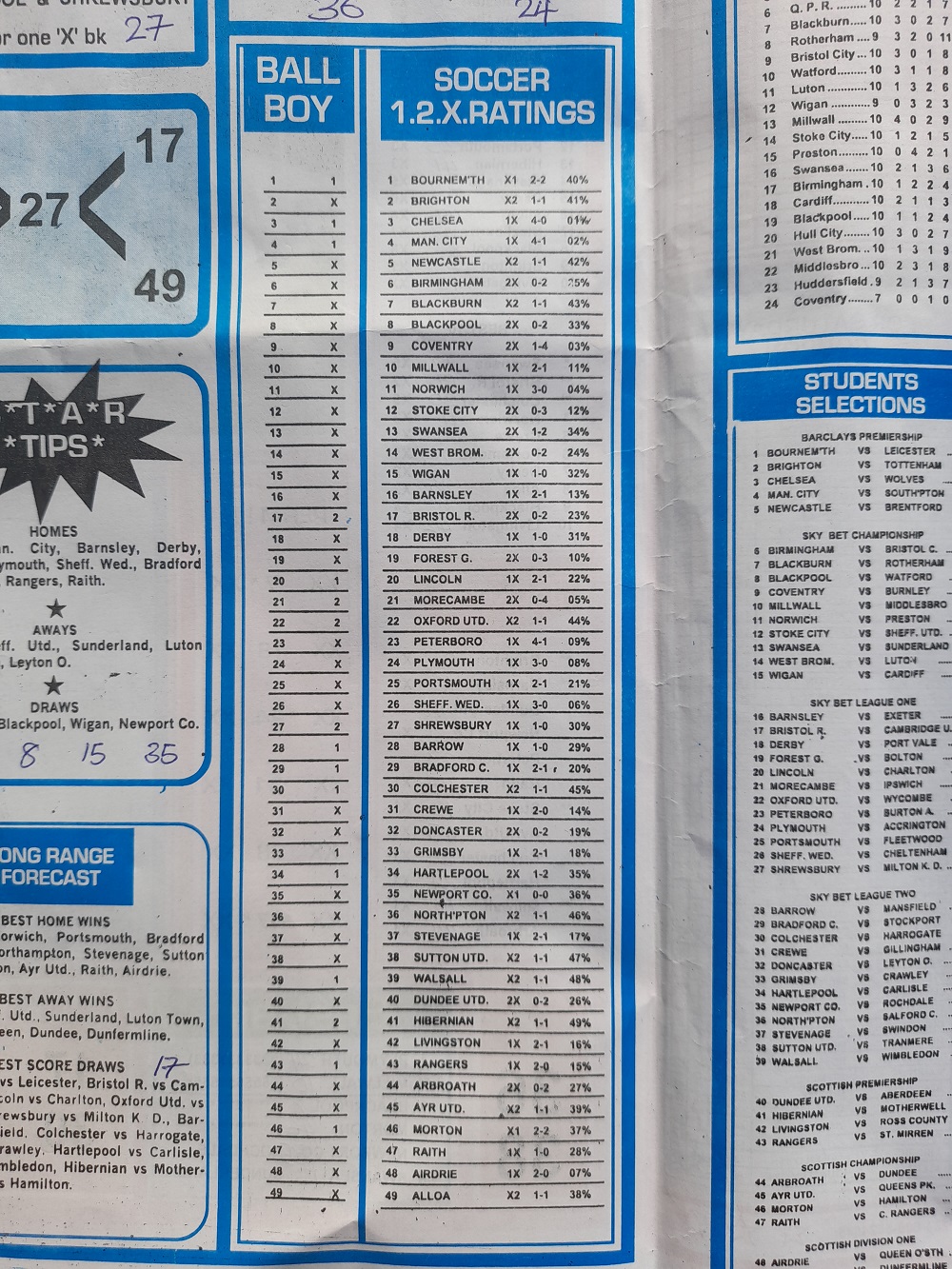 Aussie/British Football Pool RSK Papers For This Week