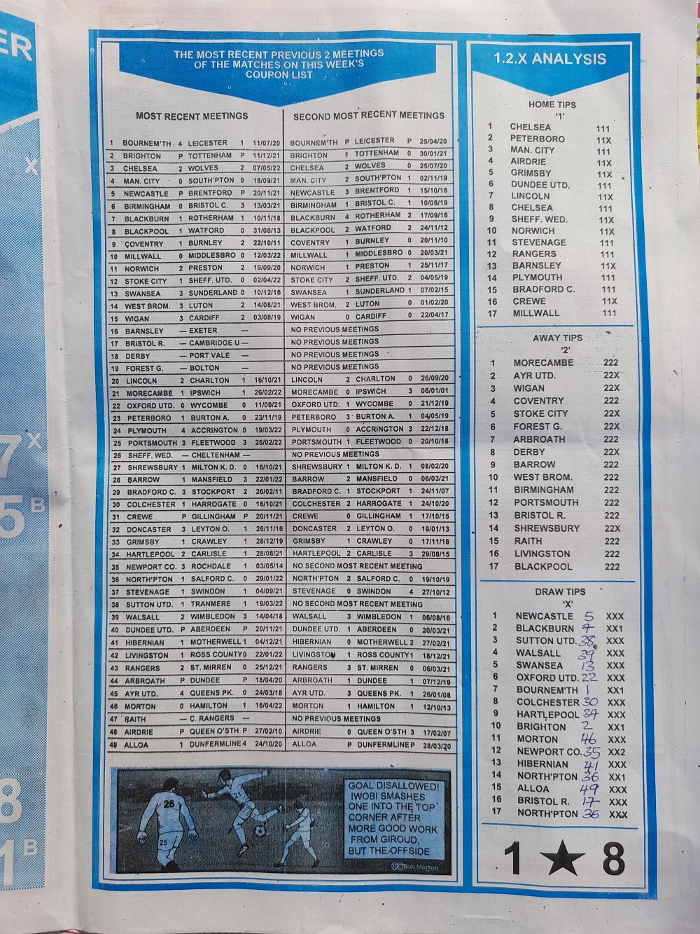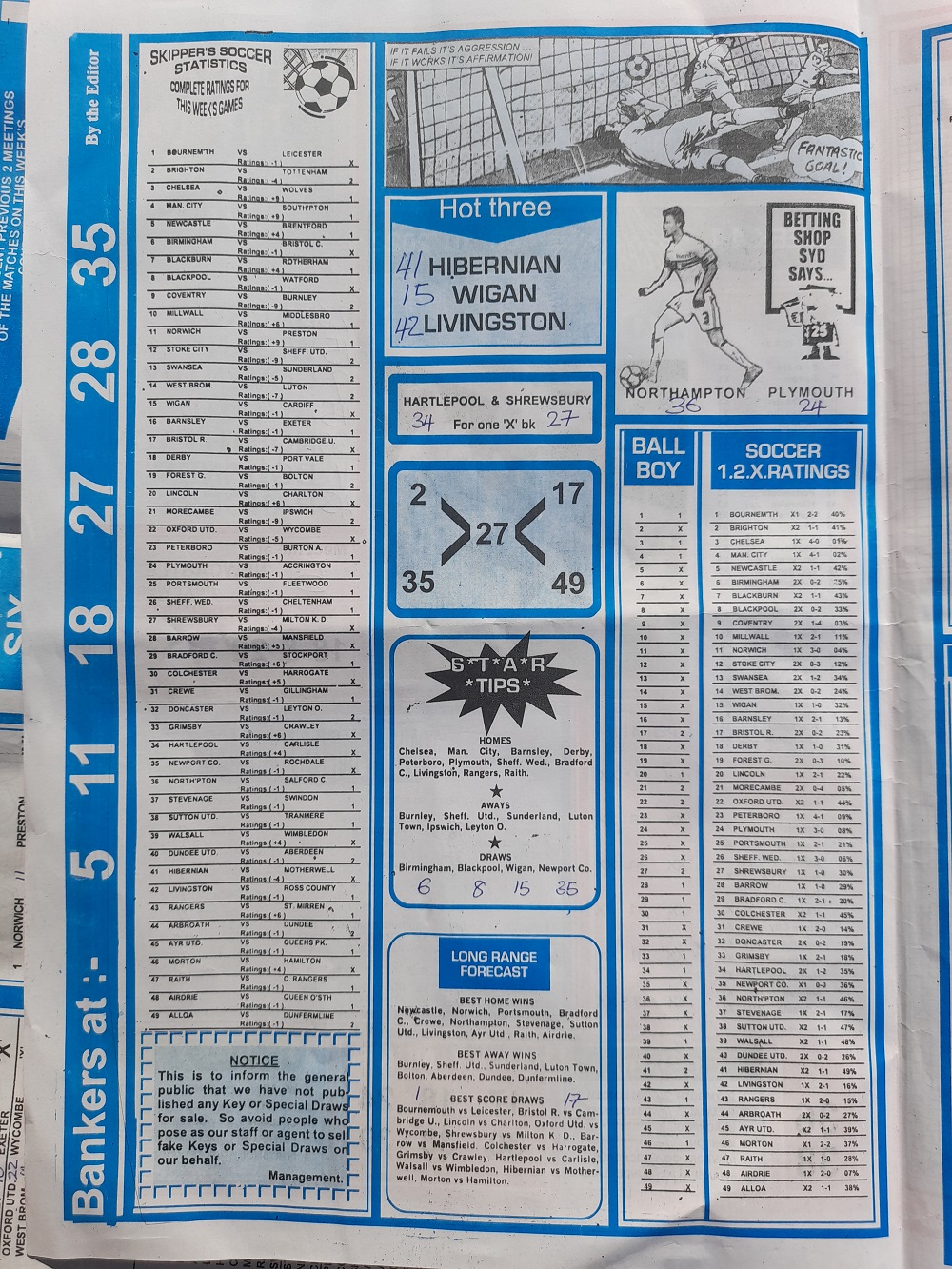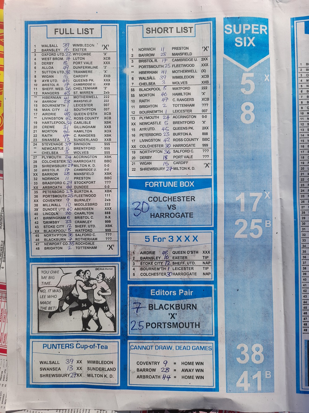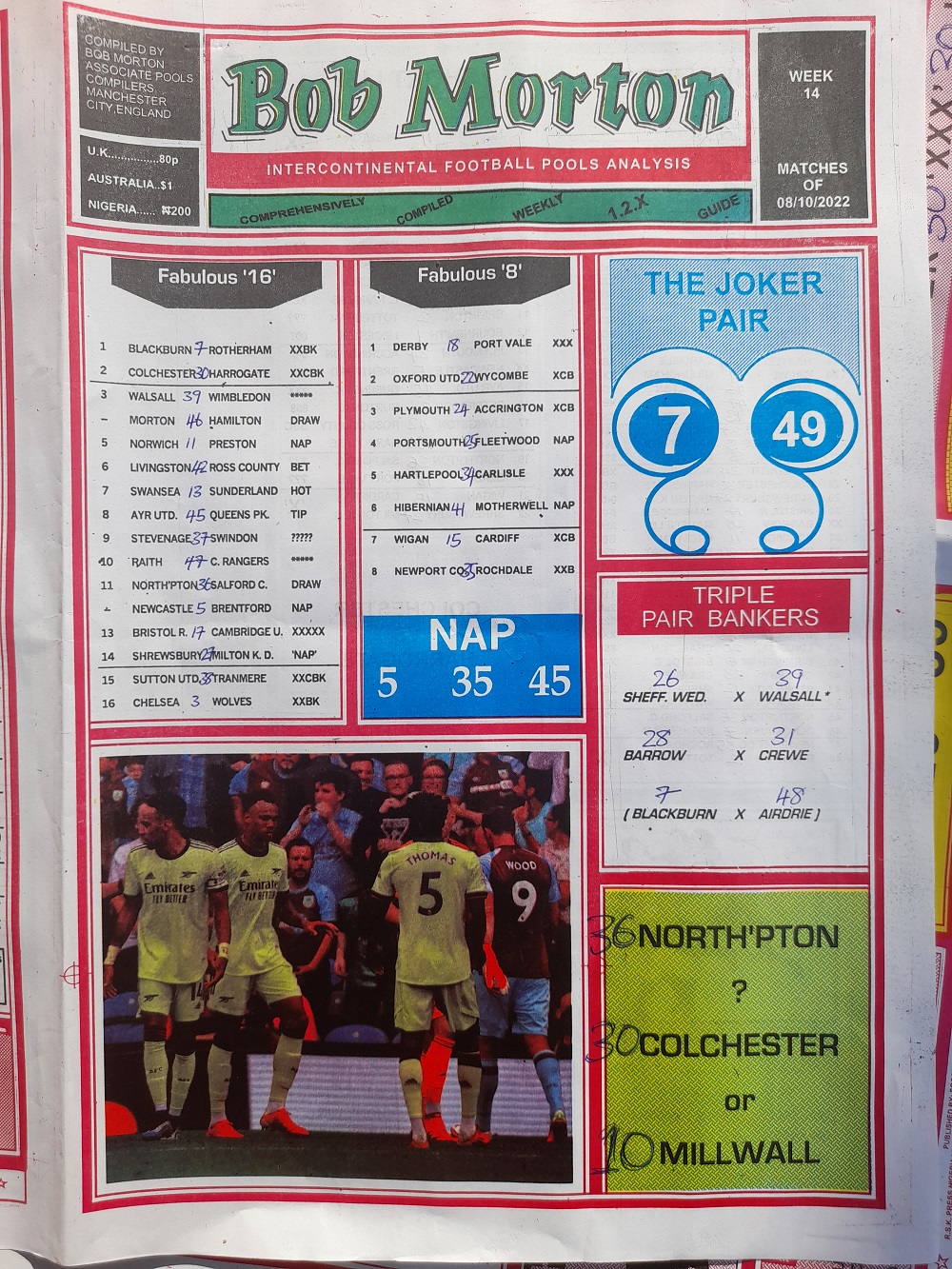 Aussie/British Football Pool RSK Papers For This Week