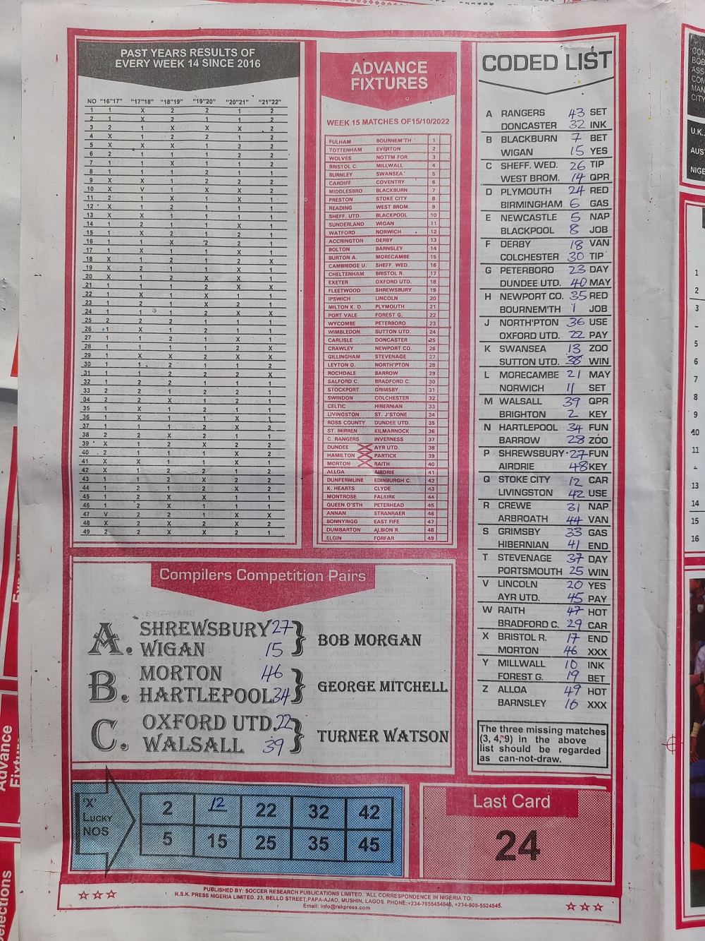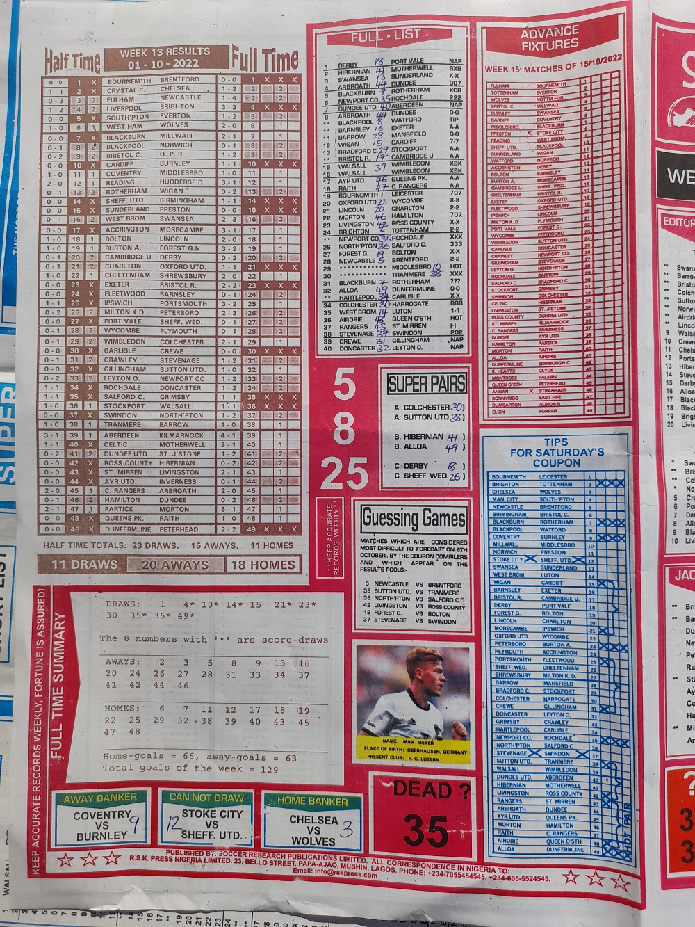 Week 14 rsk papers 2022: Here we provide you with the best football papers such as Bob Morton, Capital International, and Soccer ‘X’ Research, we publish the world’s leading weekend football forecasting papers apart from RSK in the likes of WinStar, BigWin, Dream International Research, Weekly 1.X.2 Matrix, and pools fixtures like Special Advance Fixtures, Fight On Football Fixtures, Banky Fixtures and Fortune Advance Fixtures.