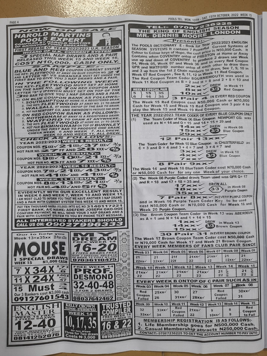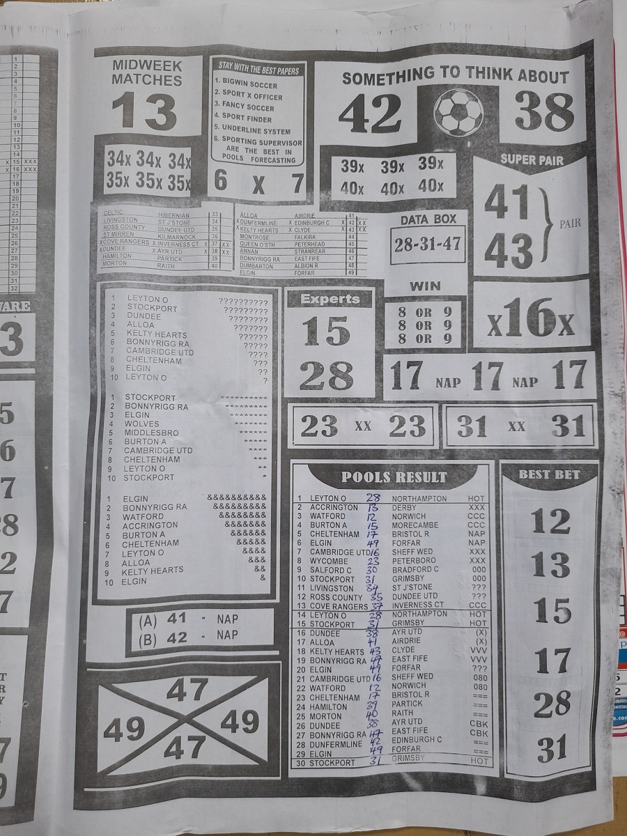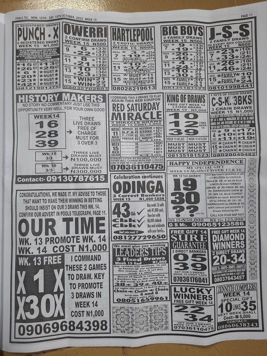 Week 15 late news paper 2022: Welcome to this week late news pool papers. Here we provide you with papers such as: Bigwin Soccer, Pool Telegraph, Dream International Research, Dream Pool News, Sporting Informant and many others pools journal, also do remember that we furnish you with up-to-date football pools papers, rsk papers, late news papers, weekly telegraph, and now the pool telegraph pool late news which is to easy your forecasting needs.