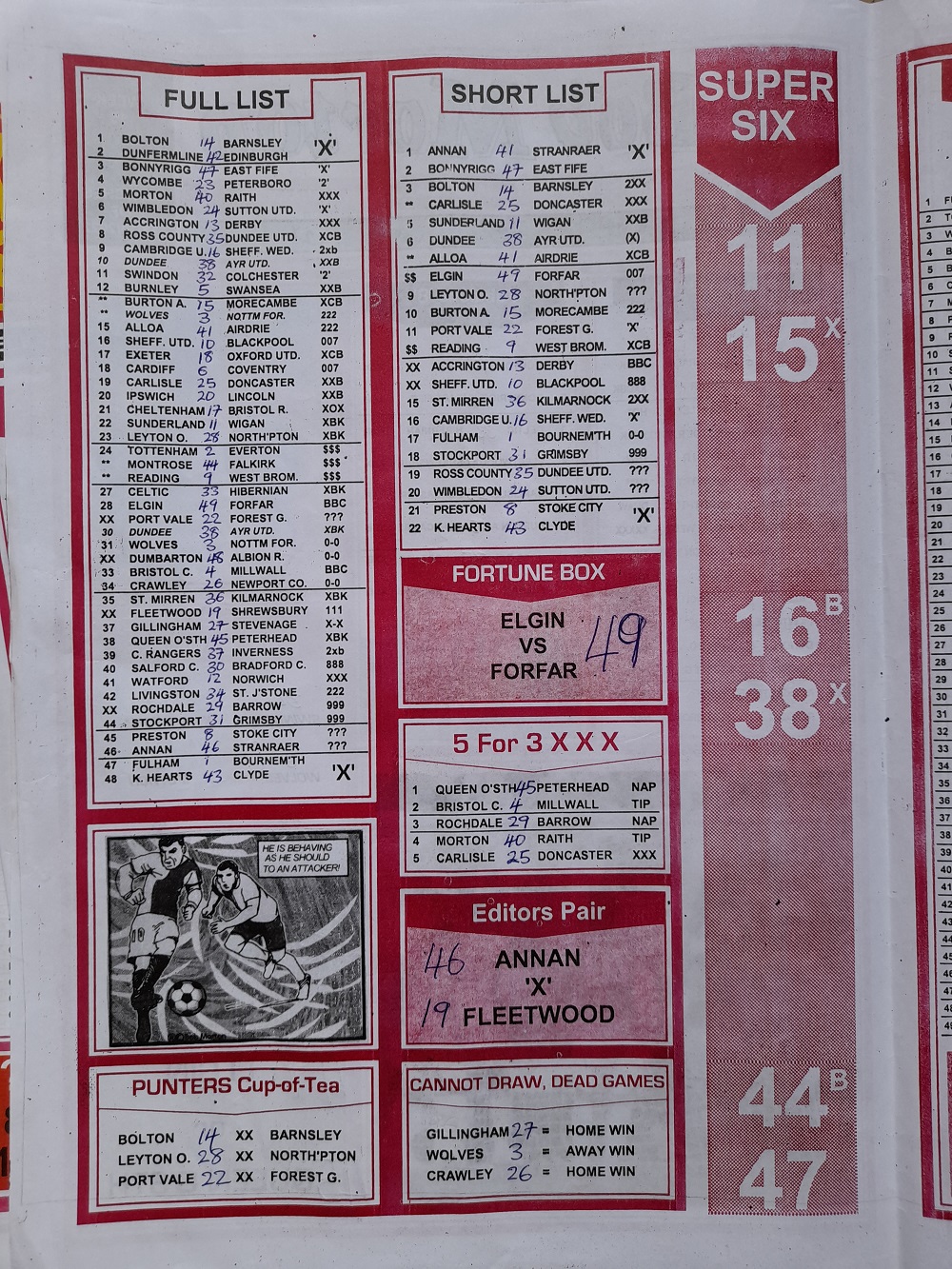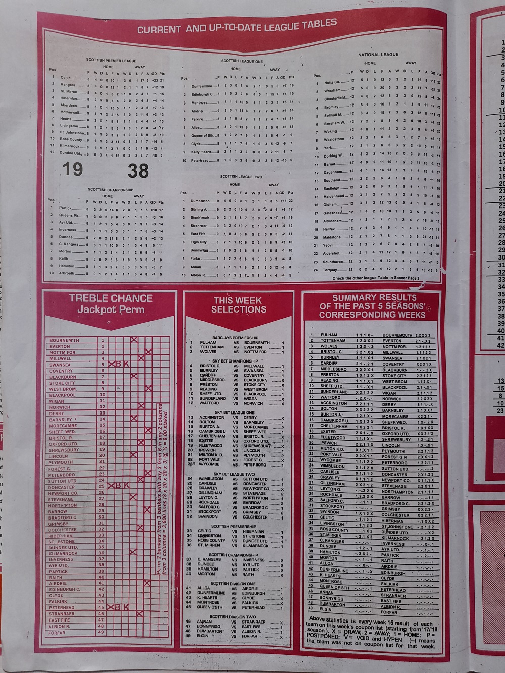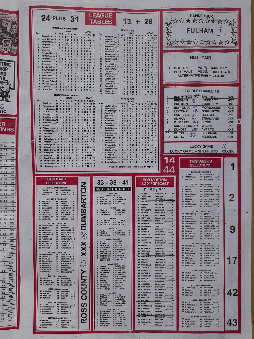 Aussie/British Football Pool RSK Papers For This Week