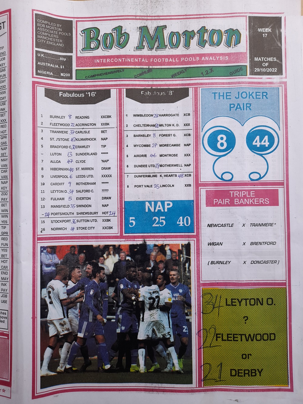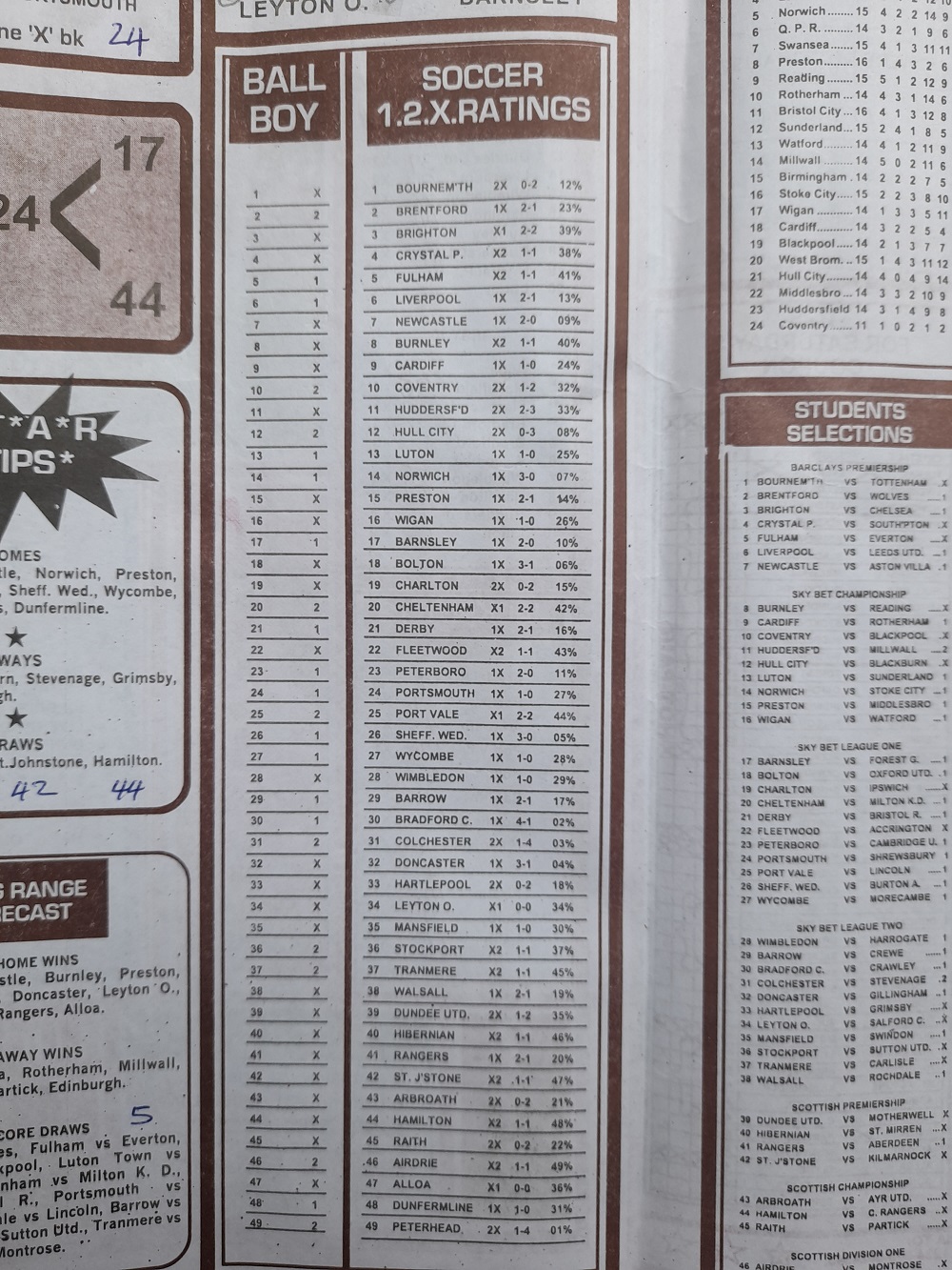Aussie/British Football Pool RSK Papers For This Week