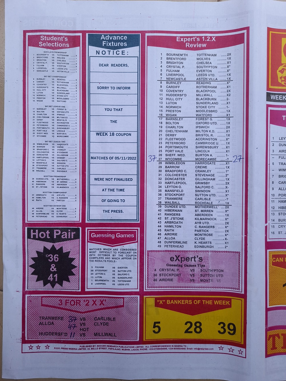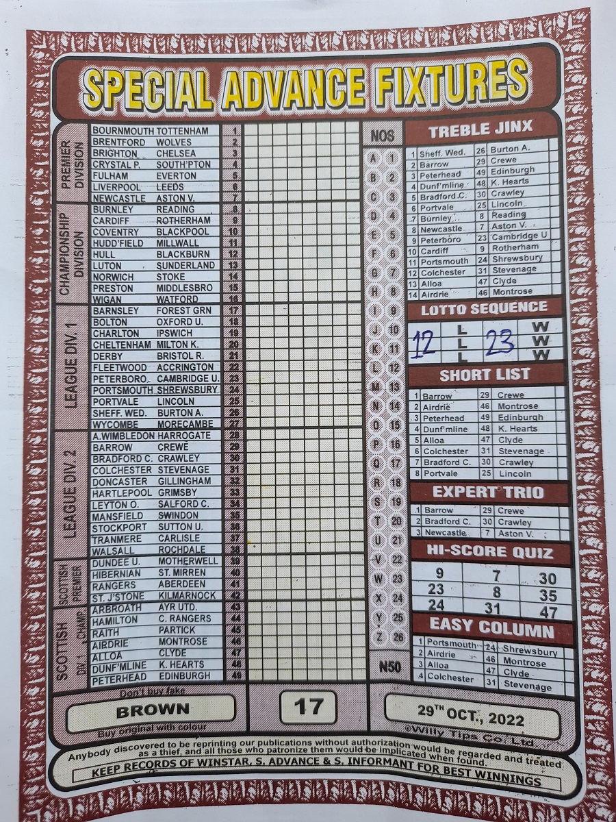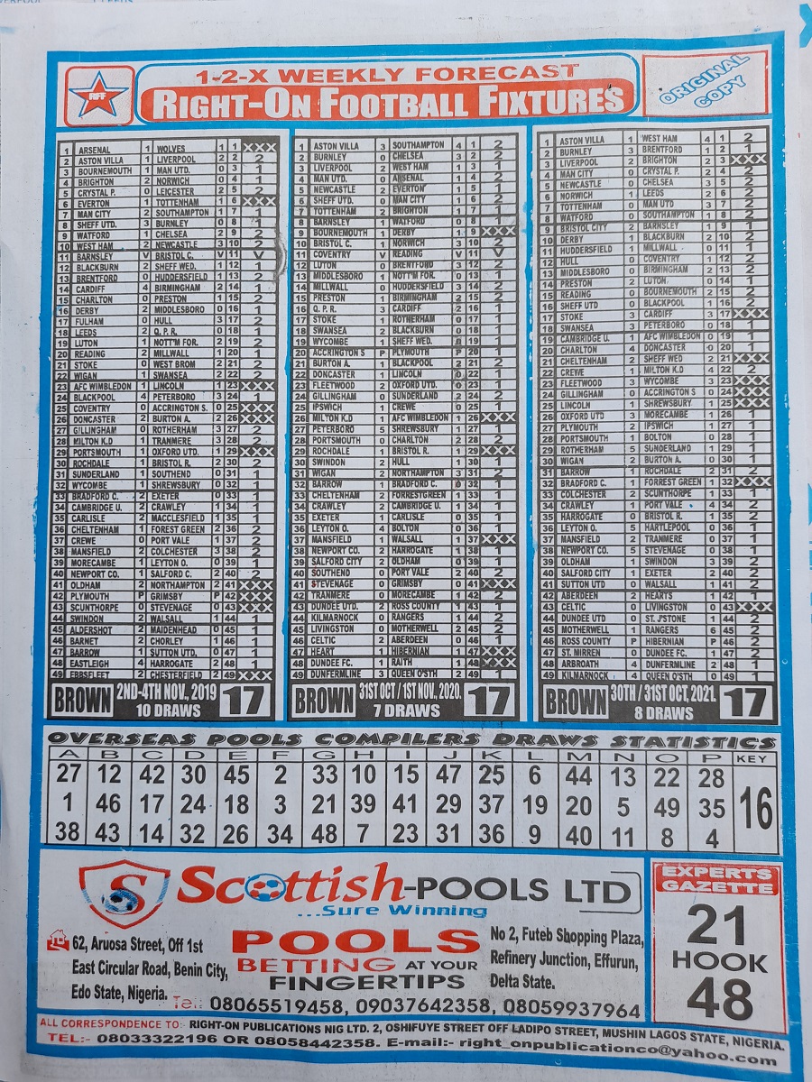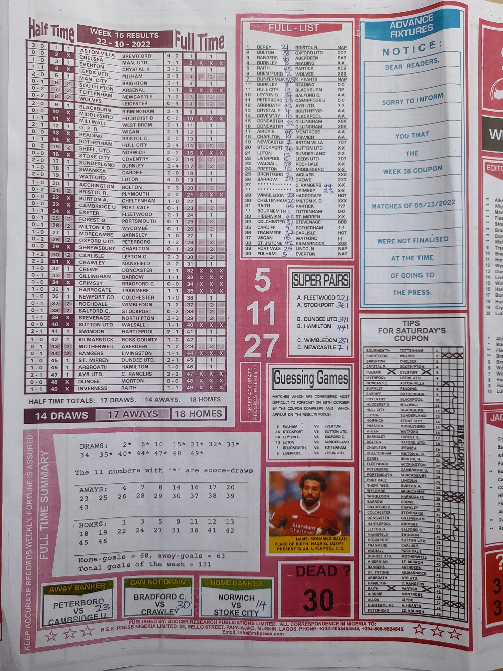Week 17 rsk papers 2022: Here we provide you with the best football papers such as Bob Morton, Capital International, and Soccer ‘X’ Research, we publish the world’s leading weekend football forecasting papers apart from RSK in the likes of WinStar, BigWin, Dream International Research, Weekly 1.X.2 Matrix, and pools fixtures like Special Advance Fixtures, Fight On Football Fixtures, Banky Fixtures and Fortune Advance Fixtures.