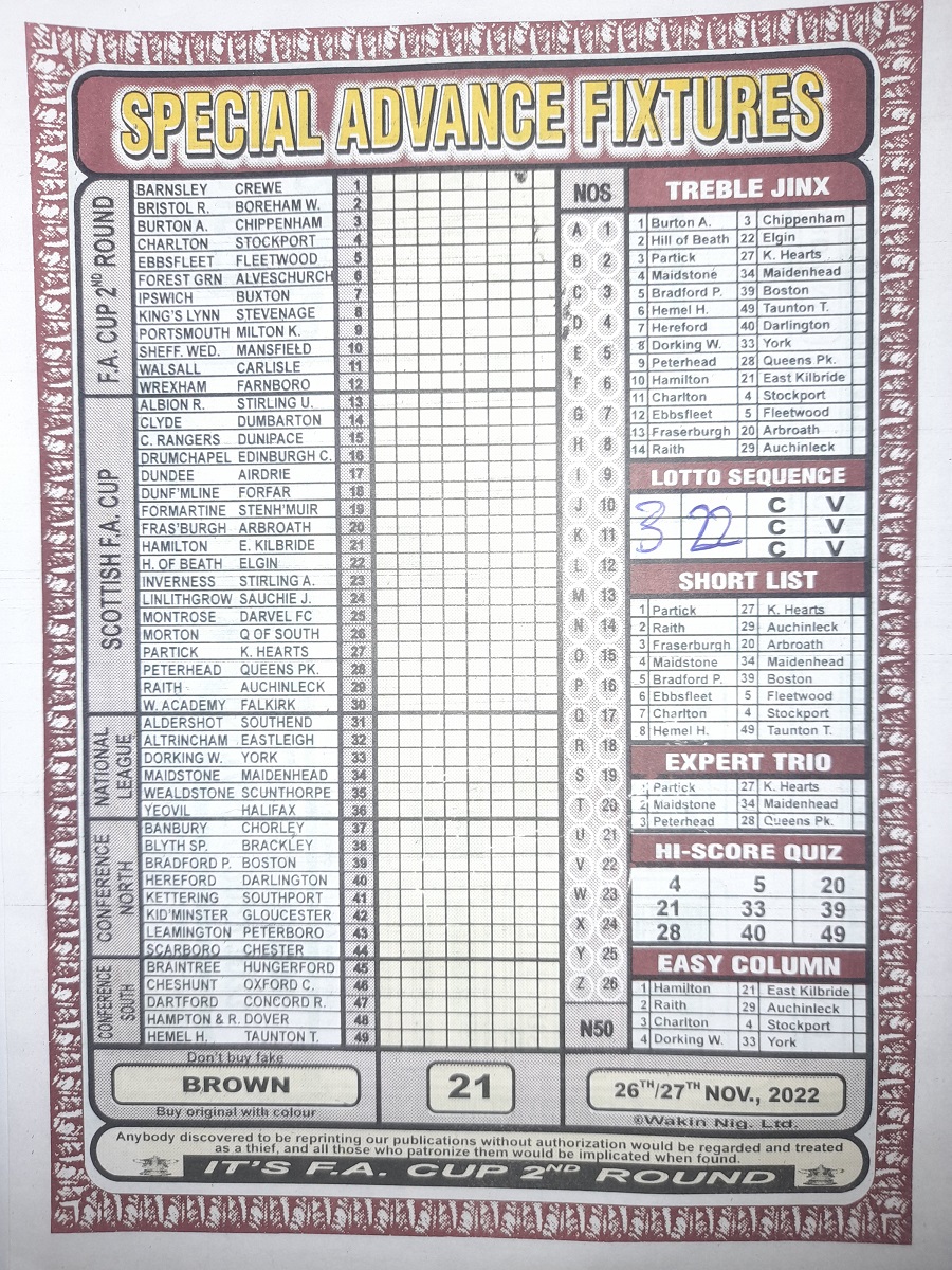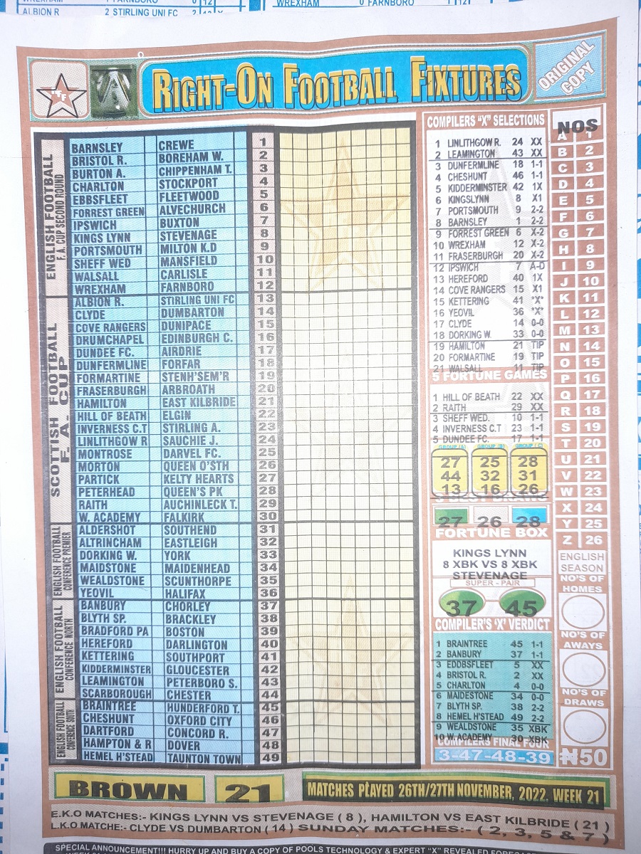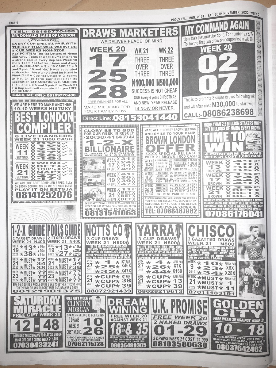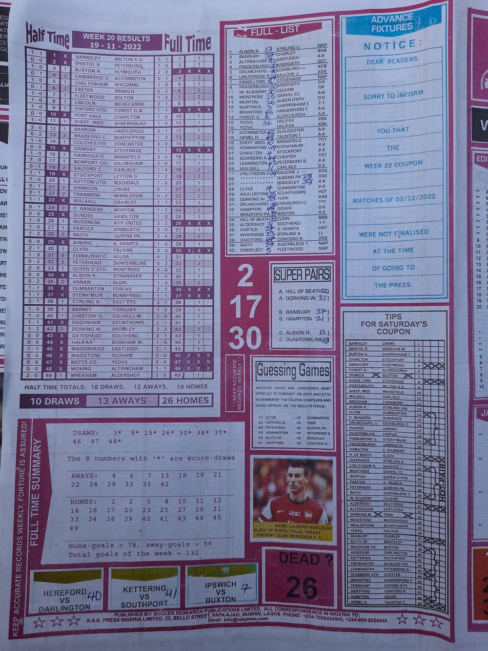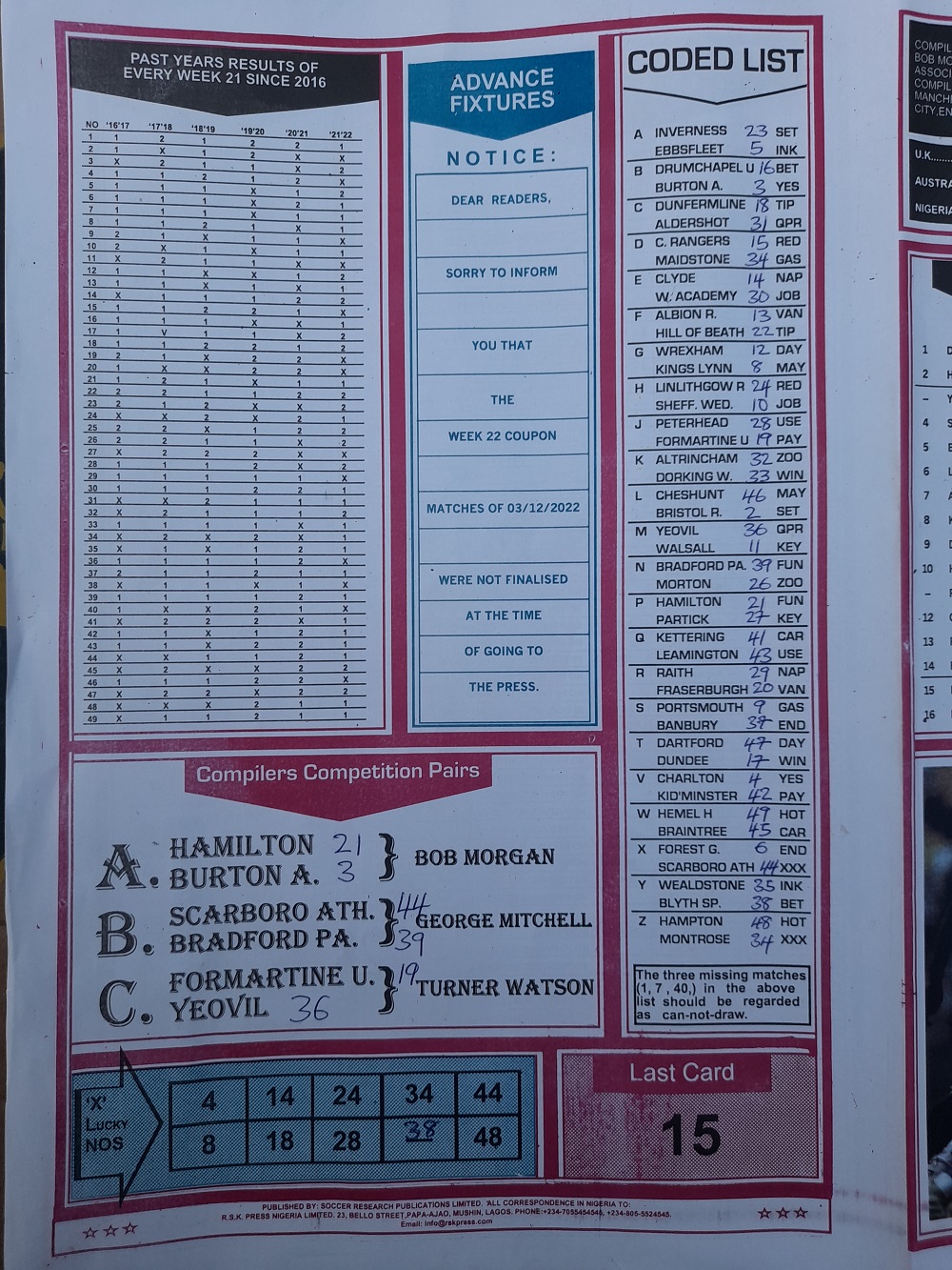 Week 21 rsk papers 2022: Here we provide you with the best football papers such as Bob Morton, Capital International, and Soccer ‘X’ Research, we publish the world’s leading weekend football forecasting papers apart from RSK in the likes of WinStar, BigWin, Dream International Research, Weekly 1.X.2 Matrix, and pools fixtures like Special Advance Fixtures, Fight On Football Fixtures, Banky Fixtures and Fortune Advance Fixtures.