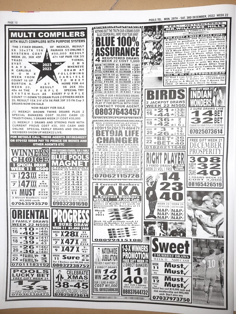Week 22 late news paper 2022: Welcome to this week late news pool papers. Here we provide you with papers such as: Bigwin Soccer, Pool Telegraph, Dream International Research, Dream Pool News, Sporting Informant and many others pools journal, also do remember that we furnish you with up-to-date football pools papers, rsk papers, late news papers, weekly telegraph, and now the pool telegraph pool late news which is to easy your forecasting needs.
