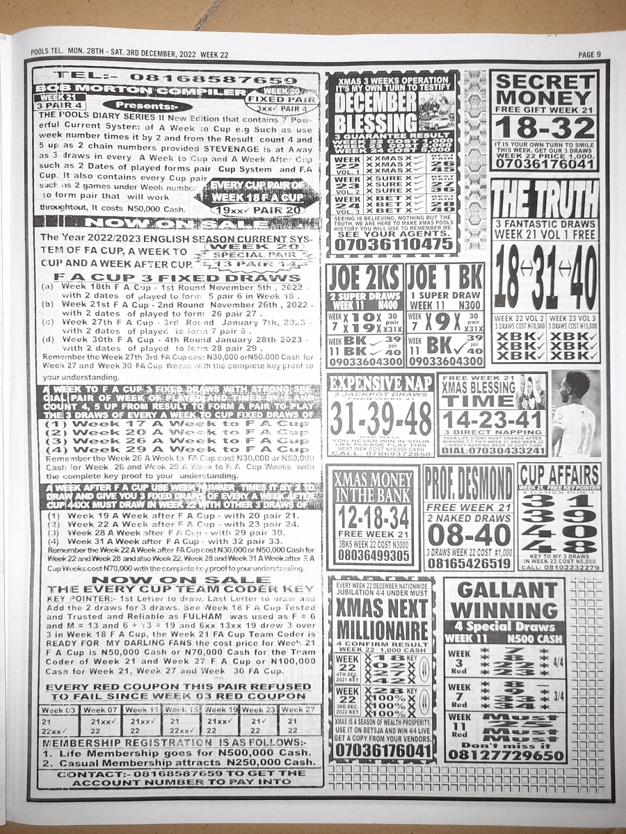 Week 22 pool telegraph 2022, Week 22 bigwin soccer 2022, Week 22 soccer standard 2022, Week 22 pool telegraph late news 2022, Week 22 bigwin soccer pool late news 2022