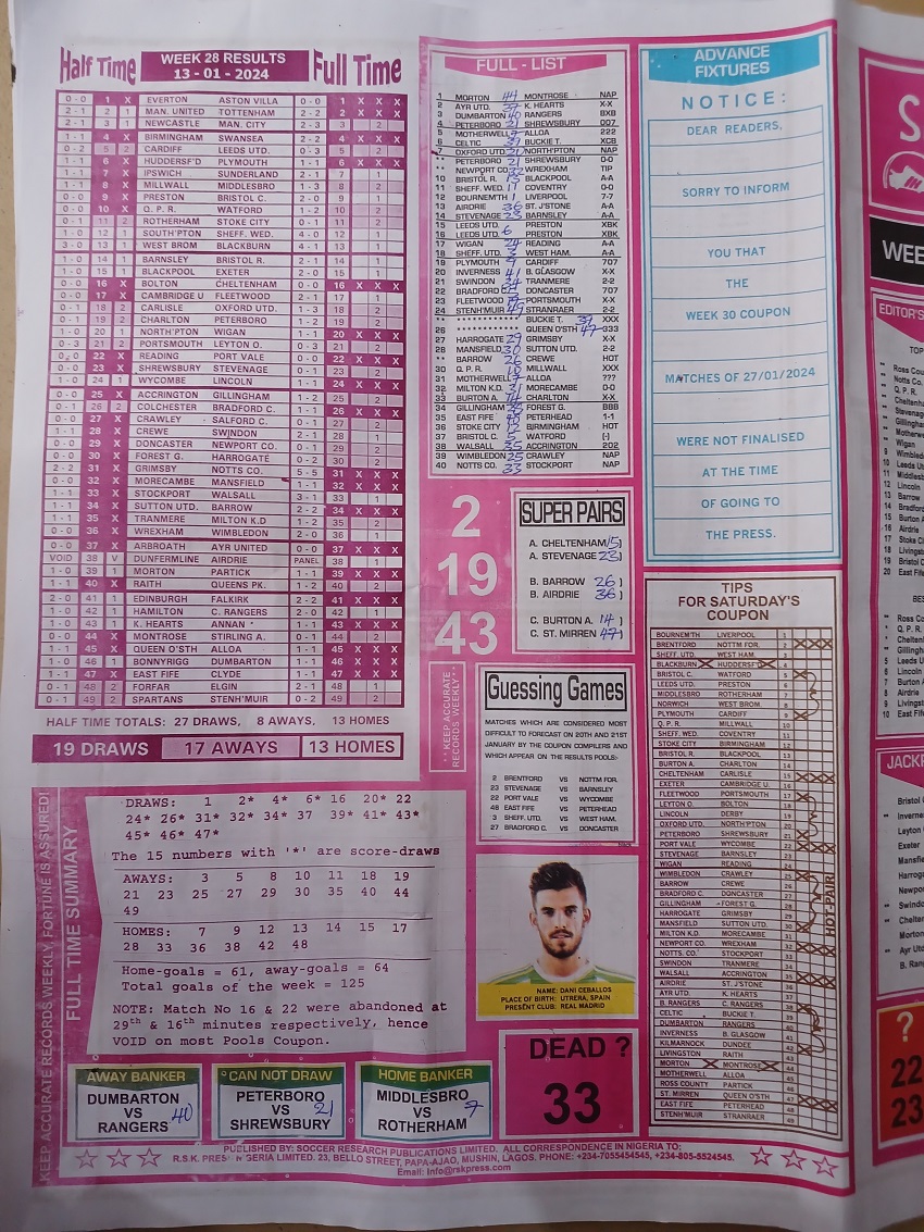 Week 29 rsk papers 2024: Here we provide you with the best football papers such as Bob Morton, Fortune ‘X’ Matrix, Capital International, Dream International Research, and Soccer ‘X’ Research, we publish the world’s leading weekend football forecasting papers apart from RSK in the likes of WinStar, BigWin, Dream International Research, Pools Telegraph, and pools fixtures like Dream Int’l Fixtures, Special Advance Fixtures, and Right On Football Fixtures.