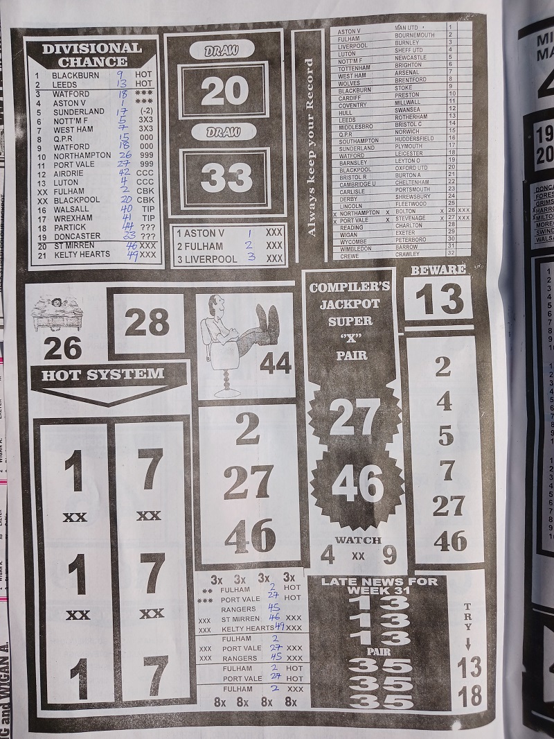 Week 32 late news papers 2024: Here we provide you with the best football pools papers such as Dream International Research (comes with Late News), Fortune ‘X’ Matrix, and Dream International Fixtures, we publish the world’s leading weekend football pools forecasting papers poised to boost your winning chances. Apart from CBK papers we also publish late news papers like Dream International Research and Bigwin Soccer.