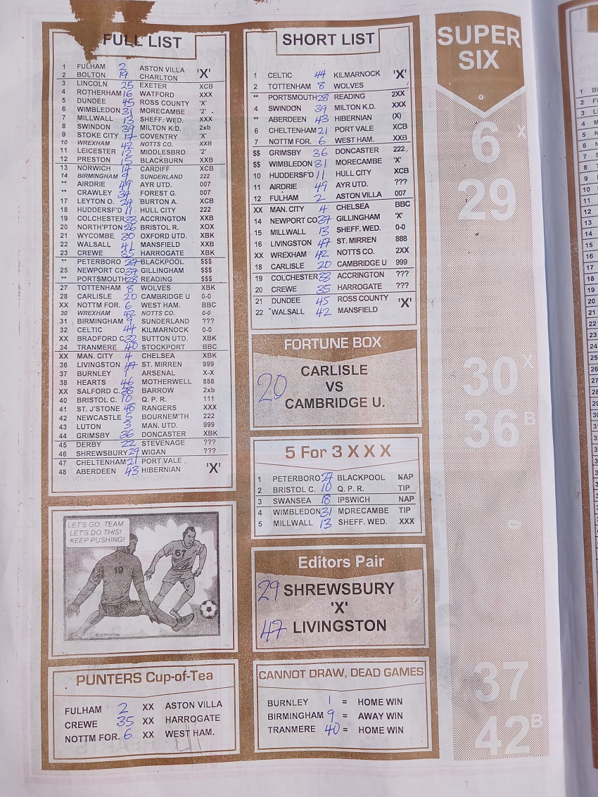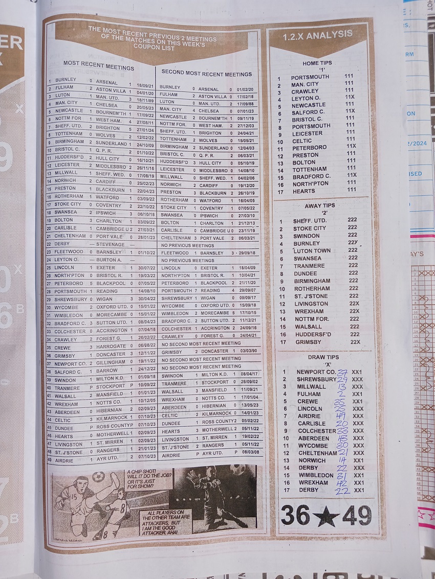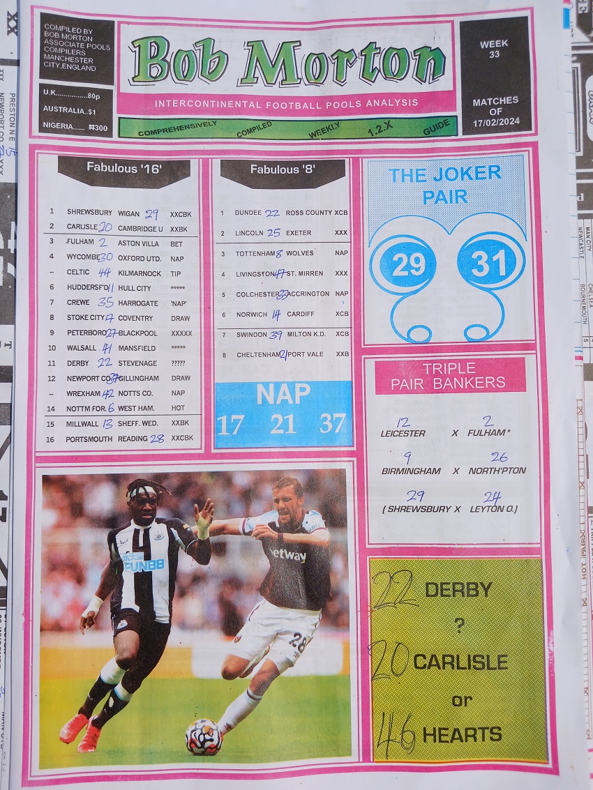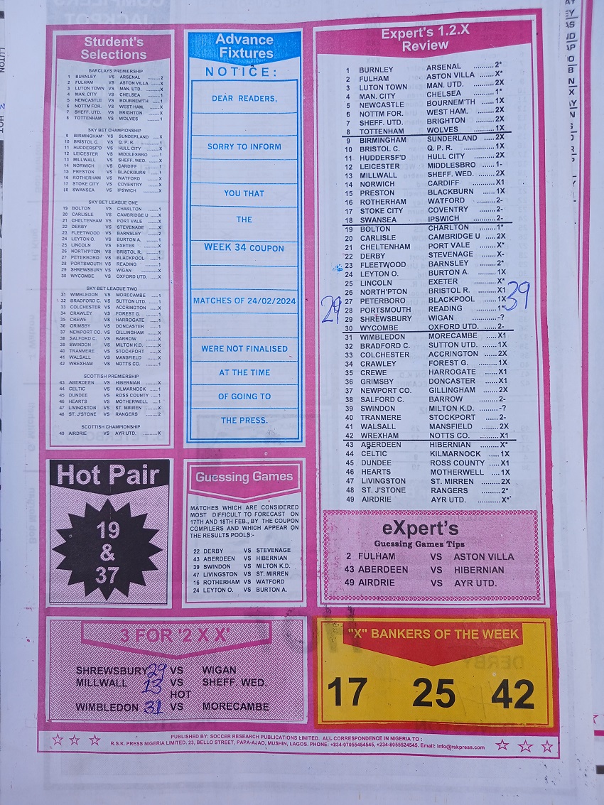 Week 33 rsk papers 2024: Here we provide you with the best football papers such as Bob Morton, Fortune ‘X’ Matrix, Capital International, Dream International Research, and Soccer ‘X’ Research, we publish the world’s leading weekend football forecasting papers apart from RSK in the likes of WinStar, BigWin, Dream International Research, Pools Telegraph, and pools fixtures like Dream Int’l Fixtures, Special Advance Fixtures, and Right On Football Fixtures.