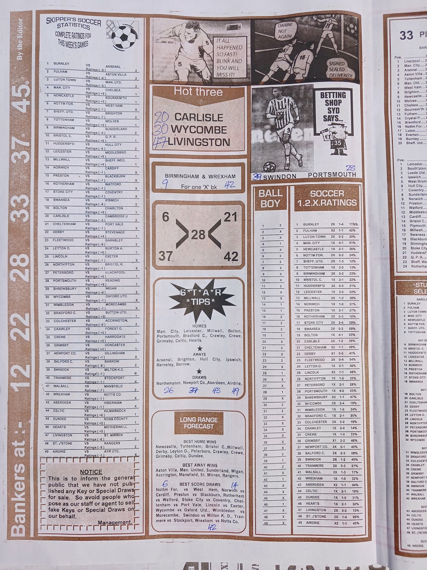Buy The Best Football Pools Papers